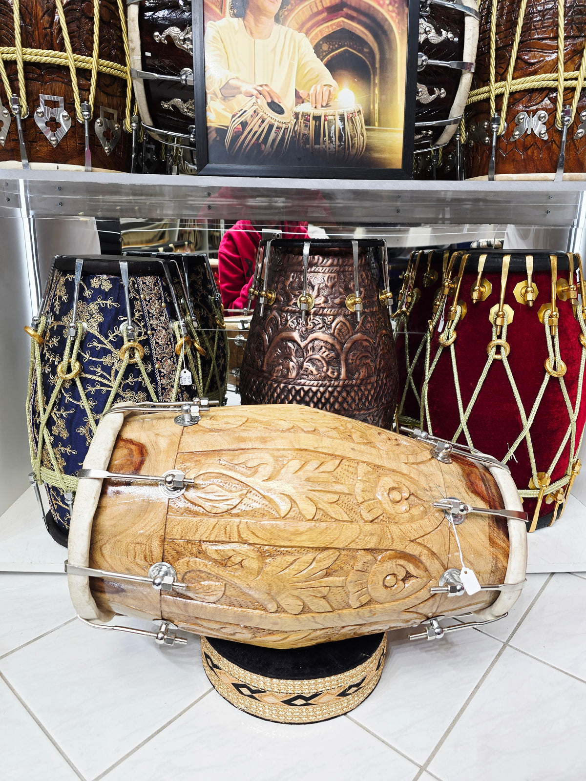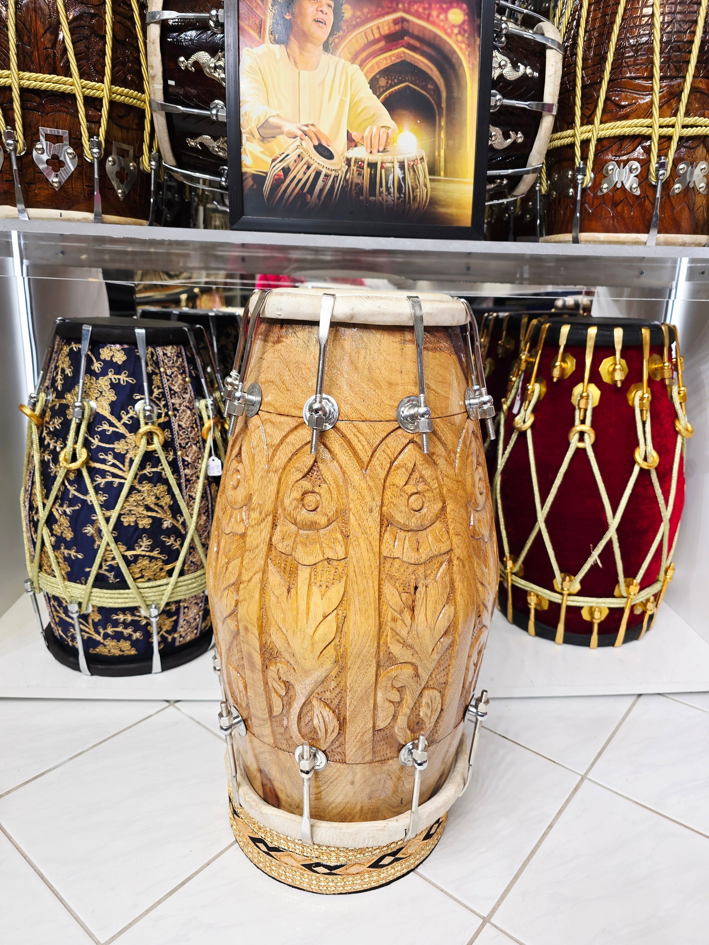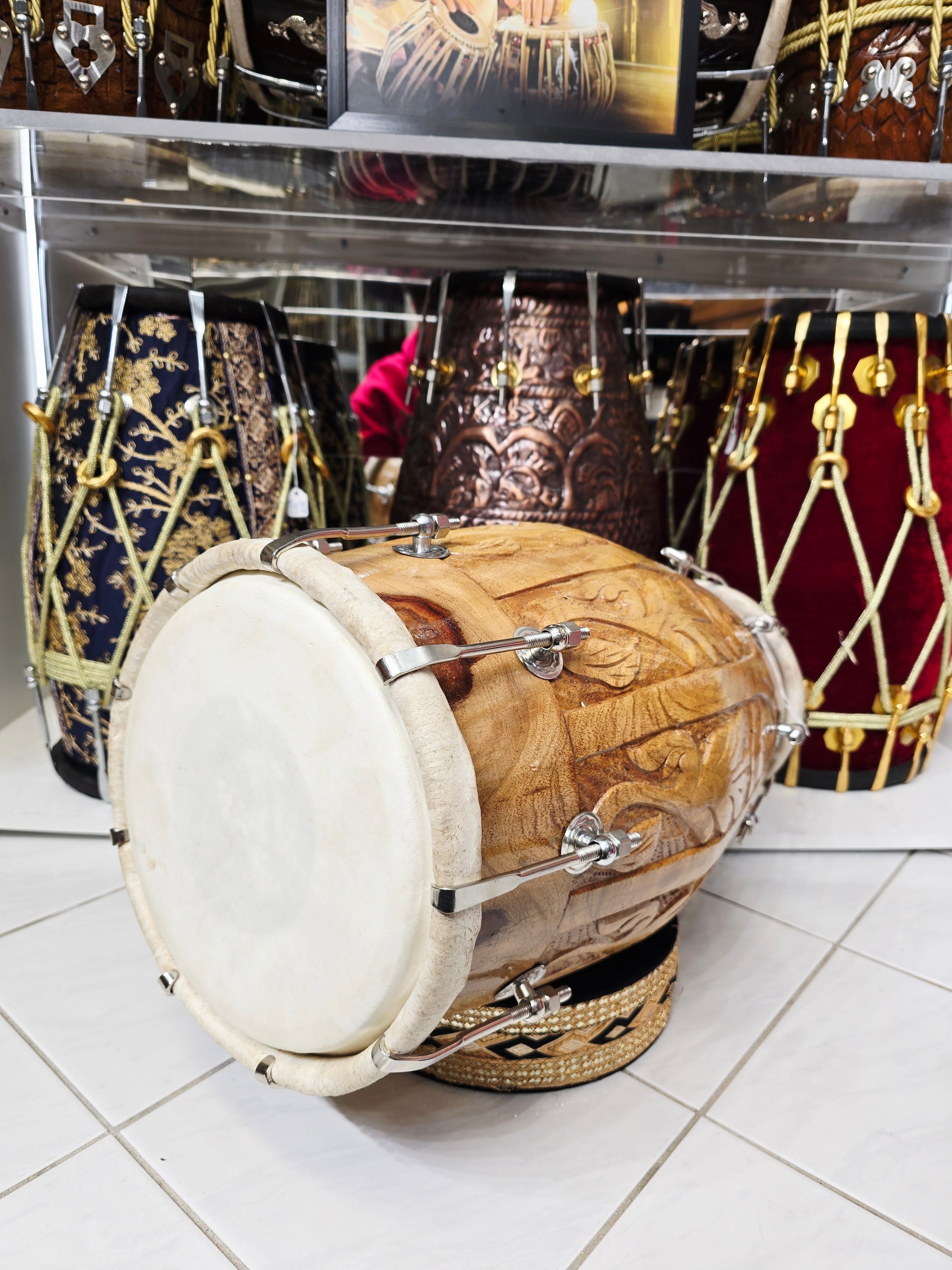 Our world renowned collection of Concert Quality Dholaks, featuring the most unique Dholak Designs and concert quality sound. The most talented Dholak Craftsmen in the world are responsible for the concert quality sound that puts the icing on the magnificent designs and themes featured on our Premium Dholaks aesthetics.