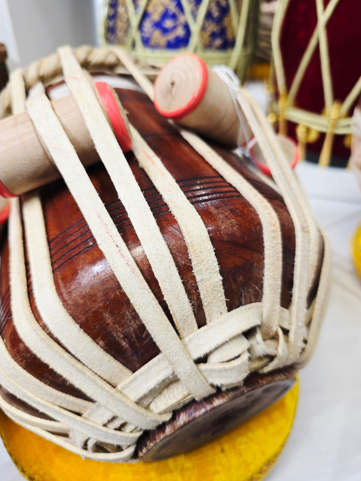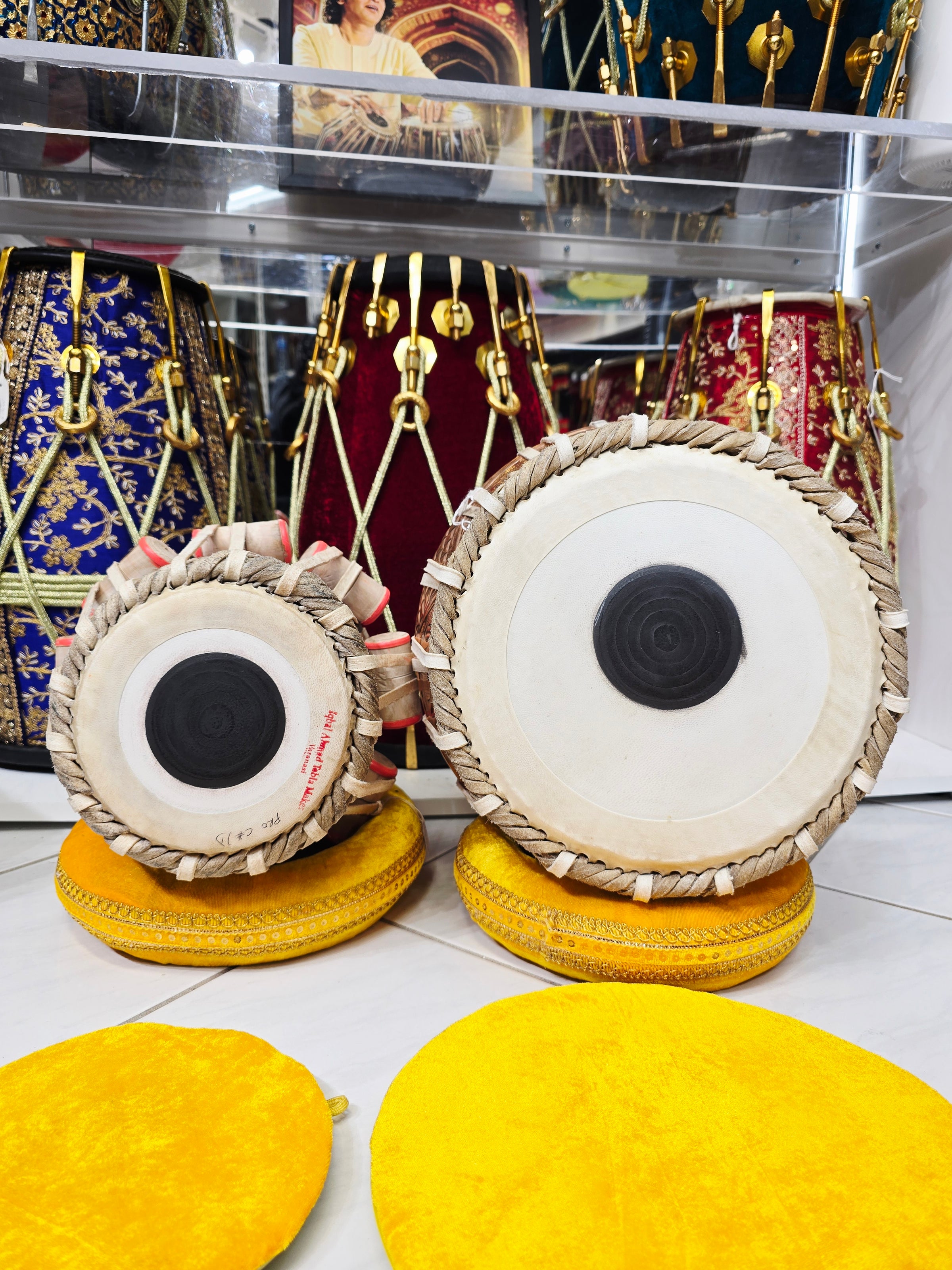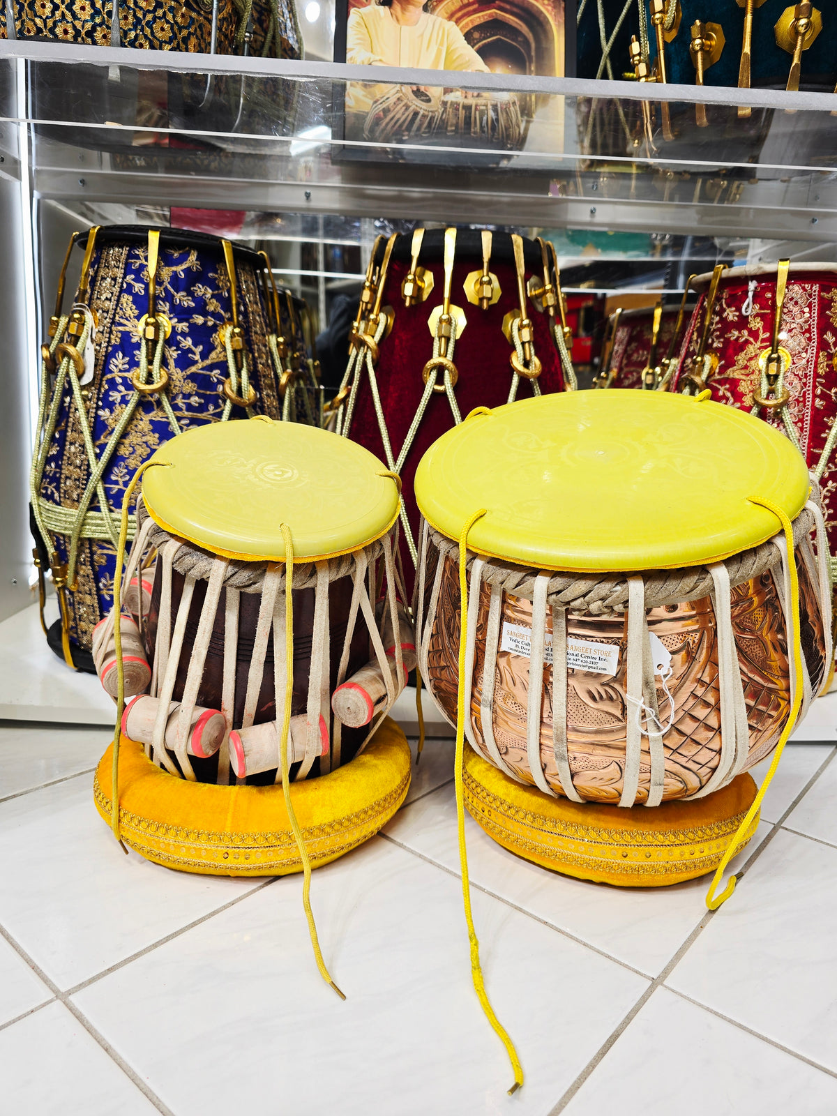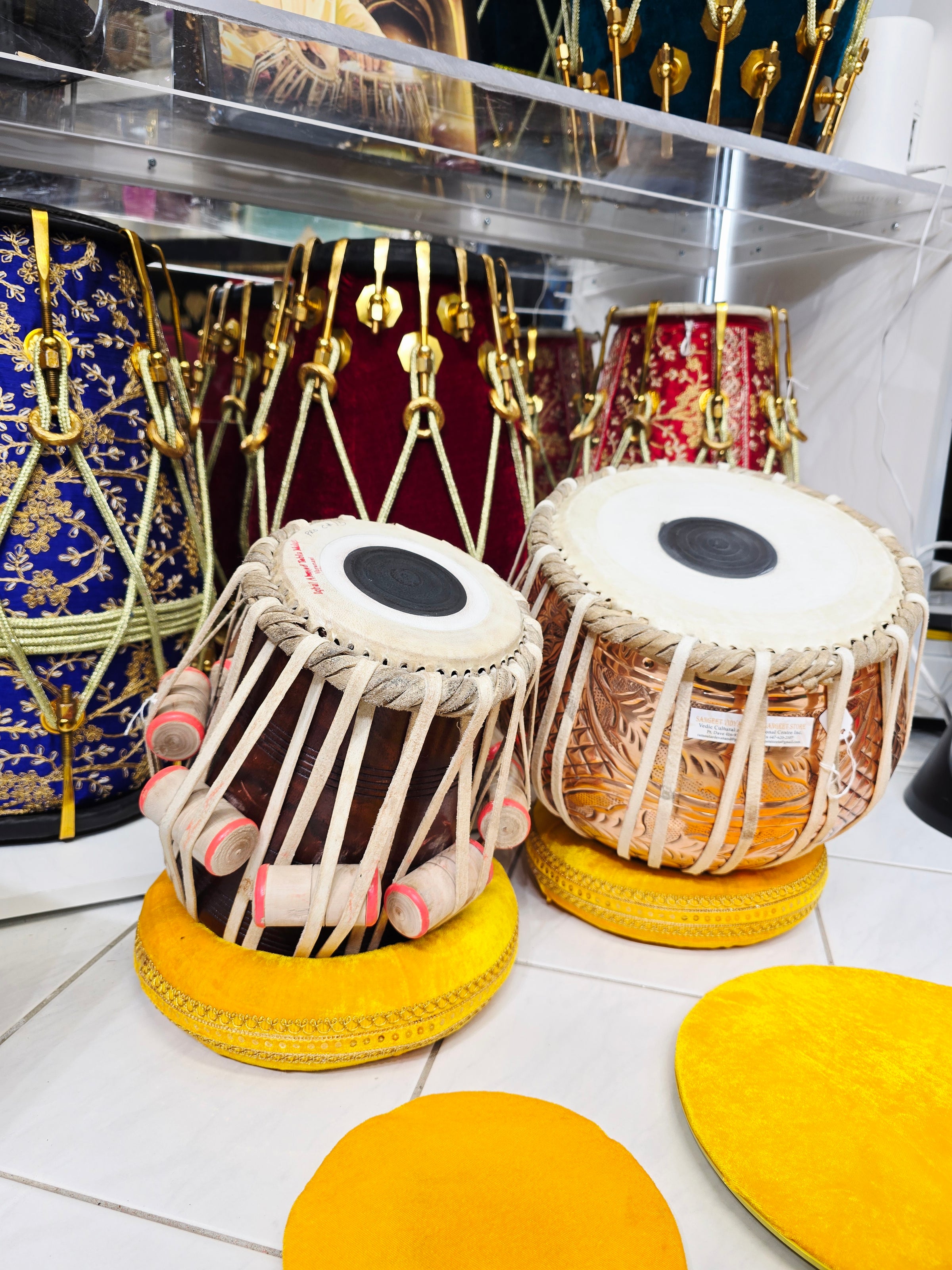 The Economy Tabla Sets Collection is designed to offer a high-quality tabla experience at an affordable price point. Crafted from a slightly lower grade of materials as our premium models, these tabla sets are produced in one of the factories that we partner with in India by talented, lesser-known tabla makers. The collection is perfect for students, tabla enthusiasts, or even advanced players willing to compromise slightly on perfection for greater affordability. While these sets may not offer the same consistency or flawless craftsmanship as our higher-end models, their solid materials and respectable craftsmanship place them in the C+ to B grade range of their respective categories. Each set is transparently displayed with its unique features, providing a great entry-level option for tabla players of all levels.