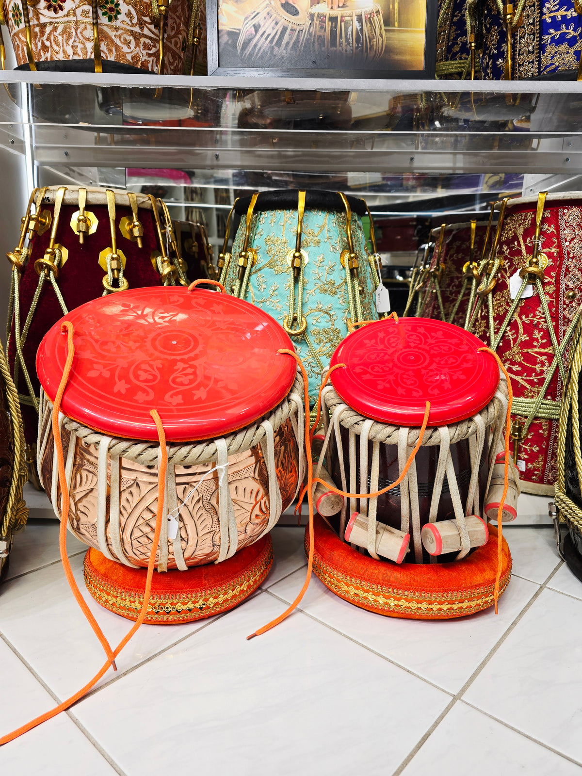 Prana Sur | Economy Professional Tabla Set: 9.25" Copper Bayan + 6⅛" Red Sheesham Dayan *Very Minor Cosmetic Blemishes