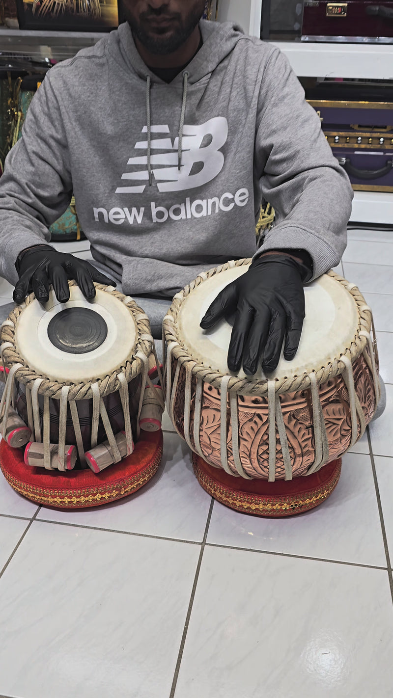 The Economy Tabla Sets Collection is designed to offer a high-quality tabla experience at an affordable price point. Crafted from a slightly lower grade of materials as our premium models, these tabla sets are produced in one of the factories that we partner with in India by talented, lesser-known tabla makers. The collection is perfect for students, tabla enthusiasts, or even advanced players willing to compromise slightly on perfection for greater affordability. While these sets may not offer the same consistency or flawless craftsmanship as our higher-end models, their solid materials and respectable craftsmanship place them in the C+ to B grade range of their respective categories. Each set is transparently displayed with its unique features, providing a great entry-level option for tabla players of all levels.