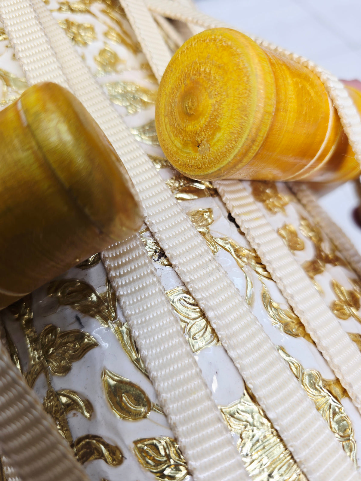 SwarnaIvory Signature Tabla Set White & Gold Designer Wrapped | 5.5" Red Sheesham C#/D Dayan + 9.25" 5.7kg Brass Bayan | Nylon Strapped