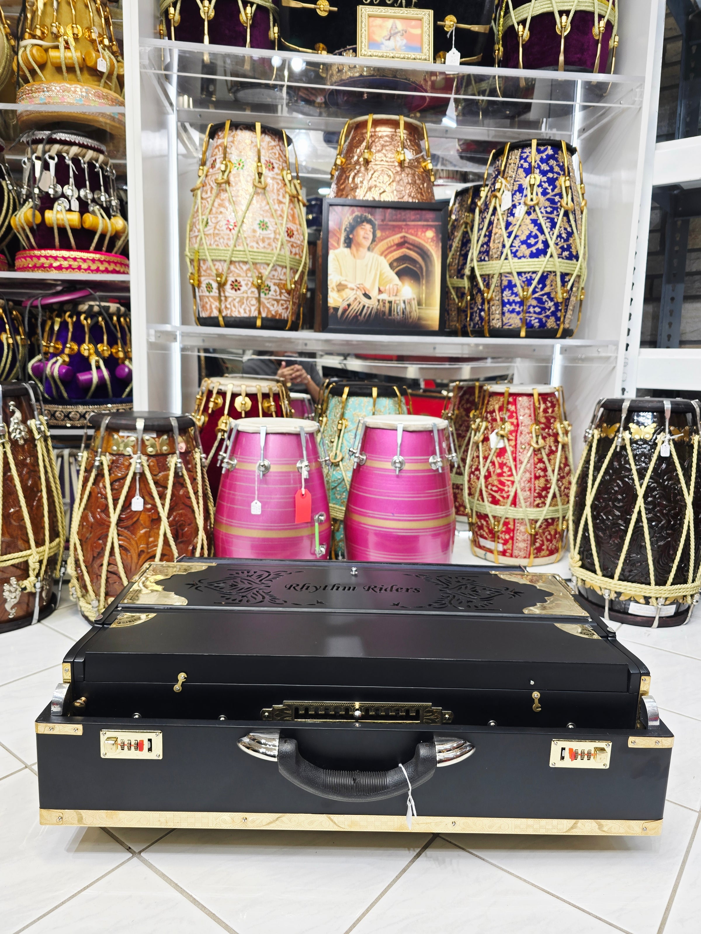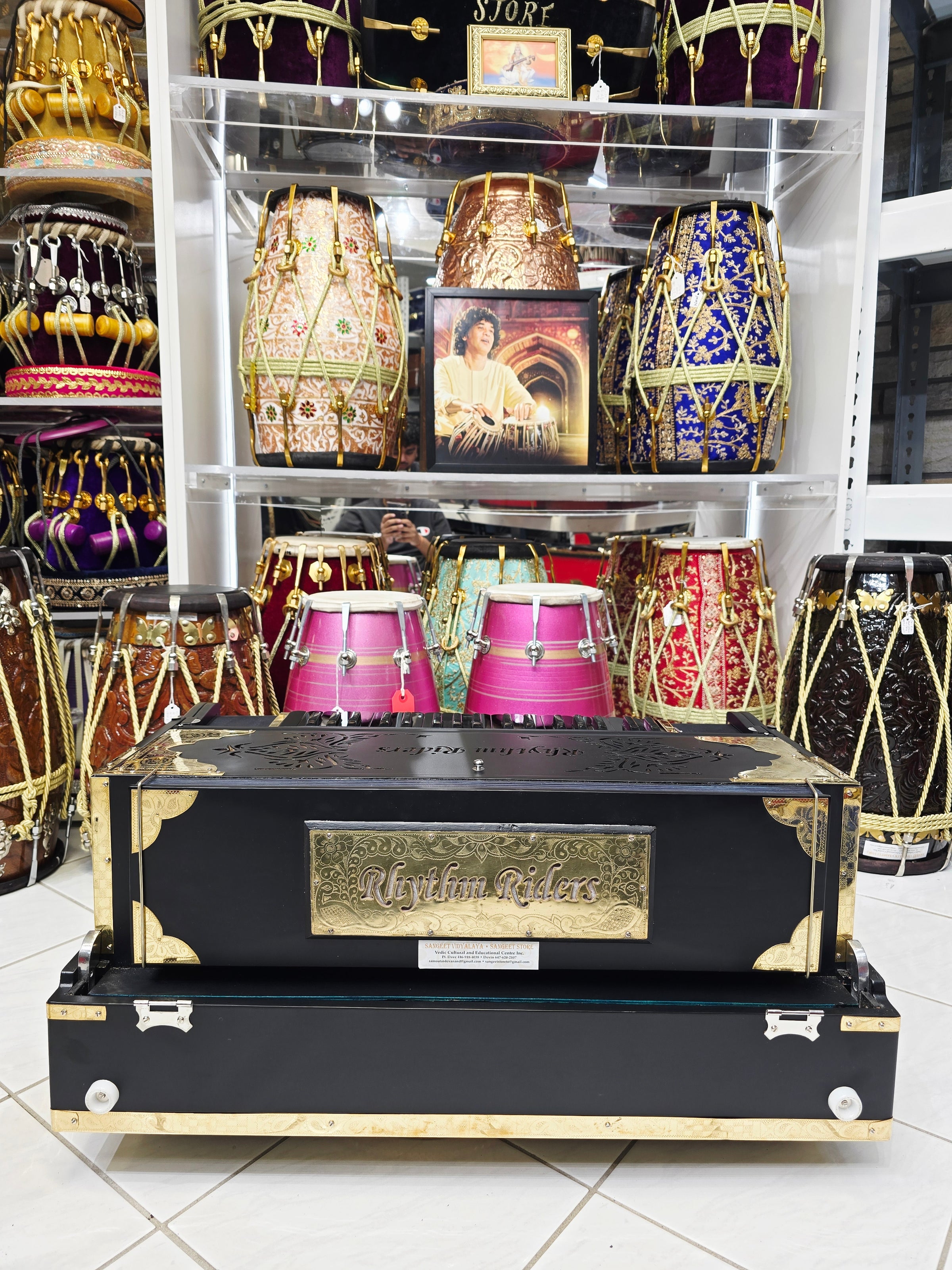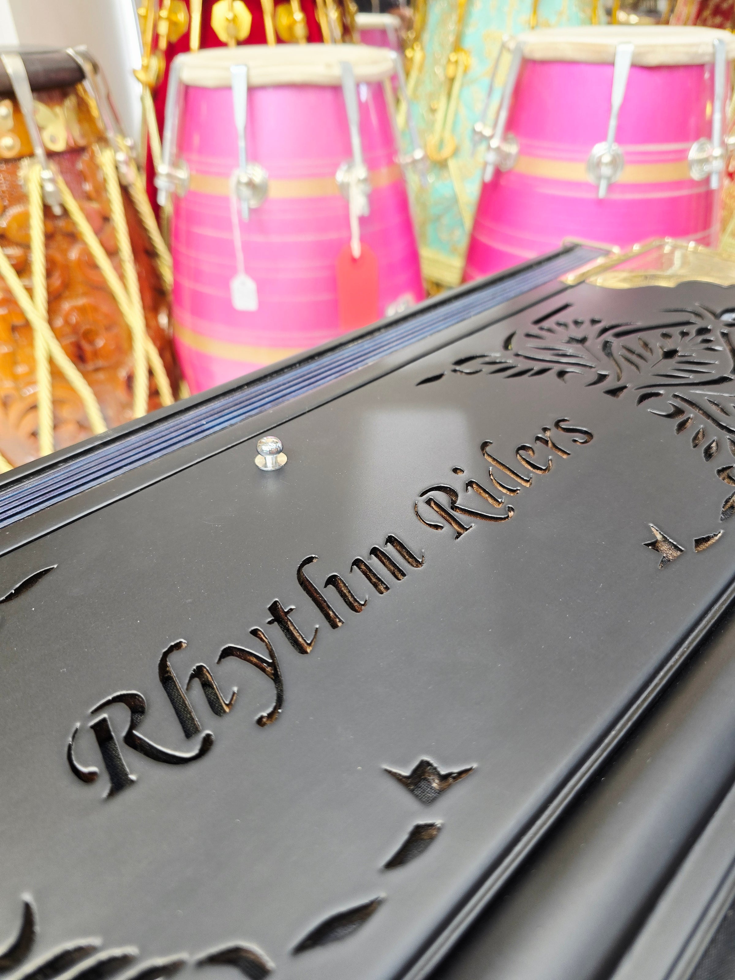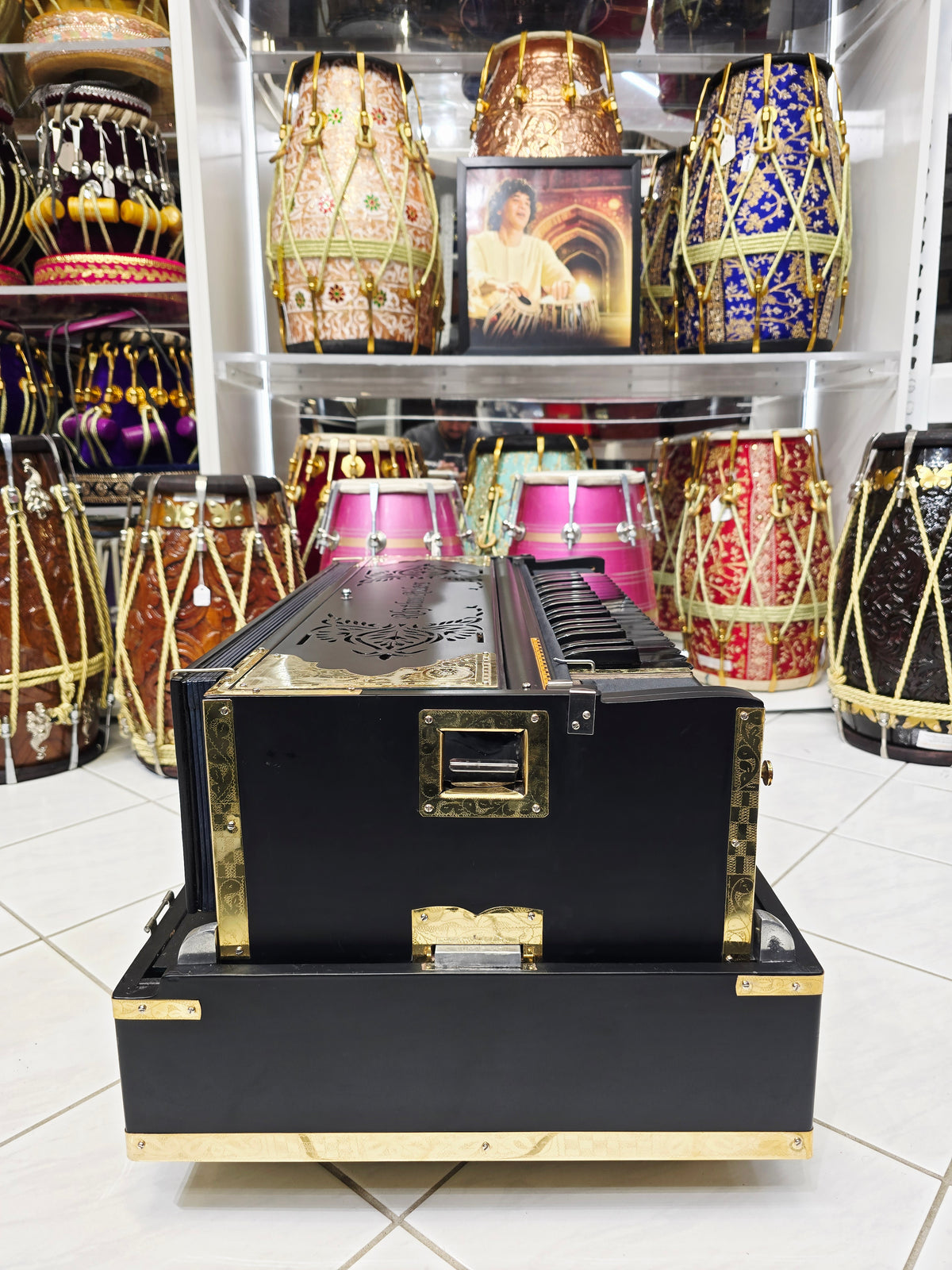 Bold, elegant, and deeply intentional — Reshma Raag is a one-of-a-kind matte black harmonium, handcrafted with subtle power and modern artistry. Featuring a 3-reed Bass-Male-Female configuration and a 9-scale changer, it offers professional tonal range wrapped in minimalist style.