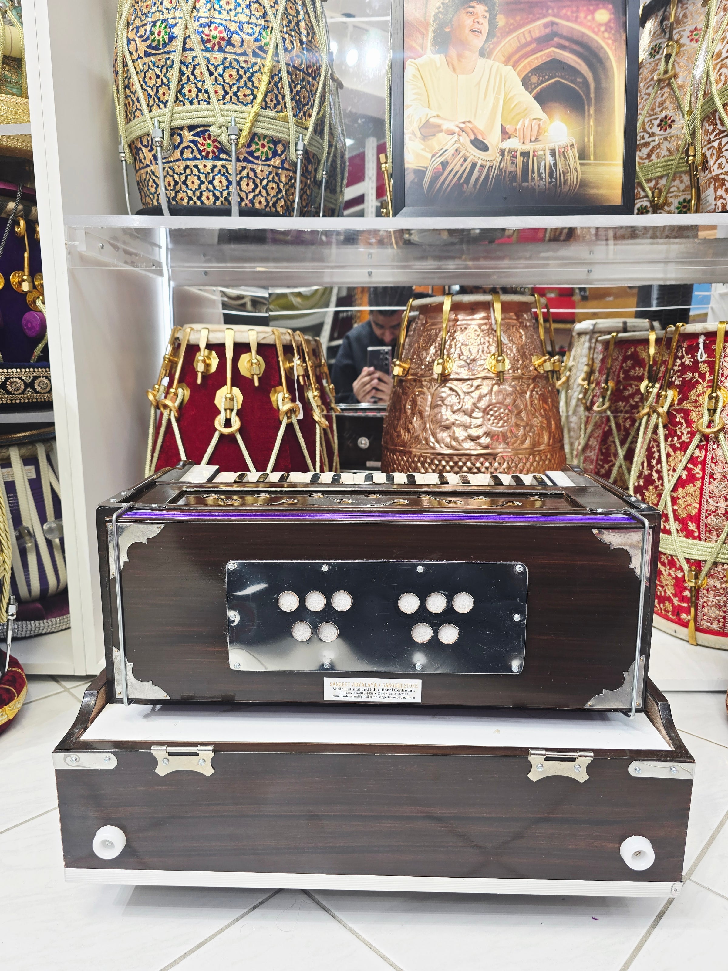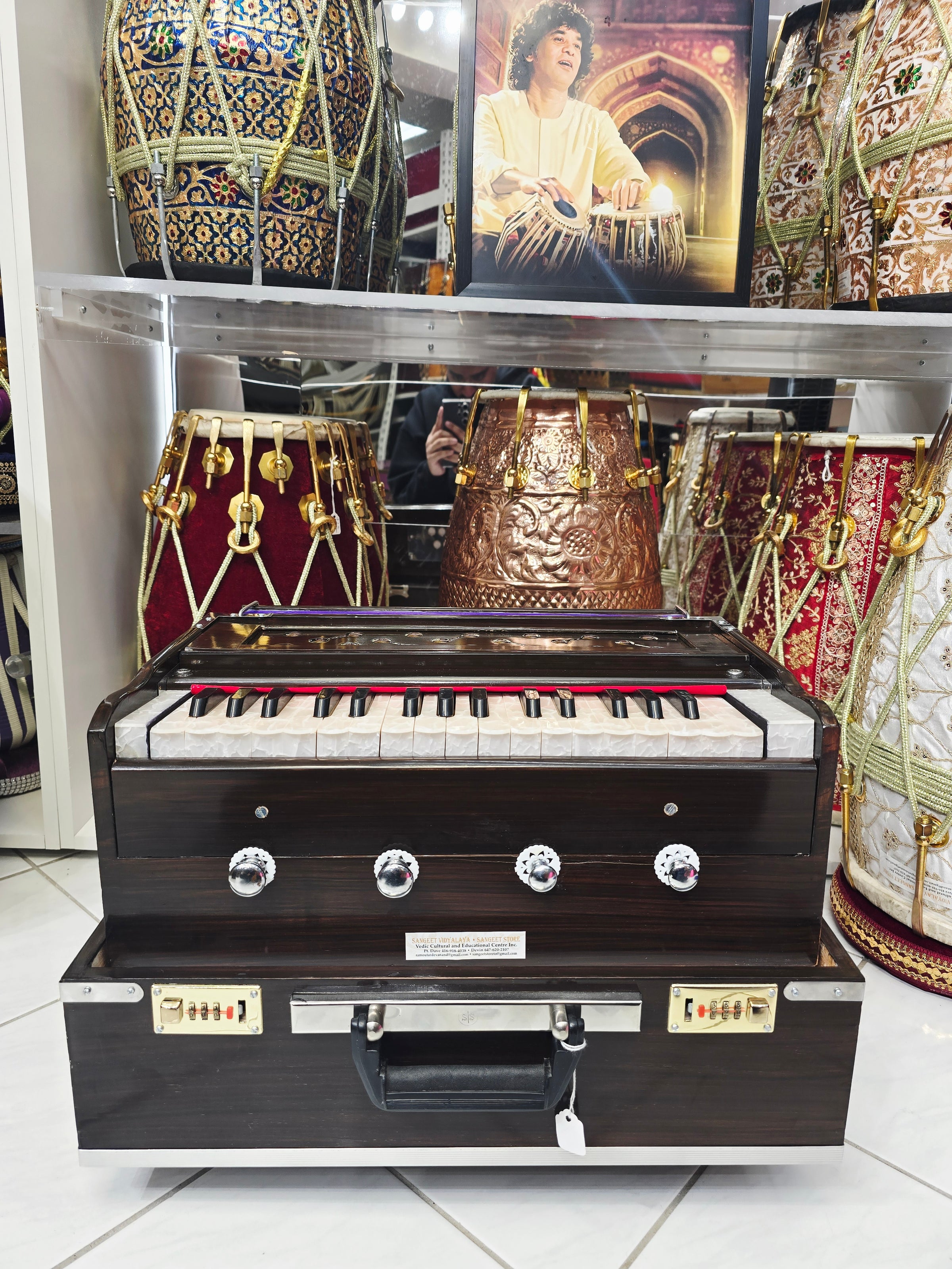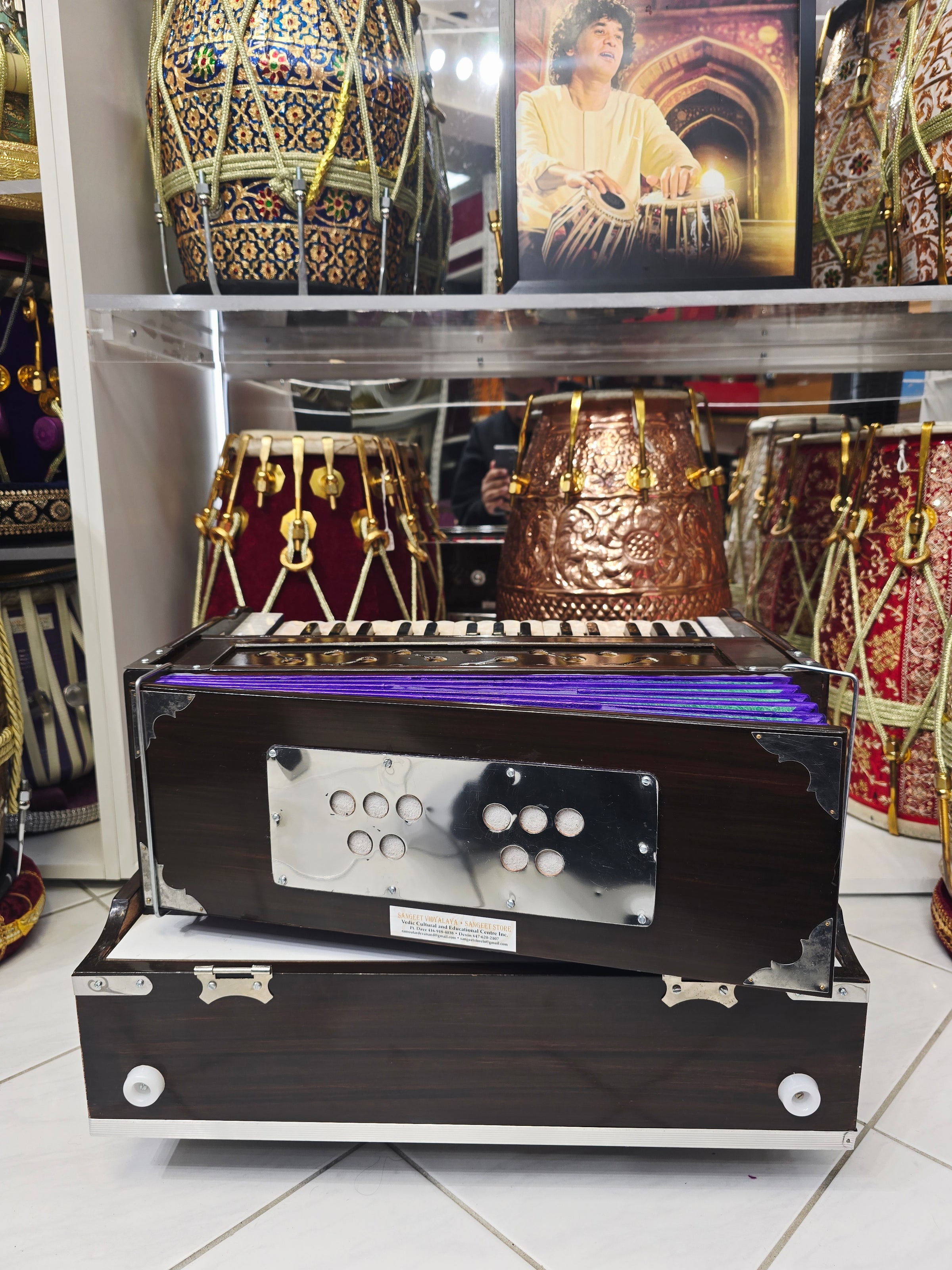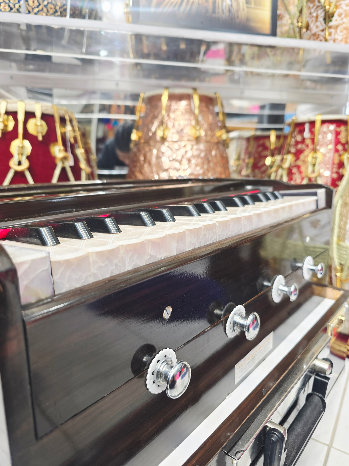 The finest crafted harmoniums available in the world. We have worked tirelessly to narrow down the most skilled, creative, responsible, and trustworthy makers to source our Premium Harmoniums. Each Harmonium is quality checked, tuned, maintained and tested to guarantee optimal performance, response & durability. We are proud to present to you, Sangeet Store's collection of World Class Premium Harmoniums.