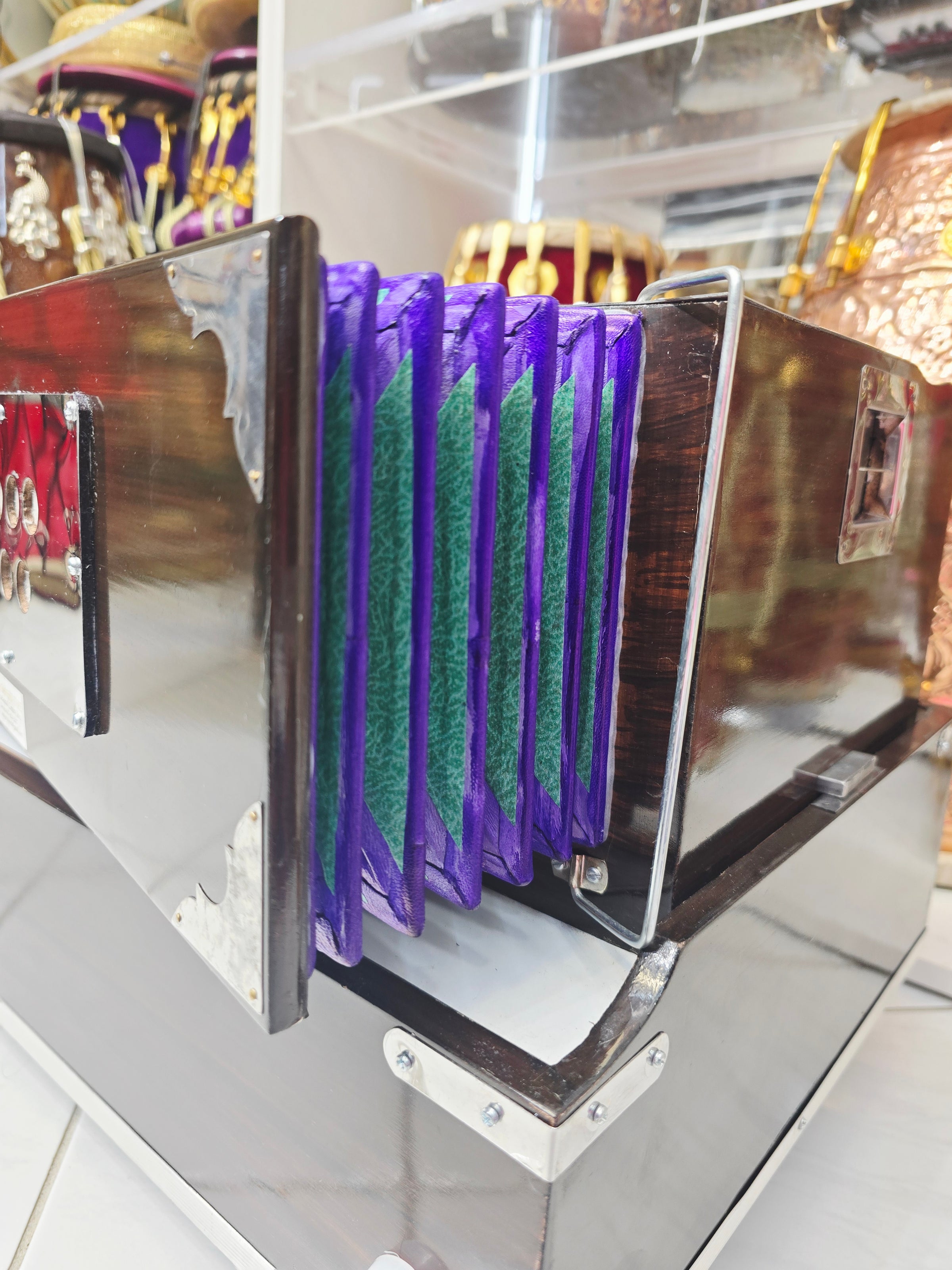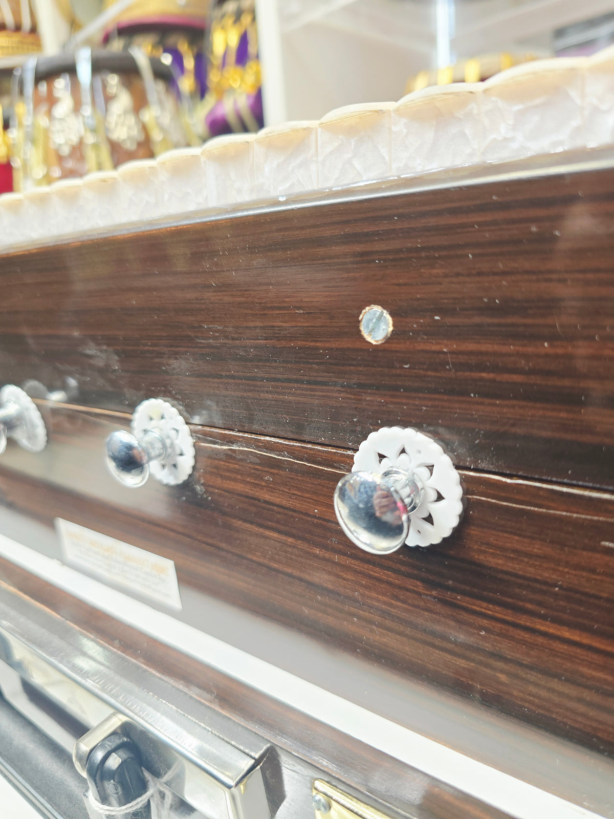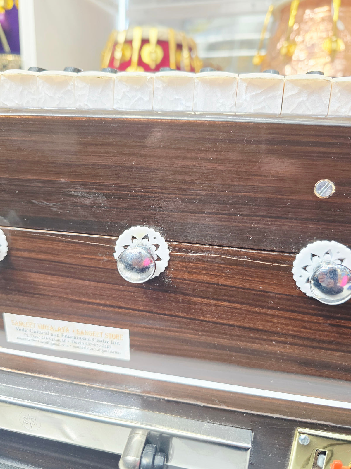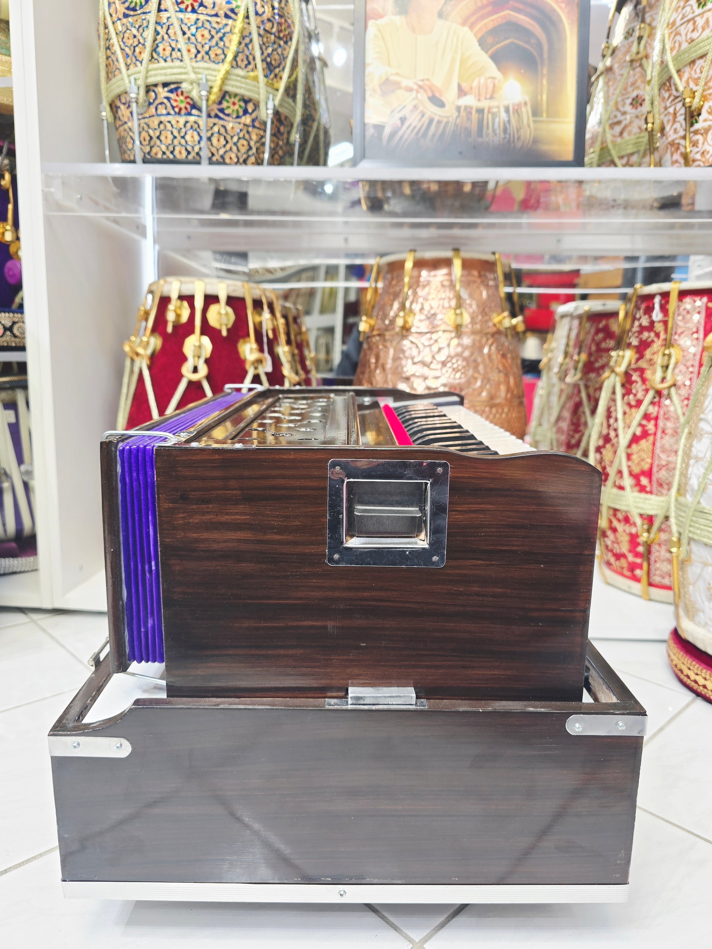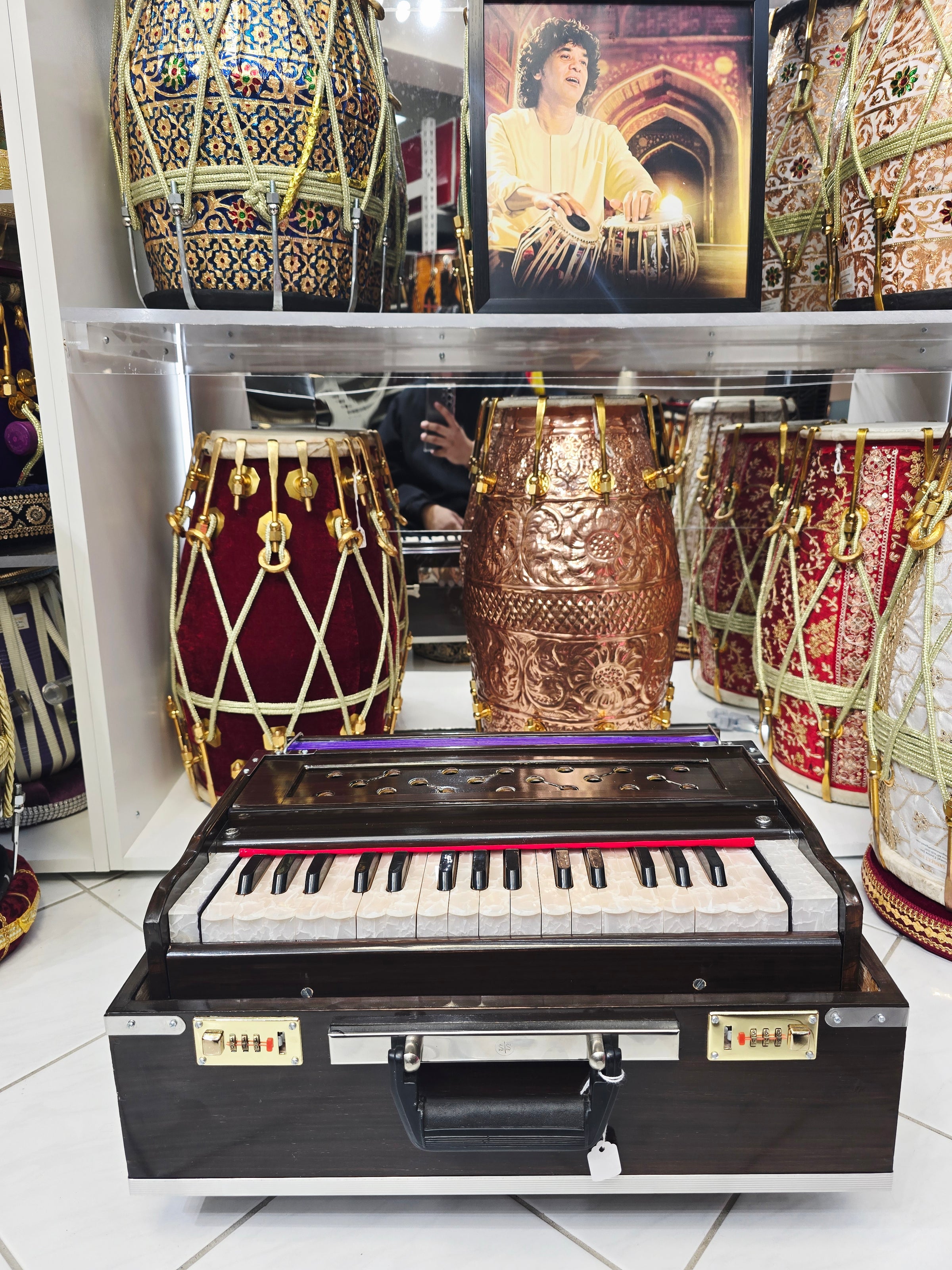 The finest crafted harmoniums available in the world. We have worked tirelessly to narrow down the most skilled, creative, responsible, and trustworthy makers to source our Premium Harmoniums. Each Harmonium is quality checked, tuned, maintained and tested to guarantee optimal performance, response & durability. We are proud to present to you, Sangeet Store's collection of World Class Premium Harmoniums.