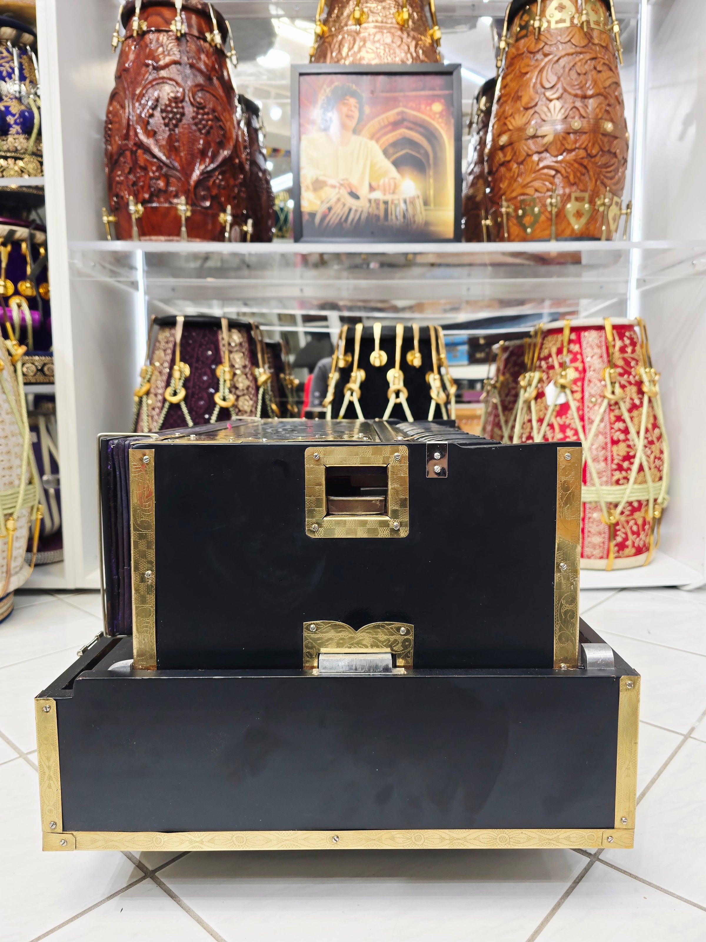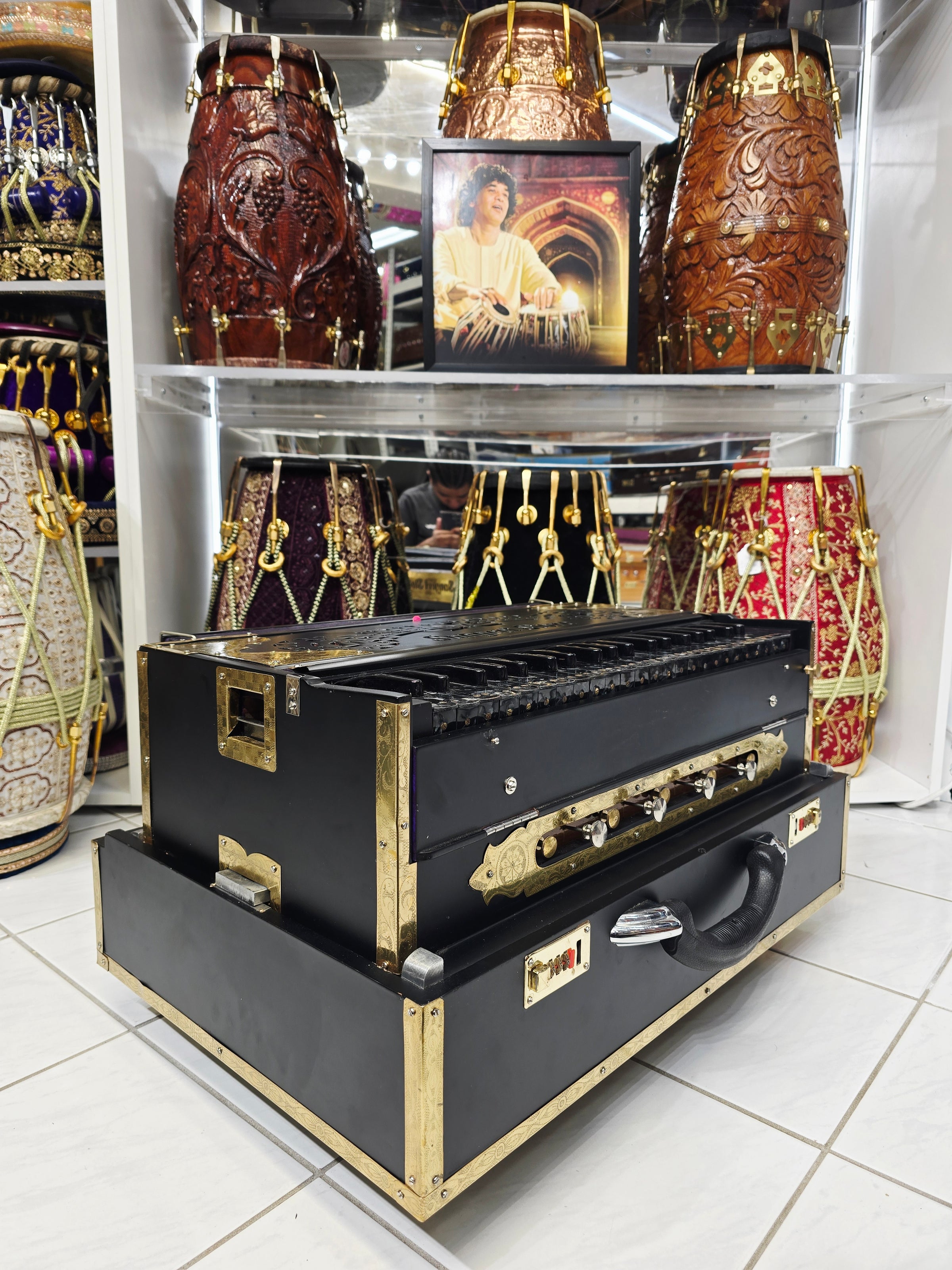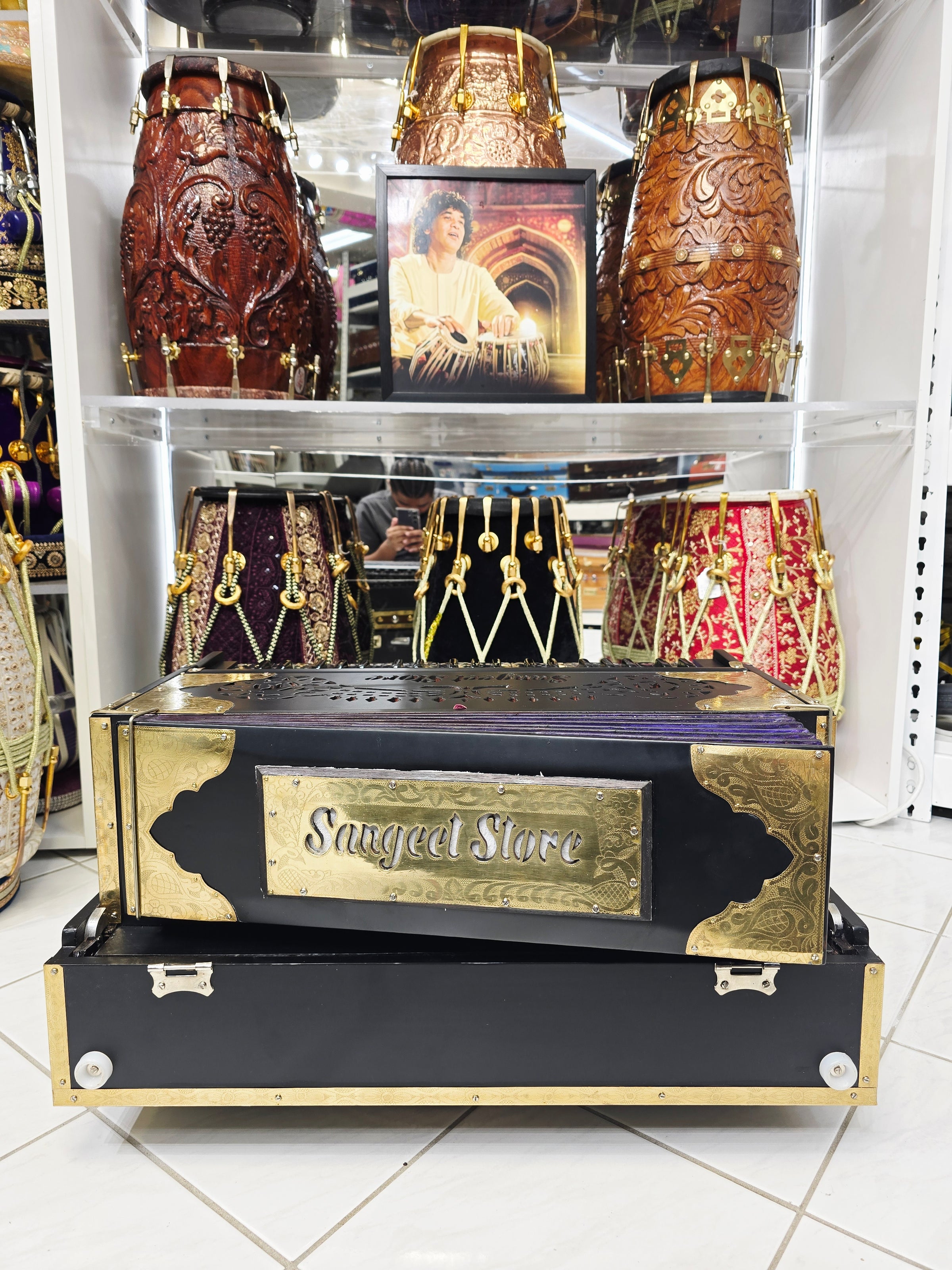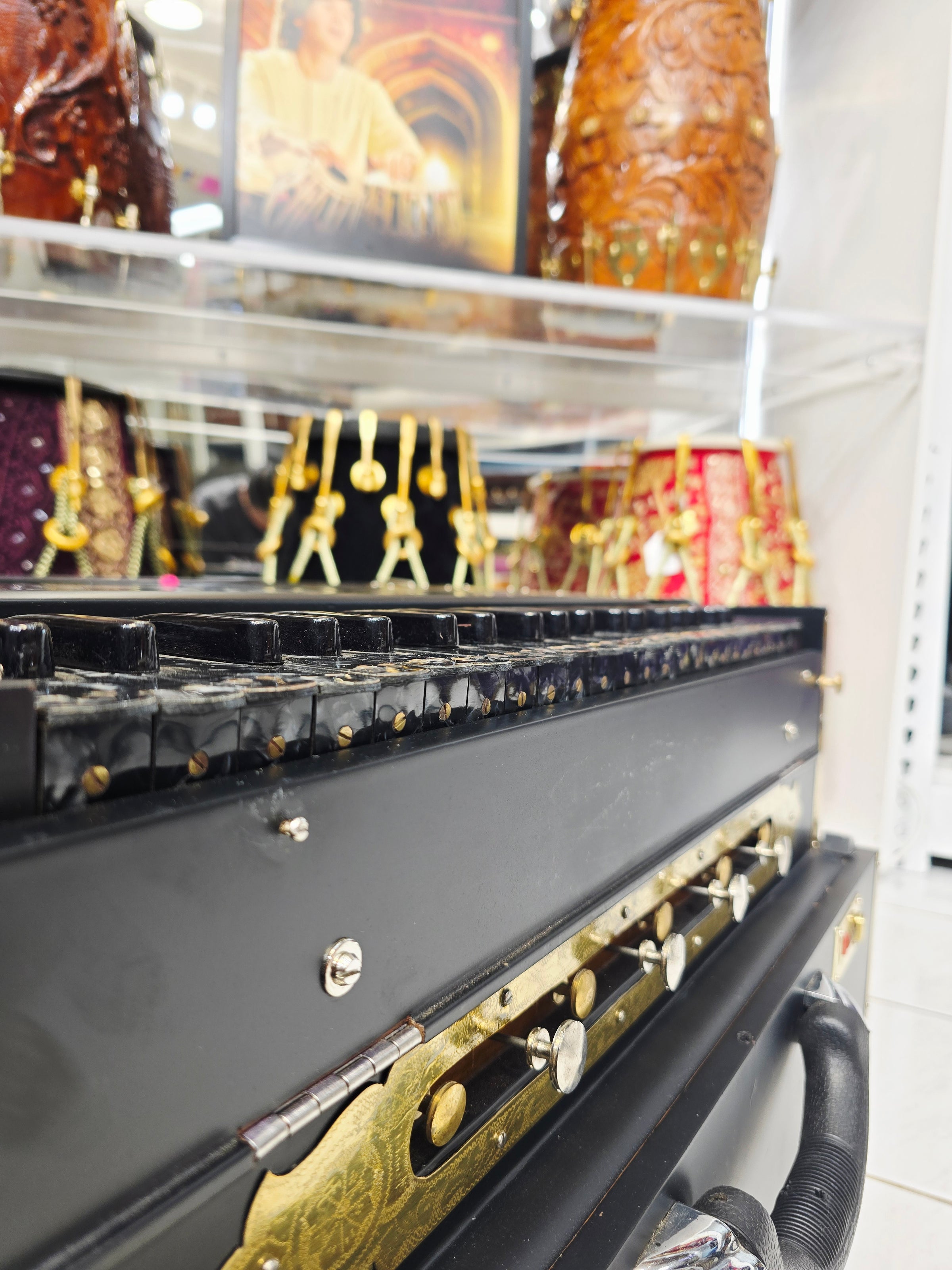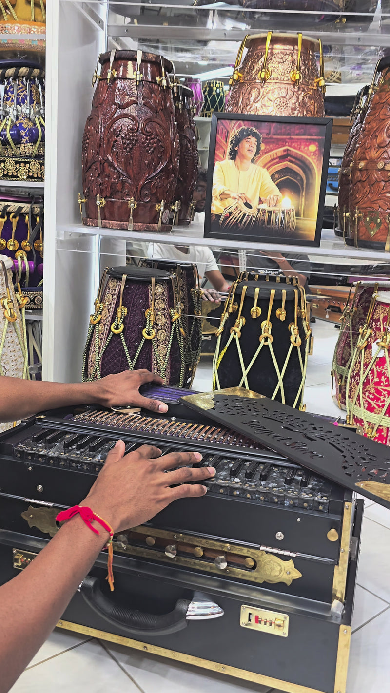 The finest crafted harmoniums available in the world. We have worked tirelessly to narrow down the most skilled, creative, responsible, and trustworthy makers to source our Premium Harmoniums. Each Harmonium is quality checked, tuned, maintained and tested to guarantee optimal performance, response & durability. We are proud to present to you, Sangeet Store's collection of World Class Premium Harmoniums.