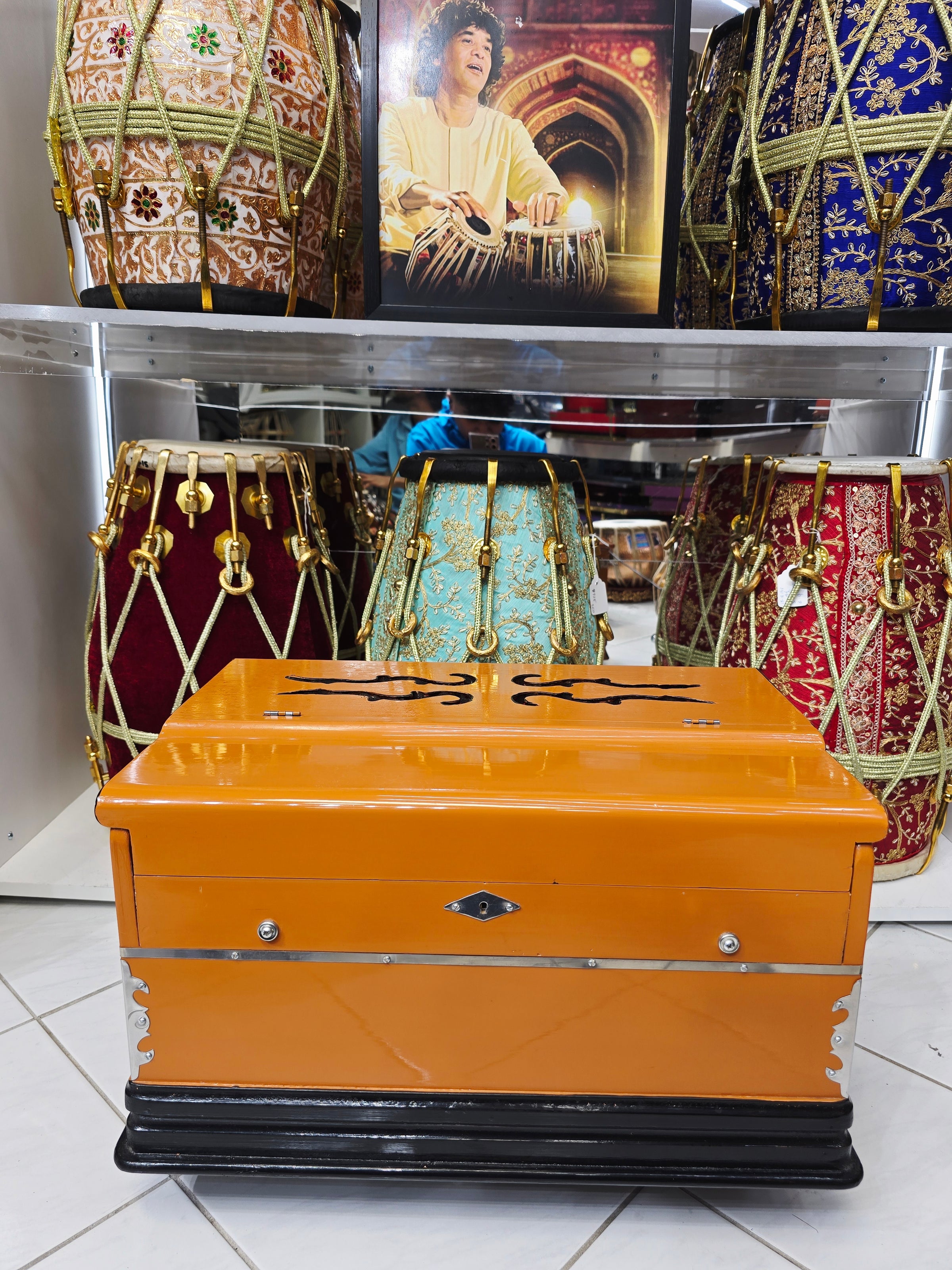 Saffron Symphony: Compact Orange 32 Key Semi-Pro Boxed Harmonium with Coupler (Without Stoppers) *Very Minor Cosmetic Blemishes