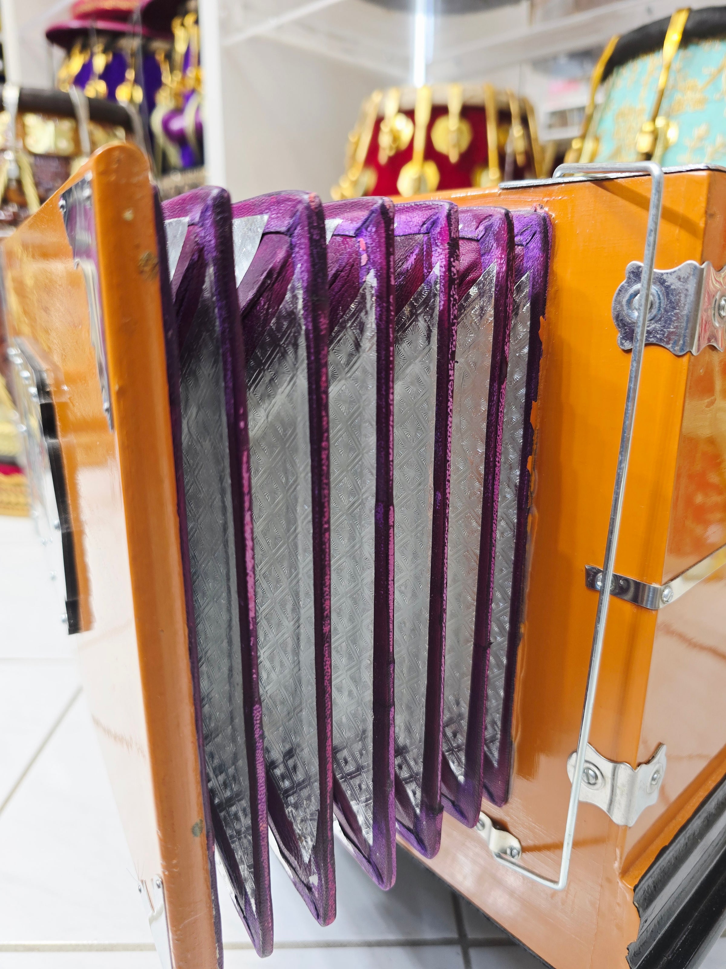 The finest crafted harmoniums available in the world. We have worked tirelessly to narrow down the most skilled, creative, responsible, and trustworthy makers to source our Premium Harmoniums. Each Harmonium is quality checked, tuned, maintained and tested to guarantee optimal performance, response & durability. We are proud to present to you, Sangeet Store's collection of World Class Premium Harmoniums.