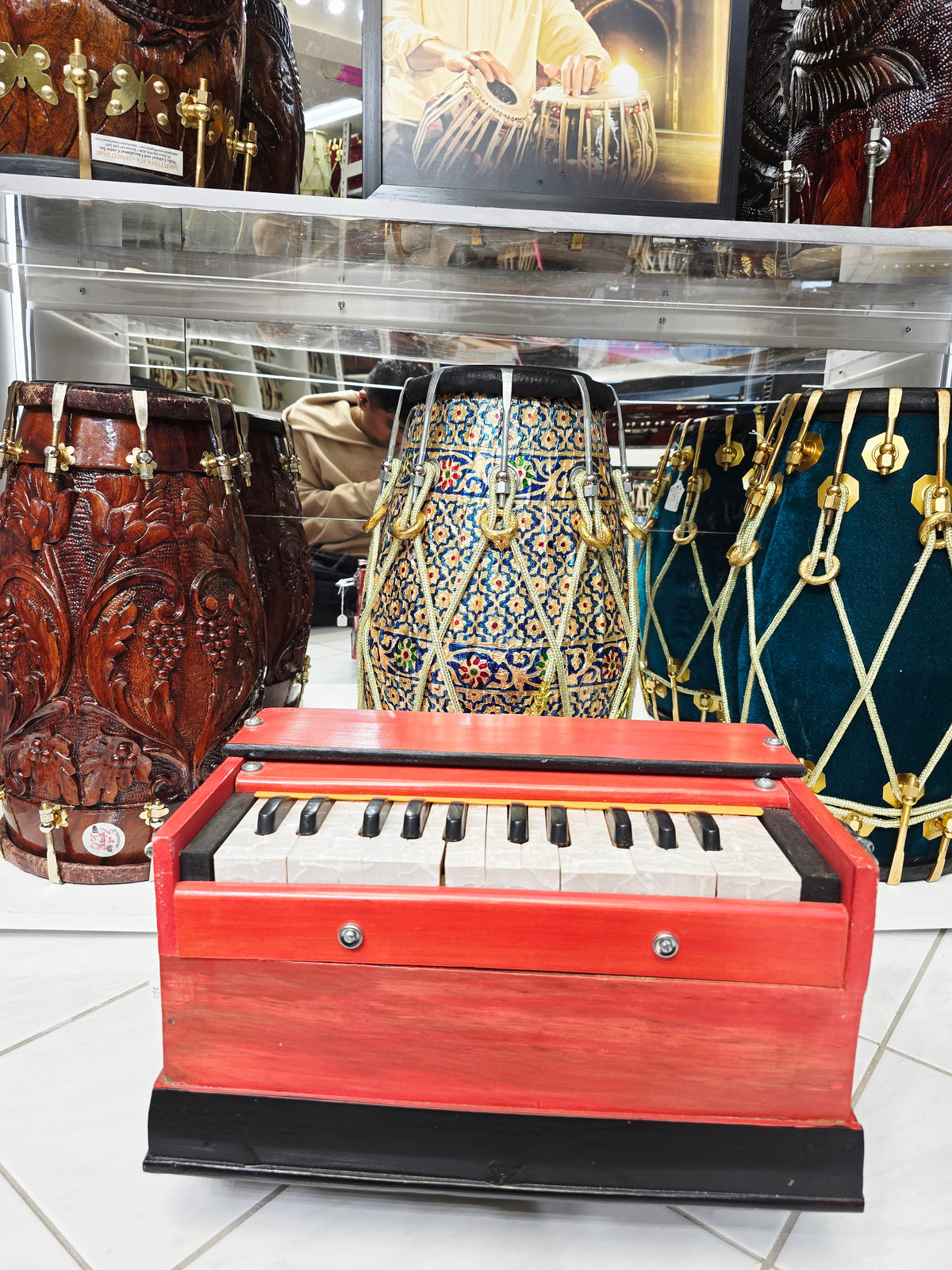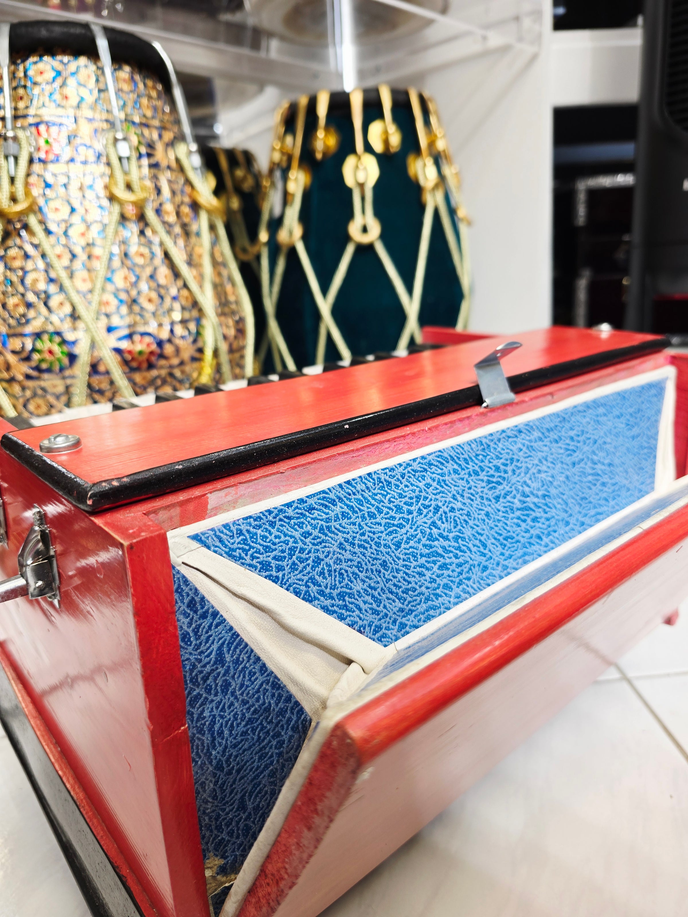 The finest crafted harmoniums available in the world. We have worked tirelessly to narrow down the most skilled, creative, responsible, and trustworthy makers to source our Premium Harmoniums. Each Harmonium is quality checked, tuned, maintained and tested to guarantee optimal performance, response & durability. We are proud to present to you, Sangeet Store's collection of World Class Premium Harmoniums.