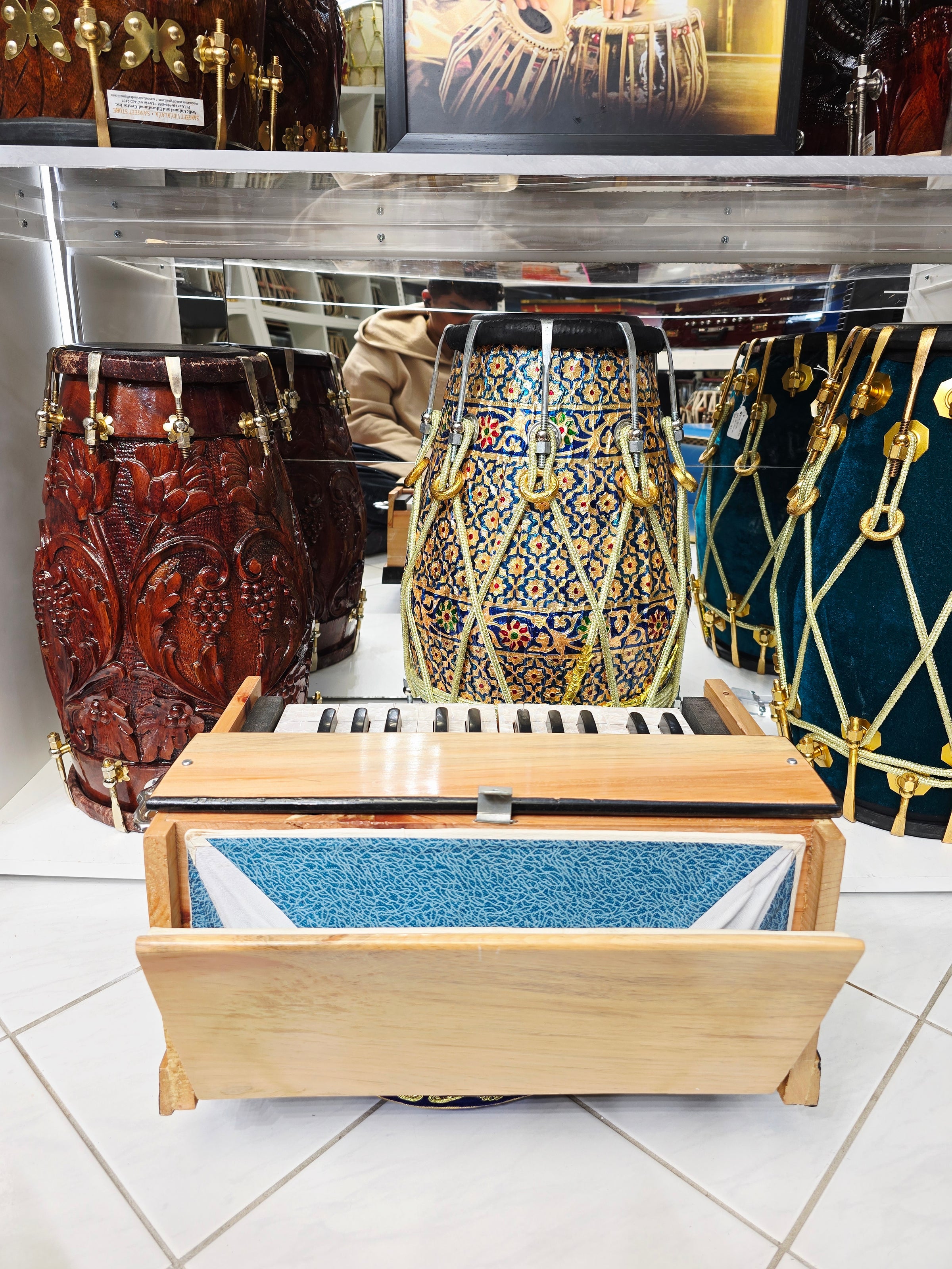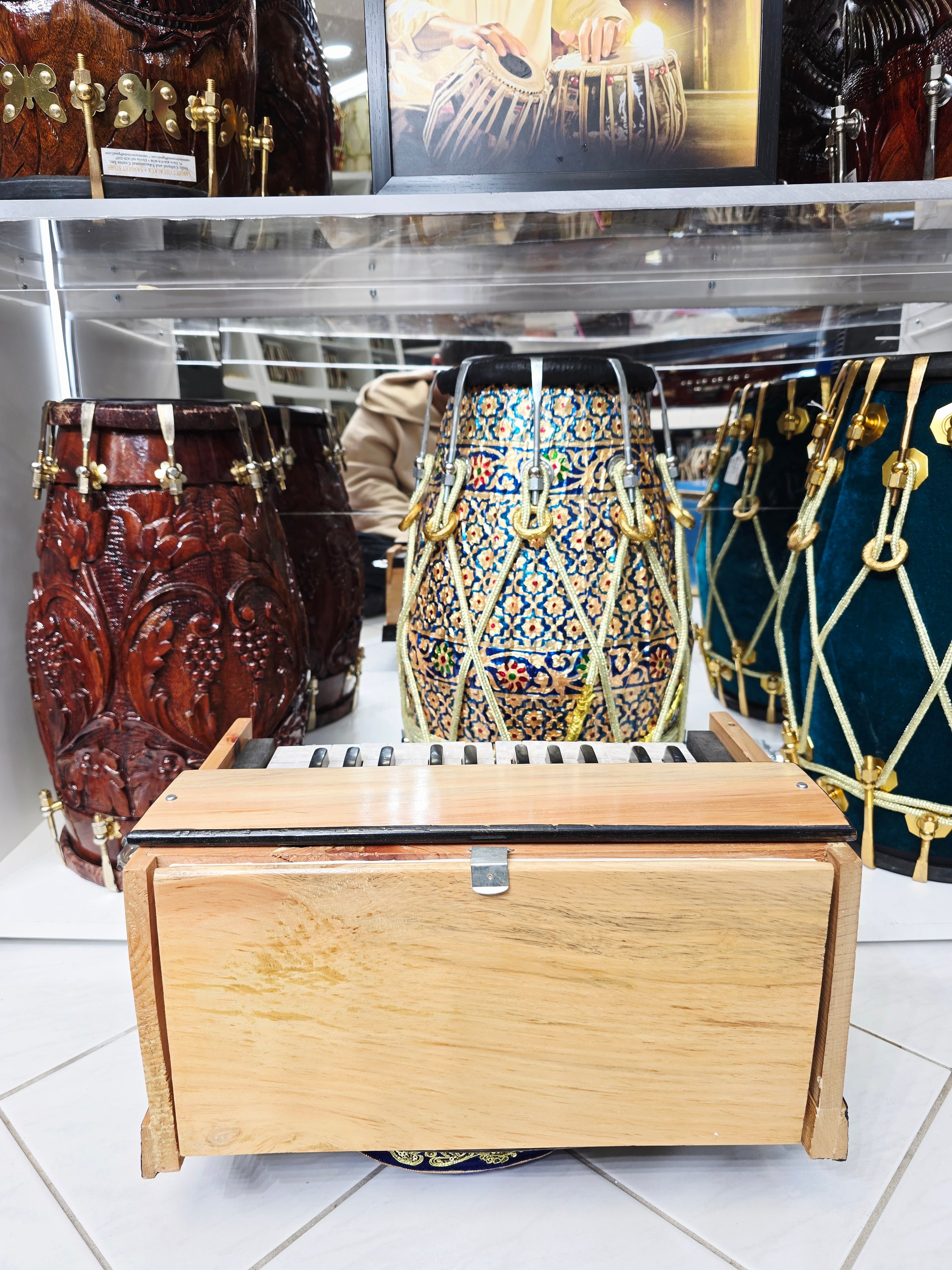 The finest crafted harmoniums available in the world. We have worked tirelessly to narrow down the most skilled, creative, responsible, and trustworthy makers to source our Premium Harmoniums. Each Harmonium is quality checked, tuned, maintained and tested to guarantee optimal performance, response & durability. We are proud to present to you, Sangeet Store's collection of World Class Premium Harmoniums.