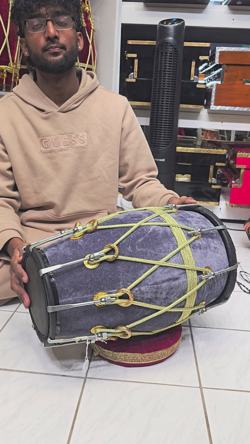 Introducing "The Dark Knight's Resonance™ Batman-Inspired Dholak," a musical marvel that channels the enigmatic spirit of the Caped Crusader. Cloaked in sleek grey velvet and adorned with chrome bolts and a golden ropes design, this dholak is a tribute to Batman's iconic presence. With a Red Sheesham wood body producing rich tones and a dynamic mix of thin-rimmed treble and black skins, it's a versatile instrument designed to elevate every musical performance. Unleash your inner superhero with the Dark Knight's Resonance™ Dholak and make your melodies soar in Gotham-worthy style.