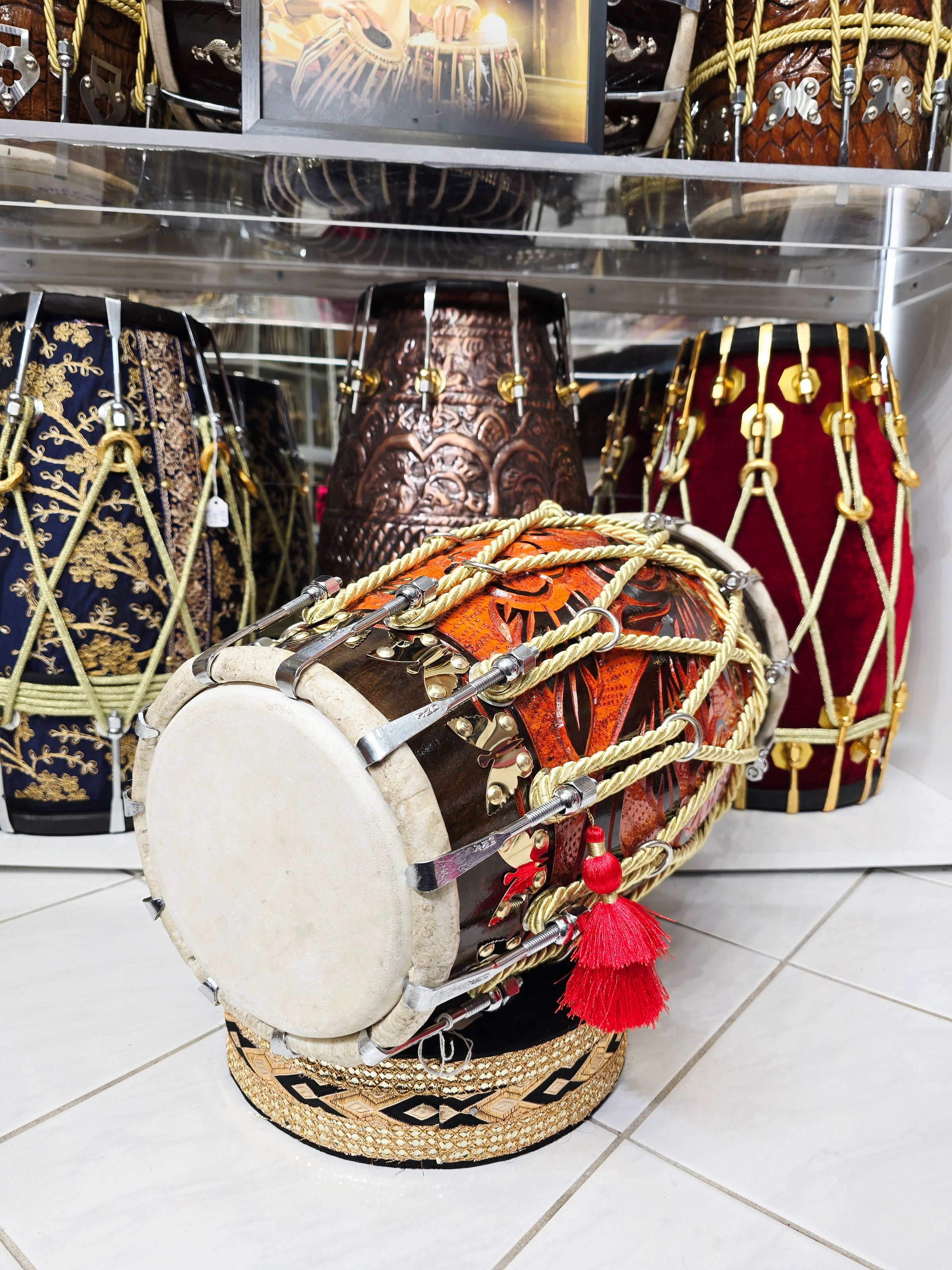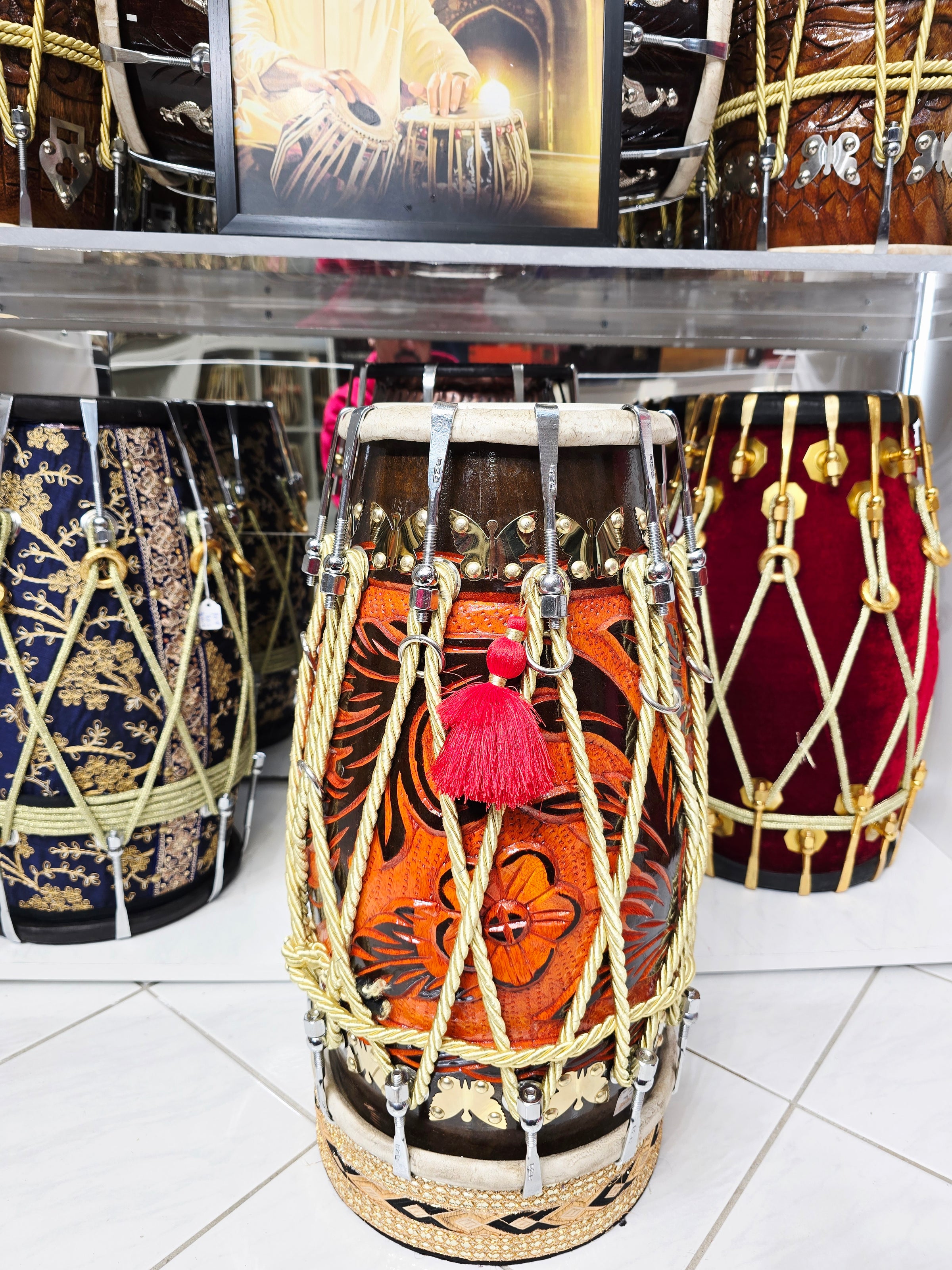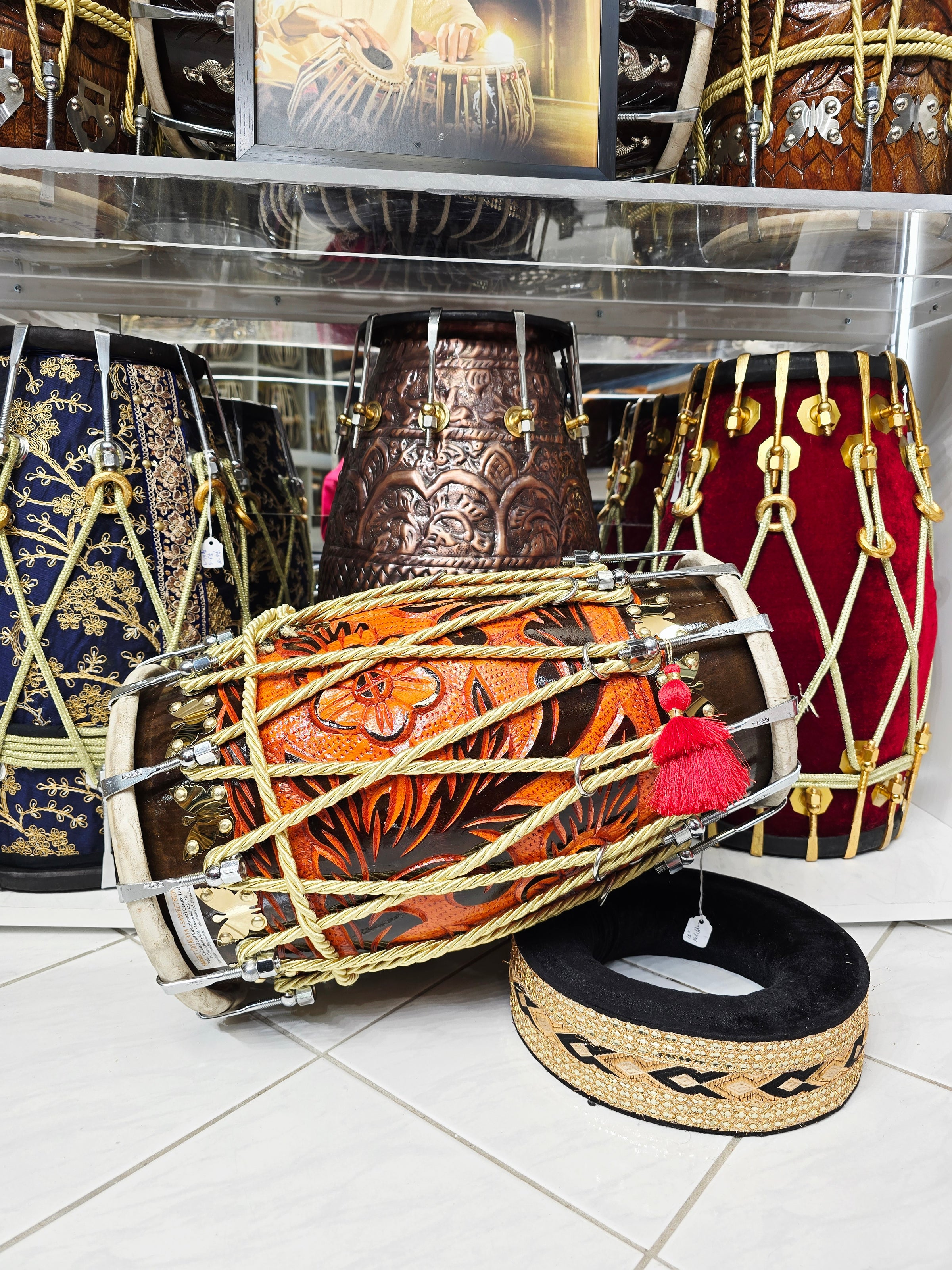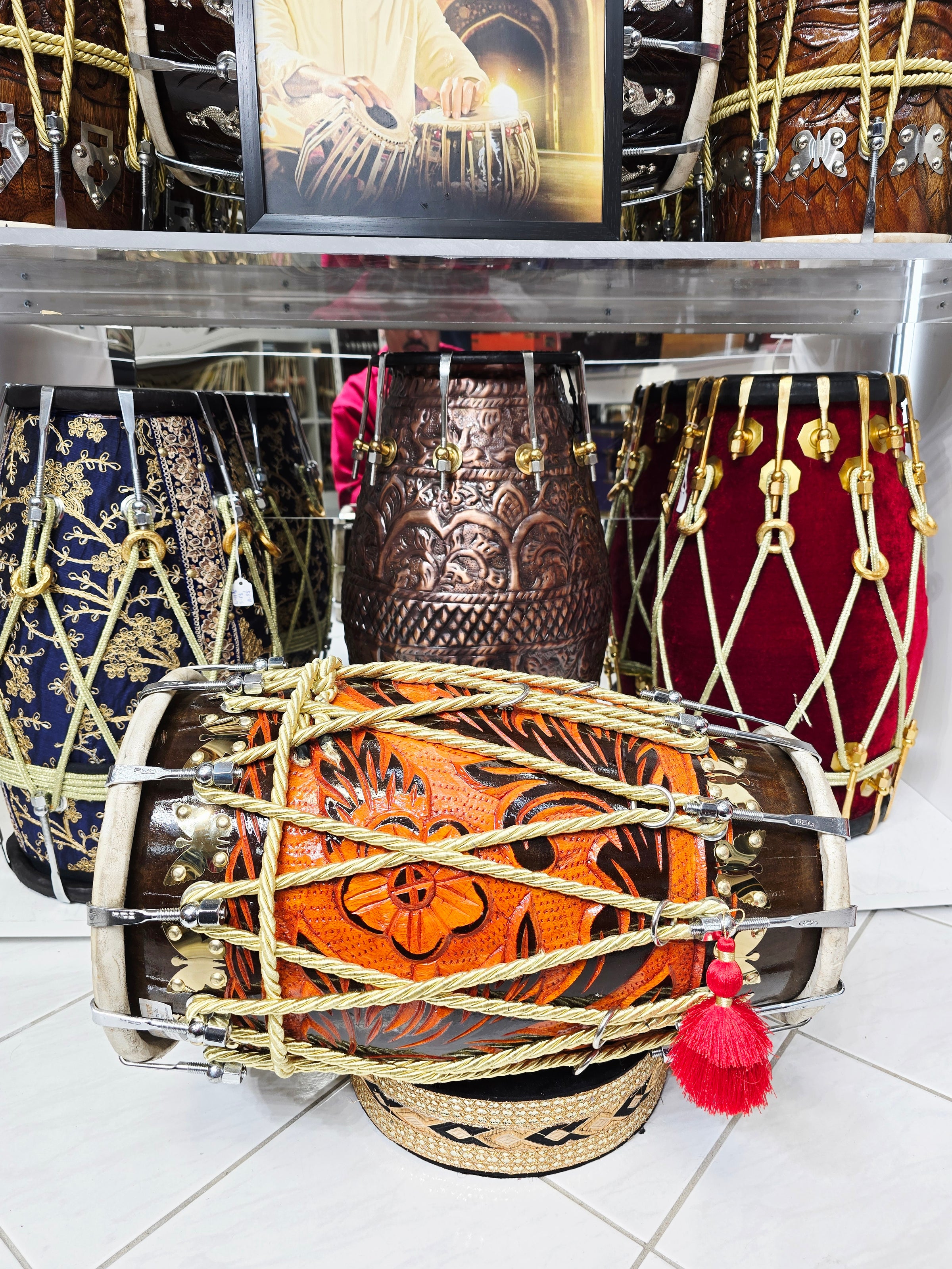 Our world renowned collection of Concert Quality Dholaks, featuring the most unique Dholak Designs and concert quality sound. The most talented Dholak Craftsmen in the world are responsible for the concert quality sound that puts the icing on the magnificent designs and themes featured on our Premium Dholaks aesthetics.