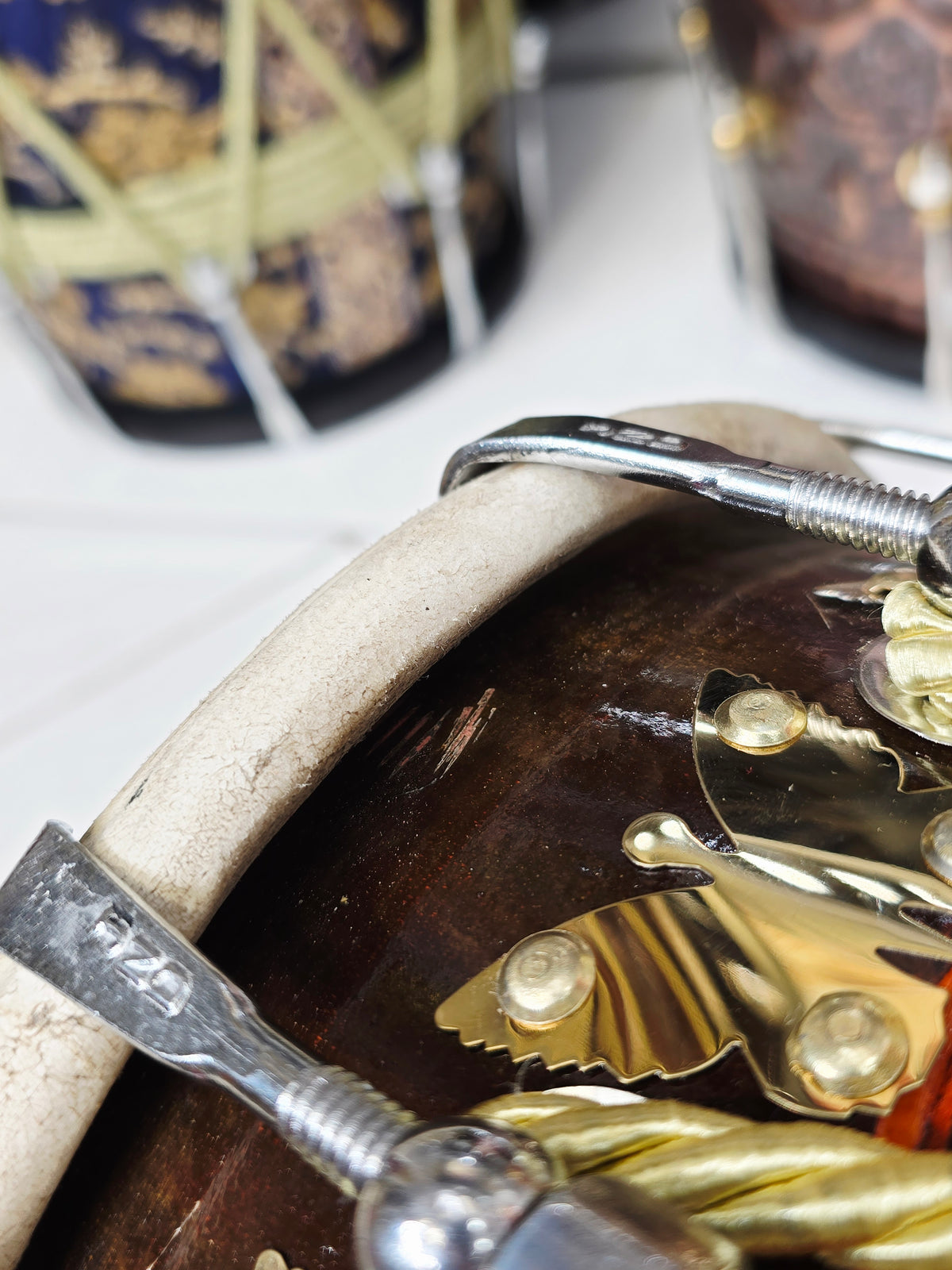 Rakhta is an 18" concert-grade dholak carved from rich red sheesham for enhanced resonance and projection. The sculpted shell amplifies low-end punch while maintaining crisp attack, making it ideal for high-energy playing and ensemble settings.