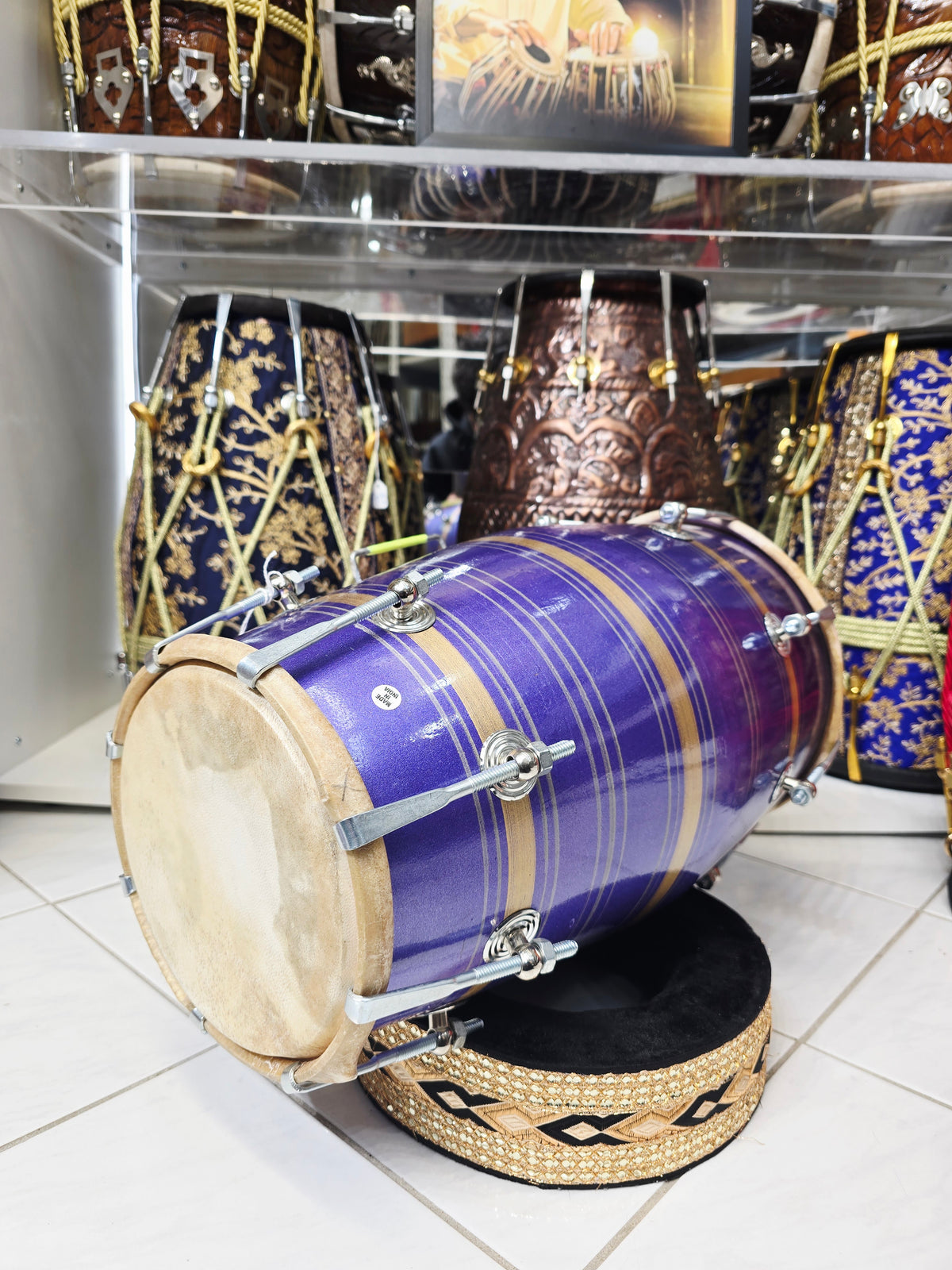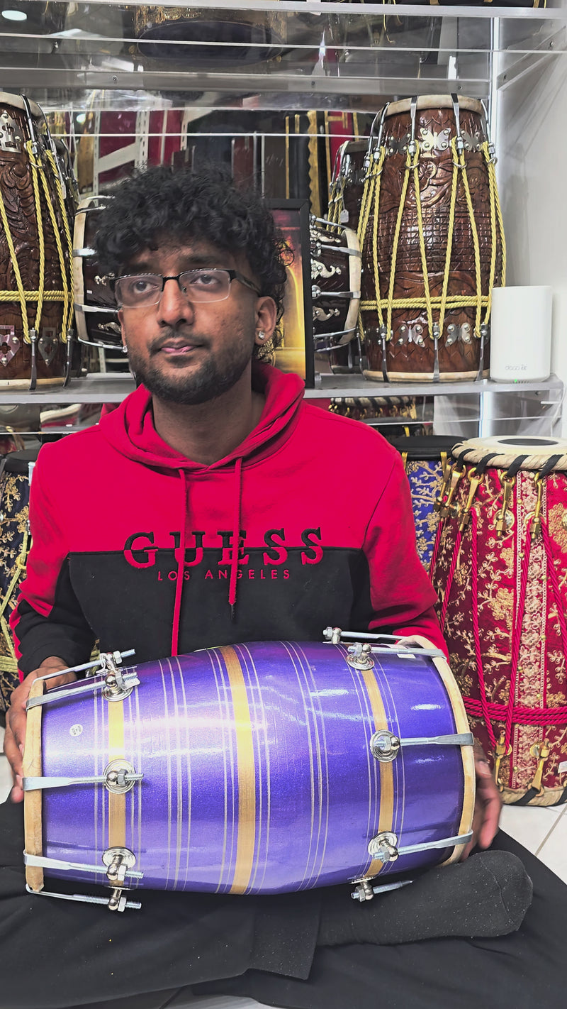 Violet Cadence: Purple Student Quality Red Sheesham Dholak with Chrome Bolts and a Handle *Cosmetic Defects