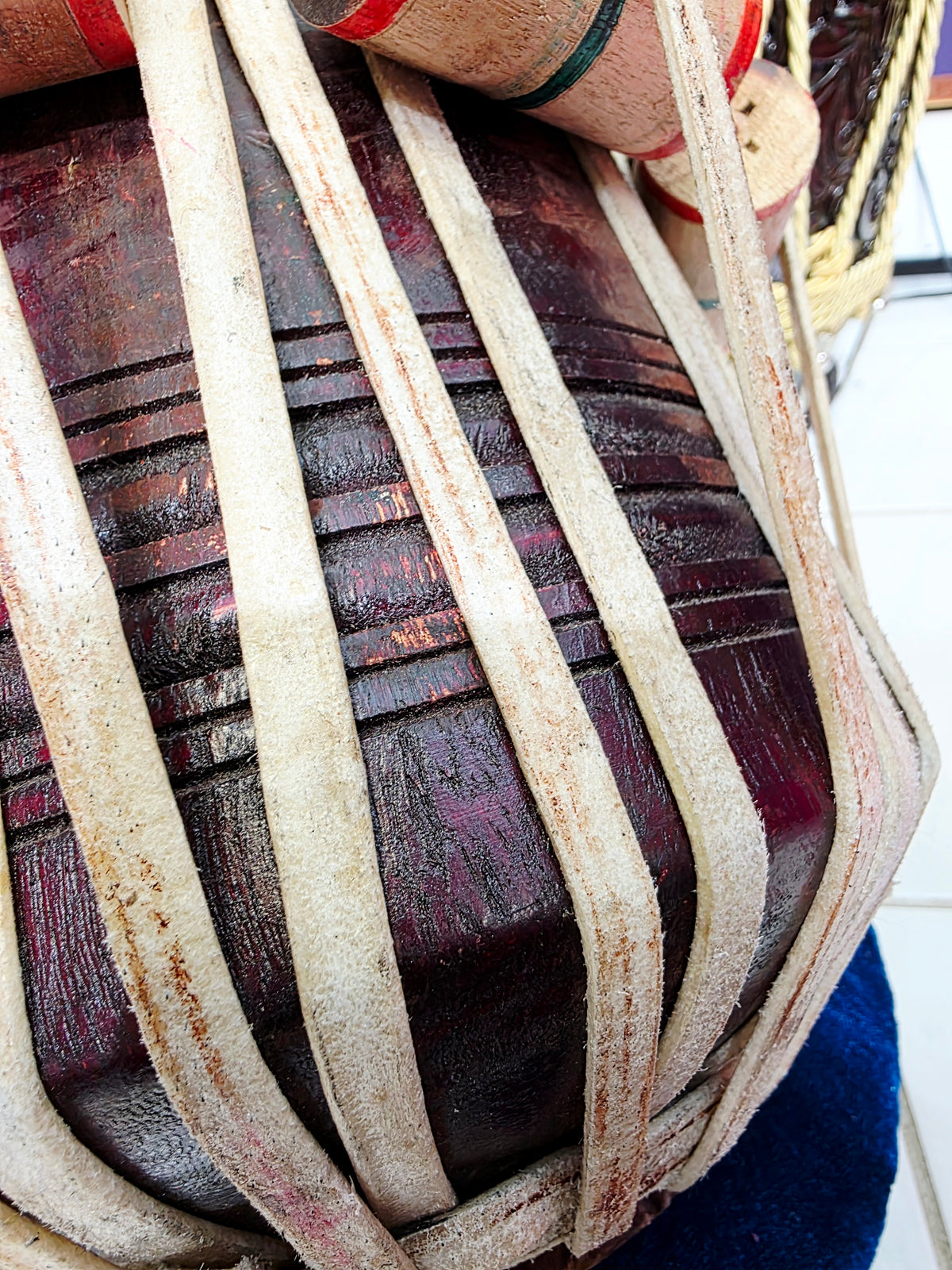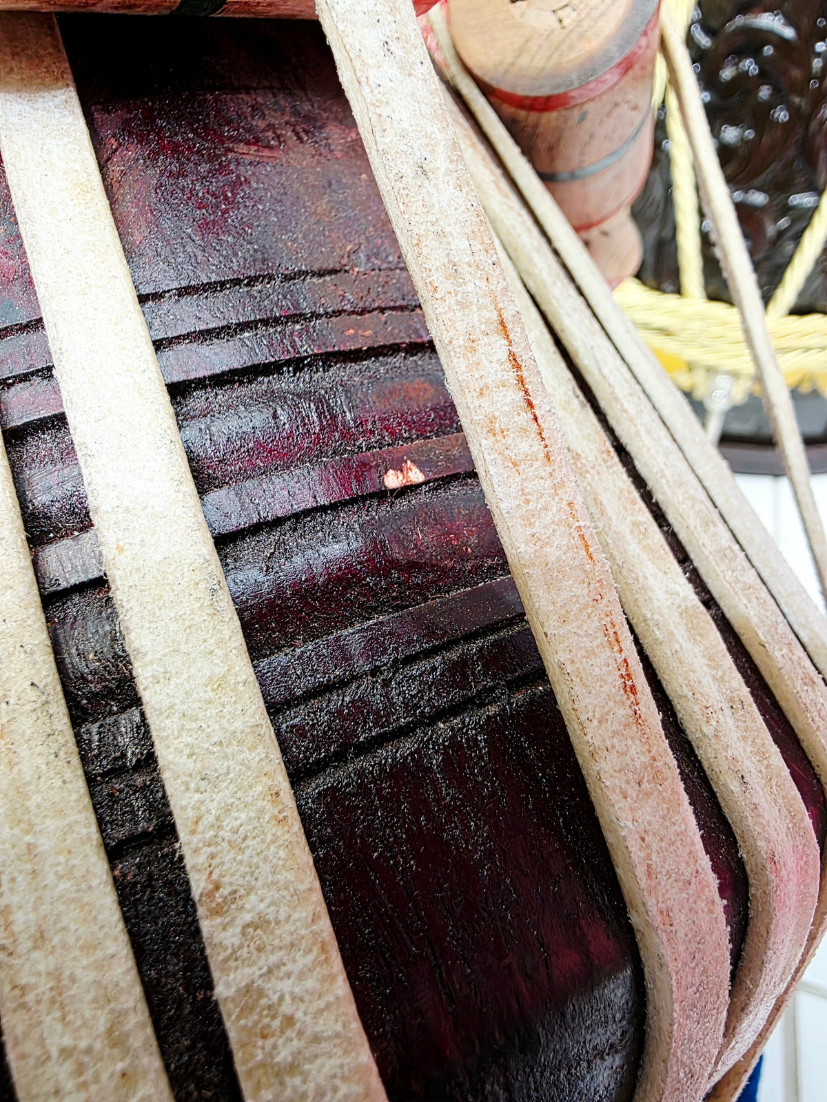 Elevated in tone and artistry, DivyaNaad (“Divine Resonance”) is a masterfully balanced tabla set handcrafted by the legendary Qasim Khan Niyazi & Sons of Banaras. The 9.25" silver-coated copper bayan delivers thunderous yet articulate bass, responsive to the lightest modulation, while the 6" red sheesham dayan—tuned in the expressive C#/D range—rings with clear, sharp na and precise ta strokes. Built for serious stage performers and classical purists alike, this set blends tonal brilliance with traditional Banarasi elegance. With its meticulous tuning, handcrafted proportions, and soulful voice, DivyaNaad becomes more than an instrument—it becomes your sonic signature.