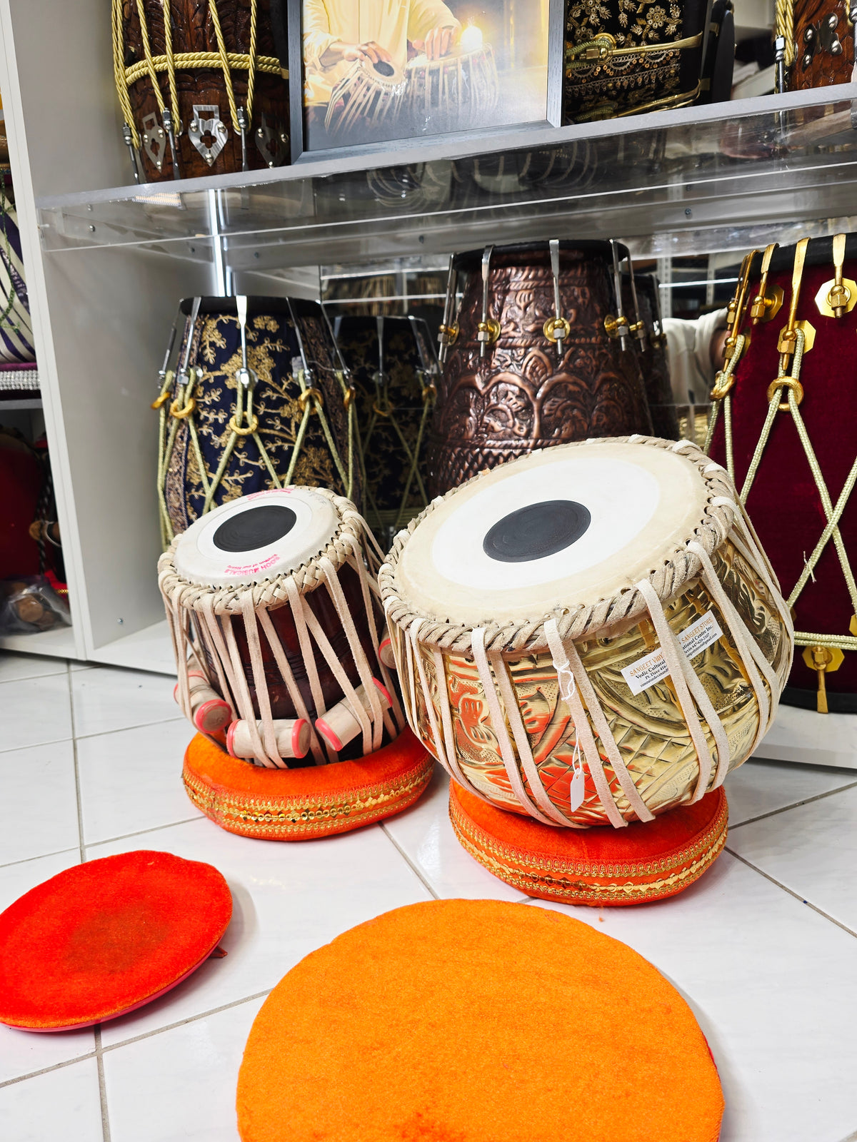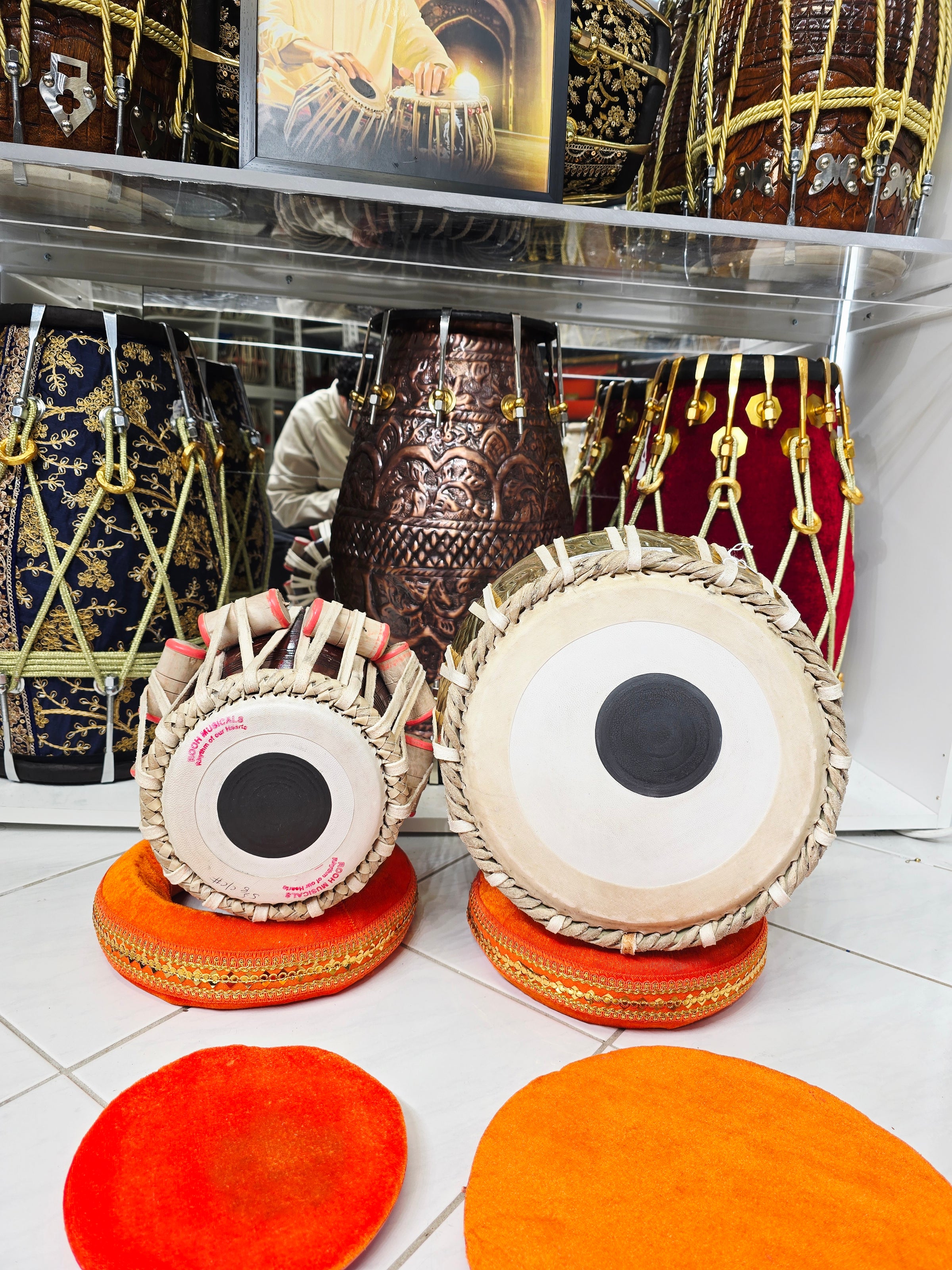 The Economy Tabla Sets Collection is designed to offer a high-quality tabla experience at an affordable price point. Crafted from a slightly lower grade of materials as our premium models, these tabla sets are produced in one of the factories that we partner with in India by talented, lesser-known tabla makers. The collection is perfect for students, tabla enthusiasts, or even advanced players willing to compromise slightly on perfection for greater affordability. While these sets may not offer the same consistency or flawless craftsmanship as our higher-end models, their solid materials and respectable craftsmanship place them in the C+ to B grade range of their respective categories. Each set is transparently displayed with its unique features, providing a great entry-level option for tabla players of all levels.