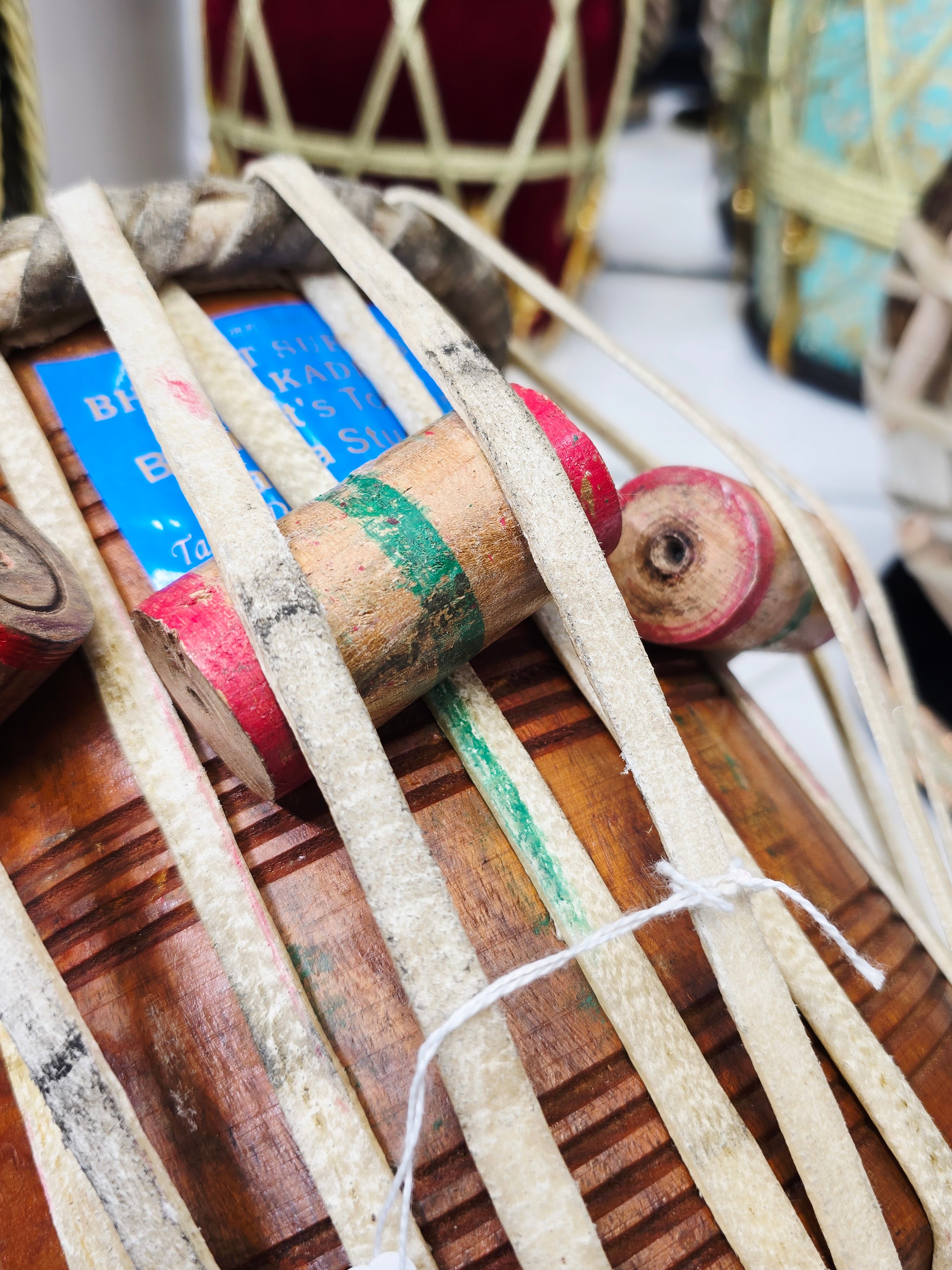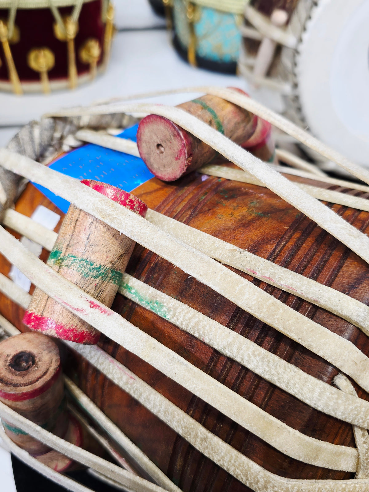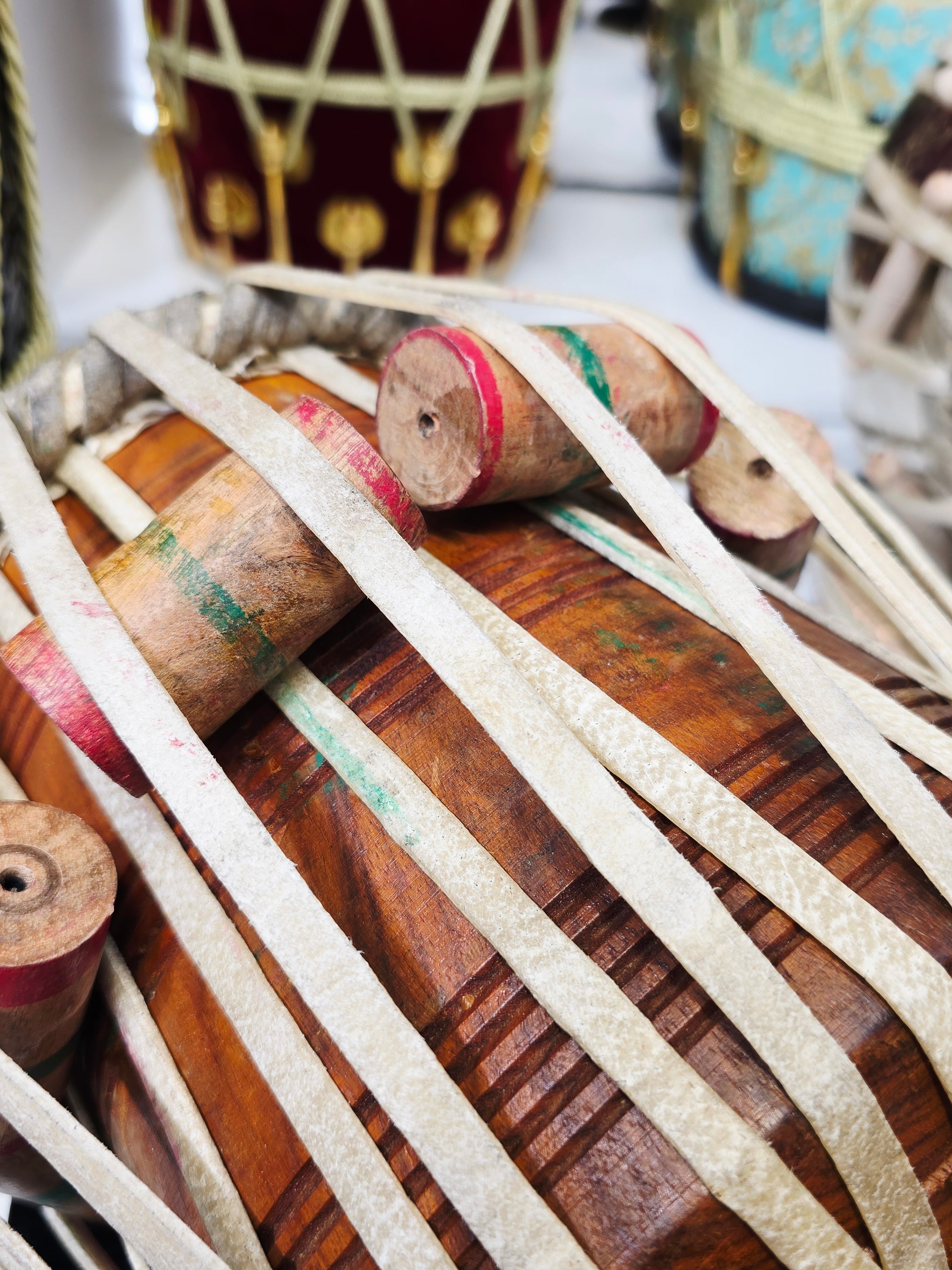 Flowing with tonal purity and crafted for dynamic expression, SvarNadi (“River of Melody”) is a premium tabla set by Bharat Kakade that balances precision with depth. The 9" silver-coated copper bayan offers a controlled yet thunderous bass response, while the 6" red sheesham dayan—tuned between B and C#—produces sharp, resonant highs with a crisp, articulate na. Ideal for classical soloists and versatile accompanists alike, this set blends aesthetic grace with acoustic power, making SvarNadi a reliable choice for stage, studio, or daily riyaaz.