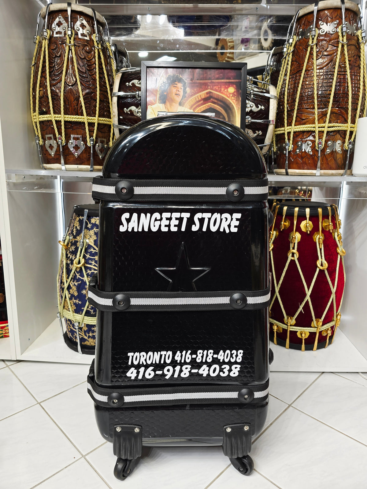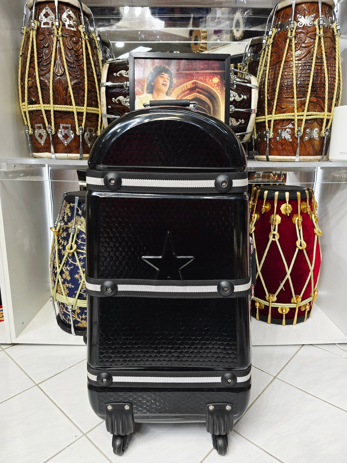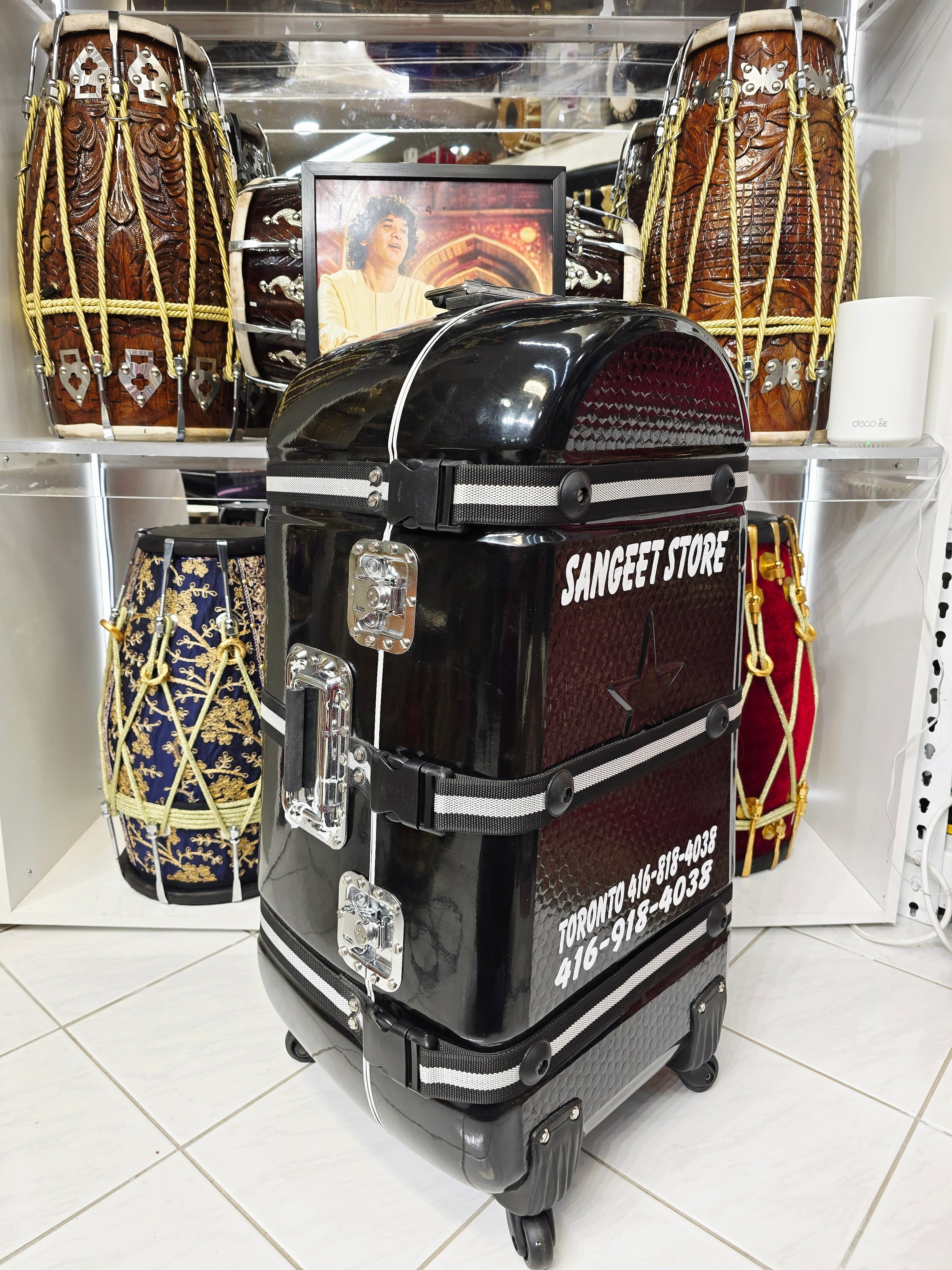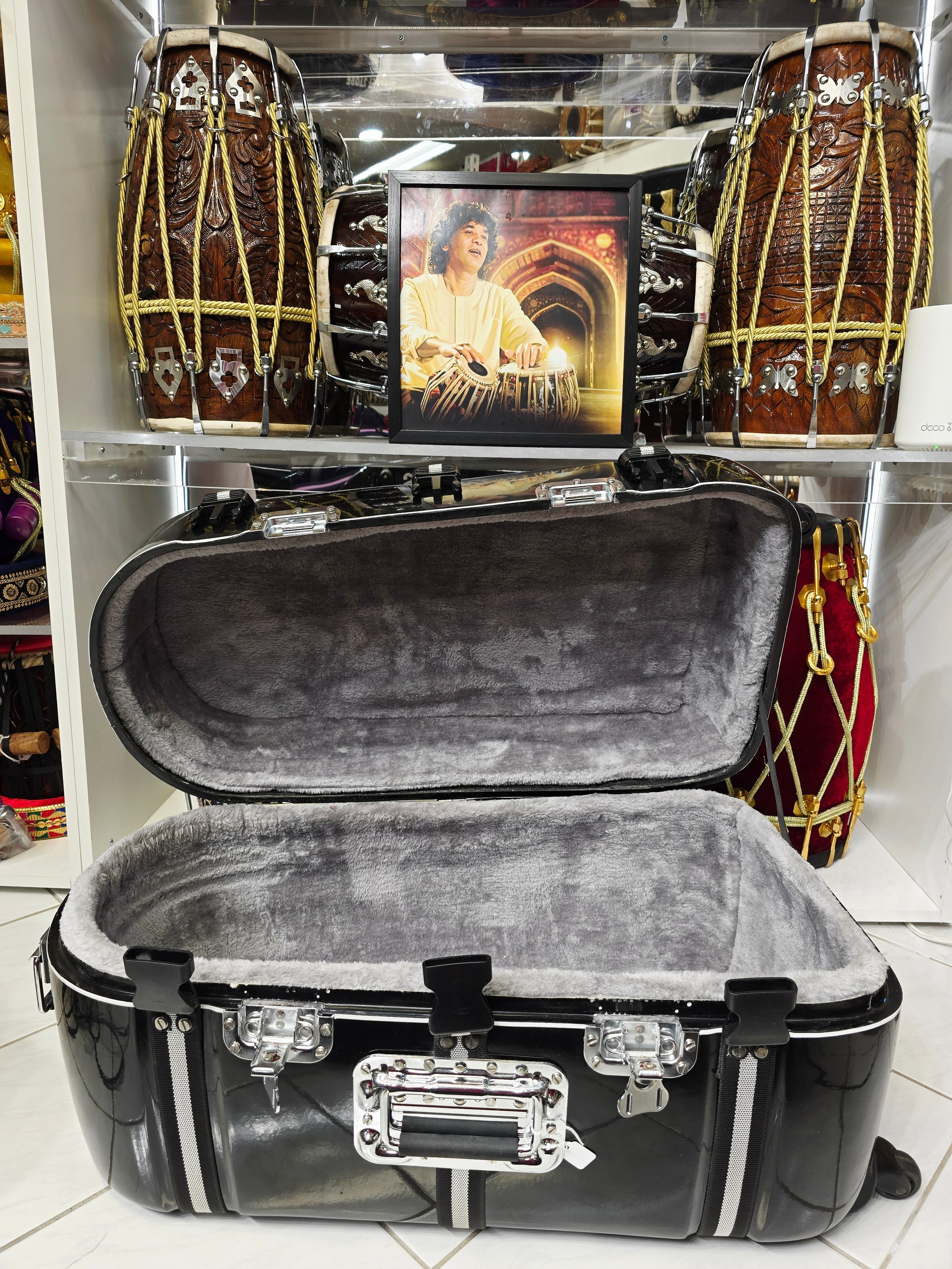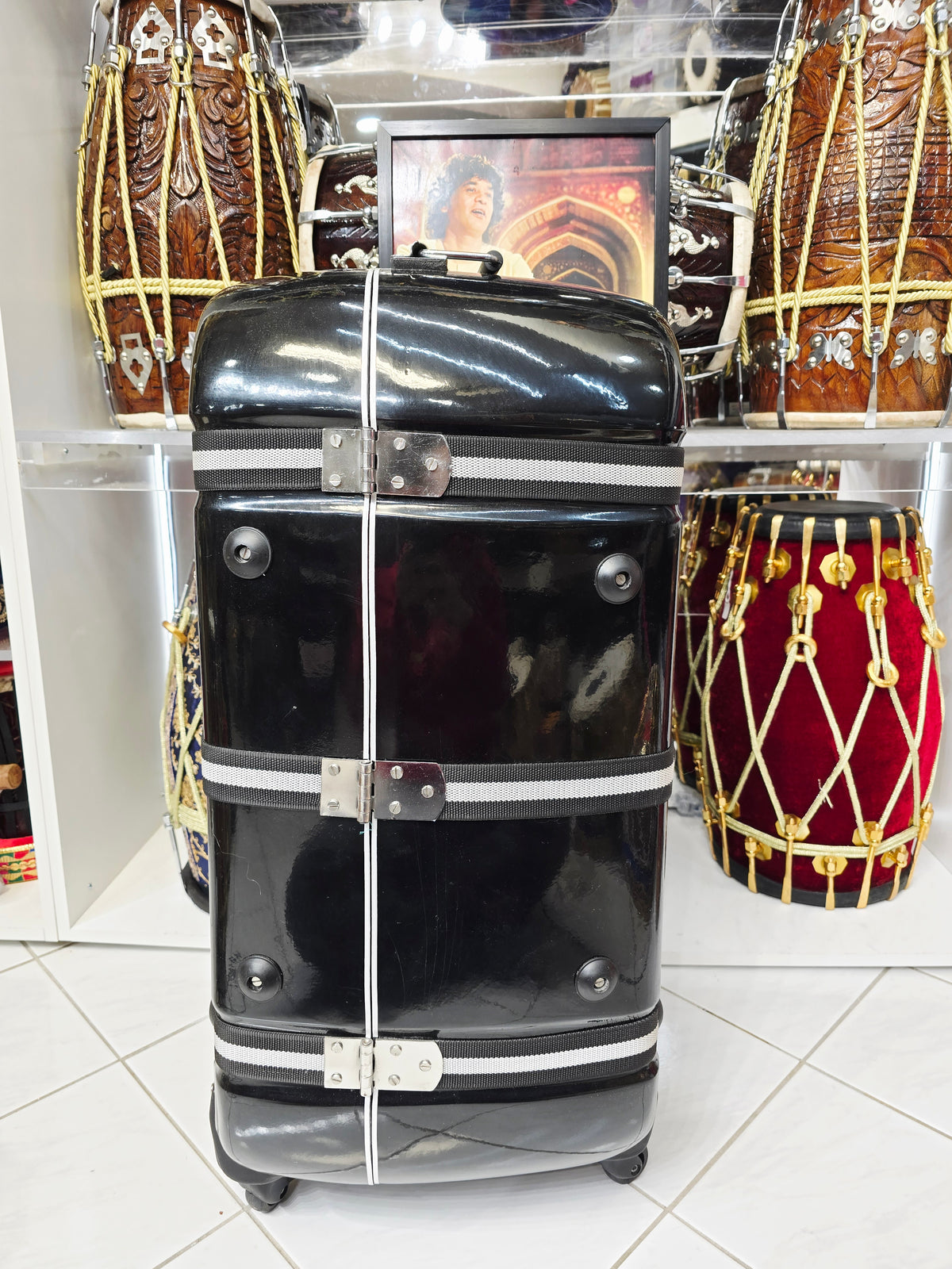 This dholak + tabla hybrid travel case is built for serious protection and mobility, featuring a rigid hard-shell body, secure locking hardware, and smooth-rolling wheels for easy transport. Designed to safely accommodate both dholak and tabla, it offers a stable internal fit suited for performers, travel, and long-term storage.