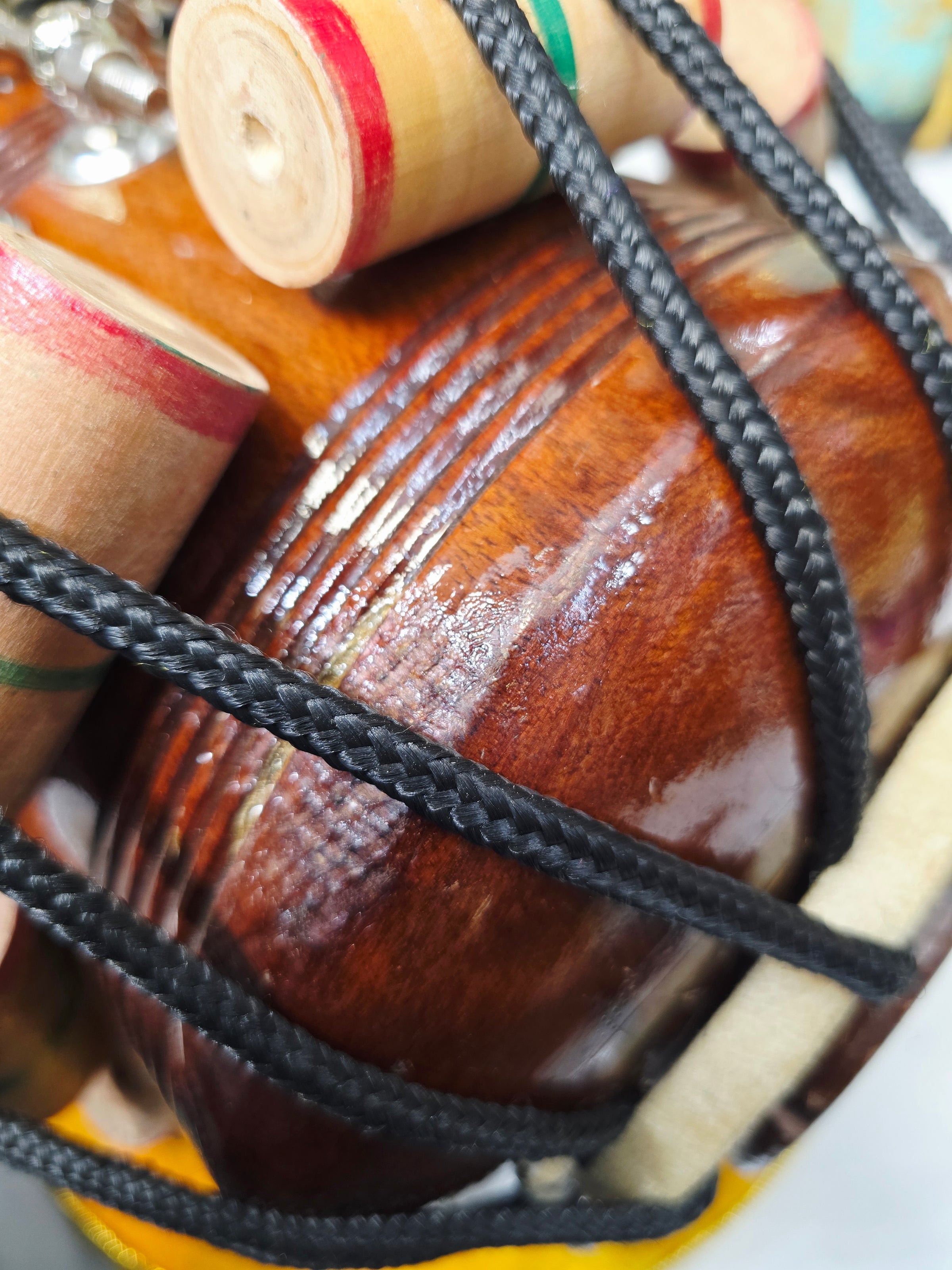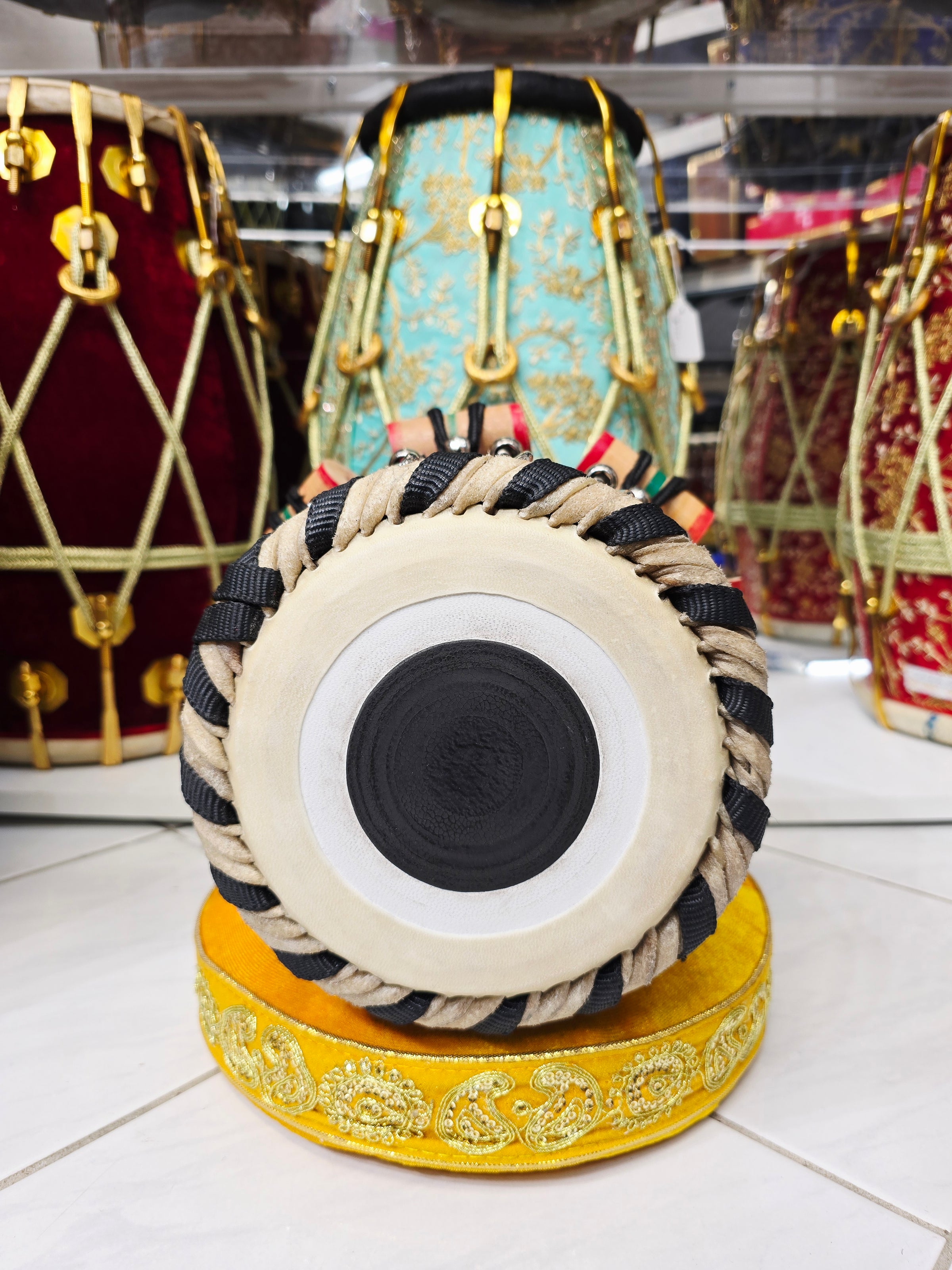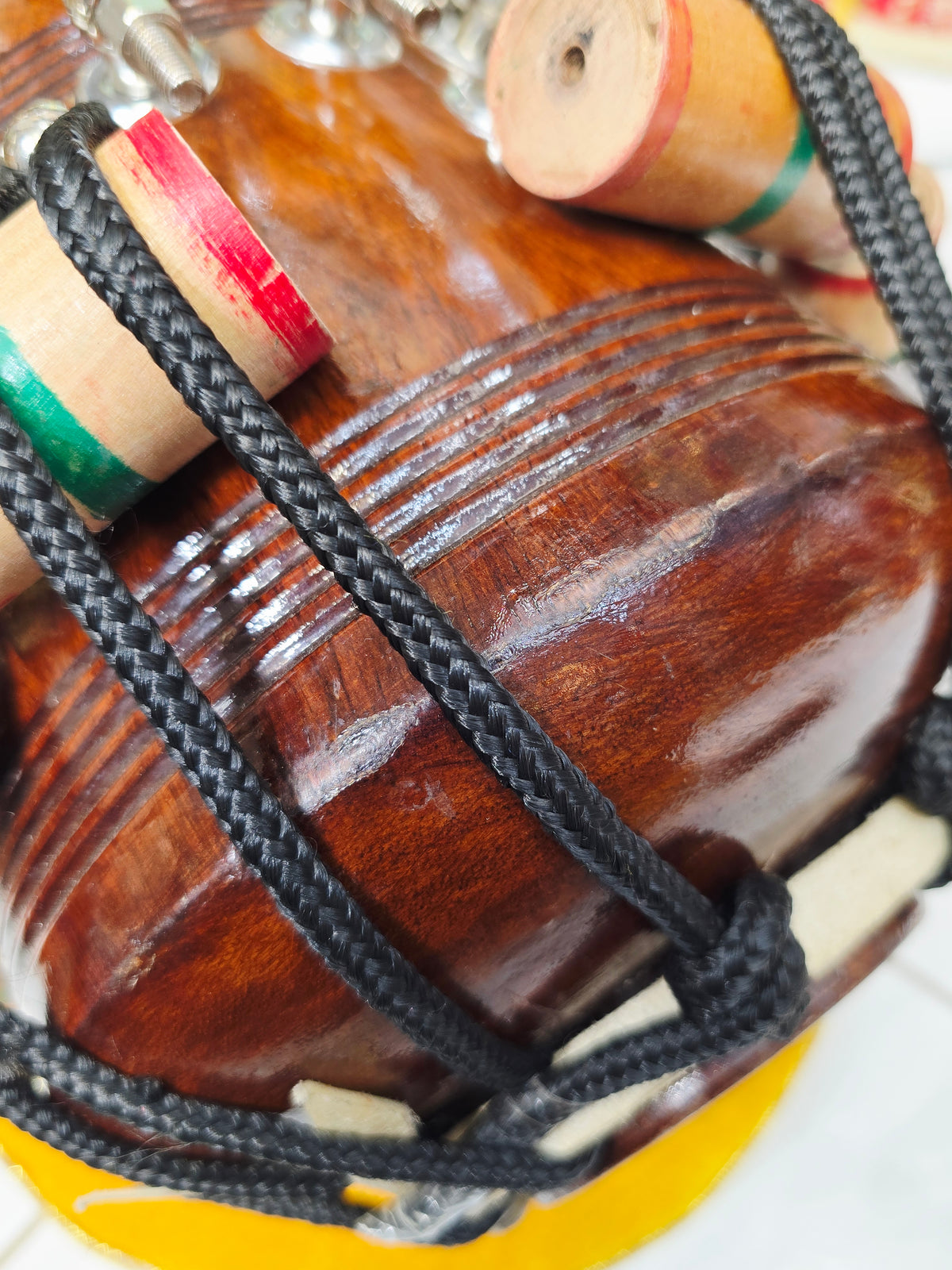 Unveil the symphonic brilliance within your fingertips with the "Luminous Echo: The Resonant Maestro" Premium C# Shaikh Makbool 5.75" Nut & Bolt Dayan. Crafted to transcend musical boundaries, this masterpiece bears witness to the fusion of traditional artistry and modern innovation. Its resplendent hand-carved body, meticulously constructed from premium Red Sheesham wood, exudes a timeless elegance. The advanced nut and bolt tuning system bestows unparalleled control over each note's resonance, while the generous 5.75" size ensures a robust tonal range. As you caress the goat skin, a luminous symphony reverberates, enveloping you in a world of melodic enchantment. Elevate your musical aspirations with the "Luminous Echo," an embodiment of craftsmanship and artistry that empowers you to become the true maestro of your melodies.