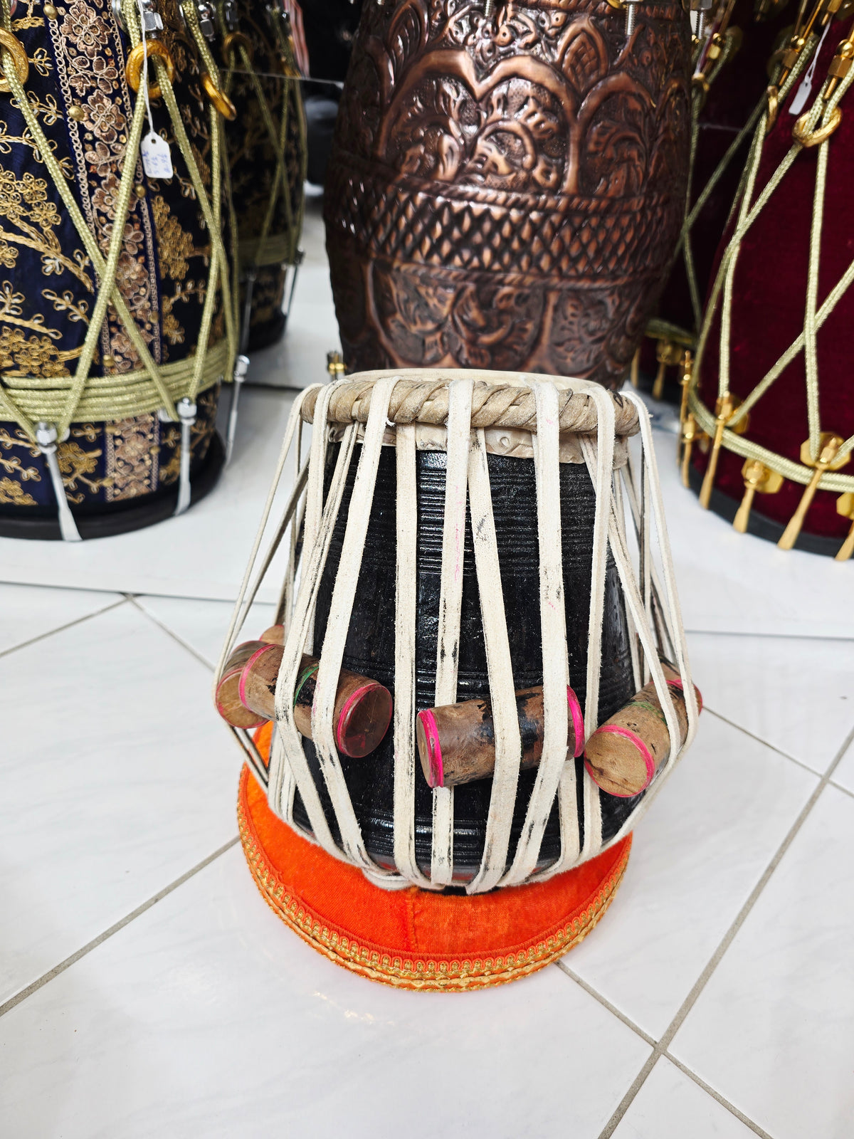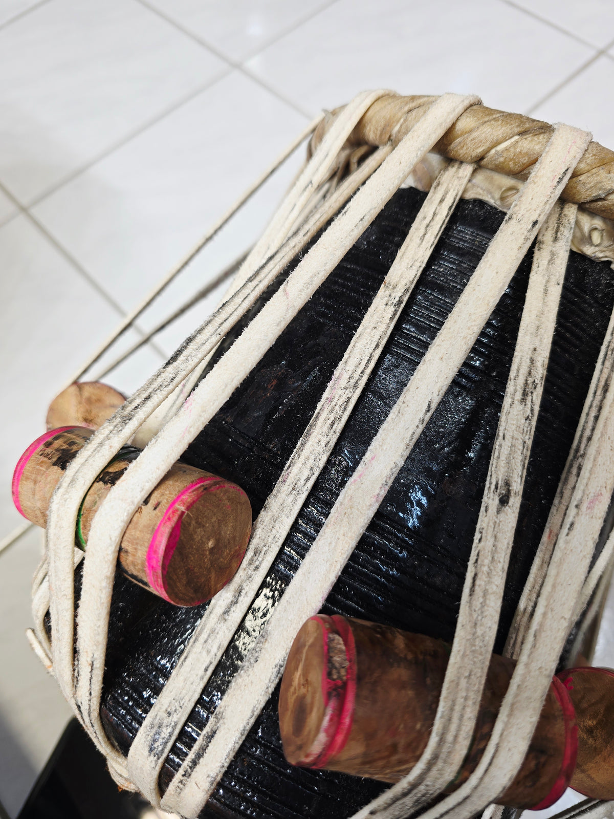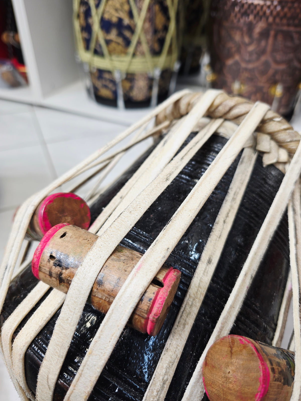 The Shadow Ember is a 5.5" D/D# red sheesham dayan crafted for crisp clarity and strong tonal projection. Its compact size offers excellent responsiveness and sharp articulation, making it ideal for fast compositions and precise accompaniment. The natural sheesham shell delivers bright, focused highs with controlled sustain, while traditional strap lacing ensures stable tuning. Minor cosmetic defects are present but purely visual — they do not affect tone or performance. A solid, great-sounding dayan with character and value built in.