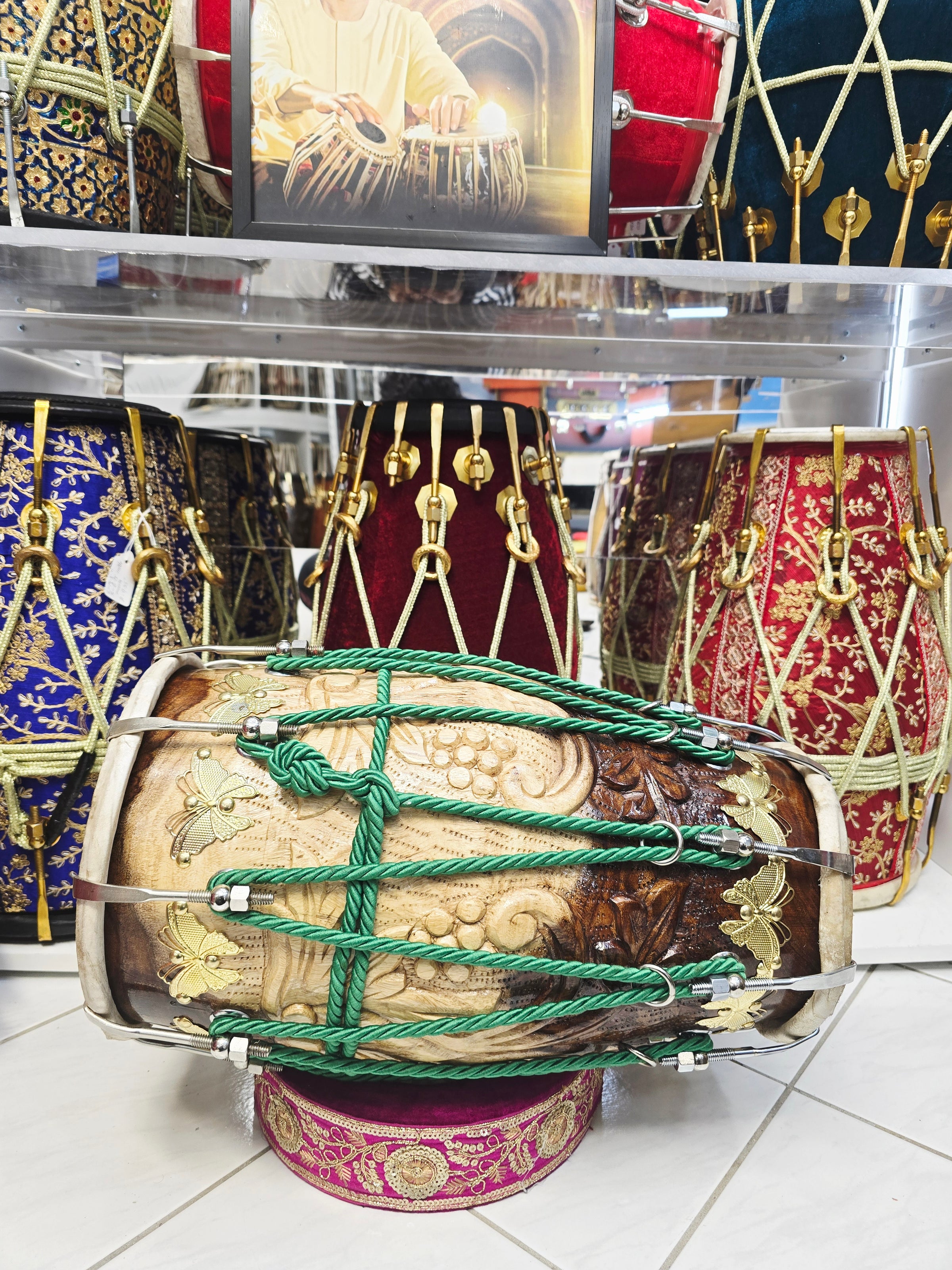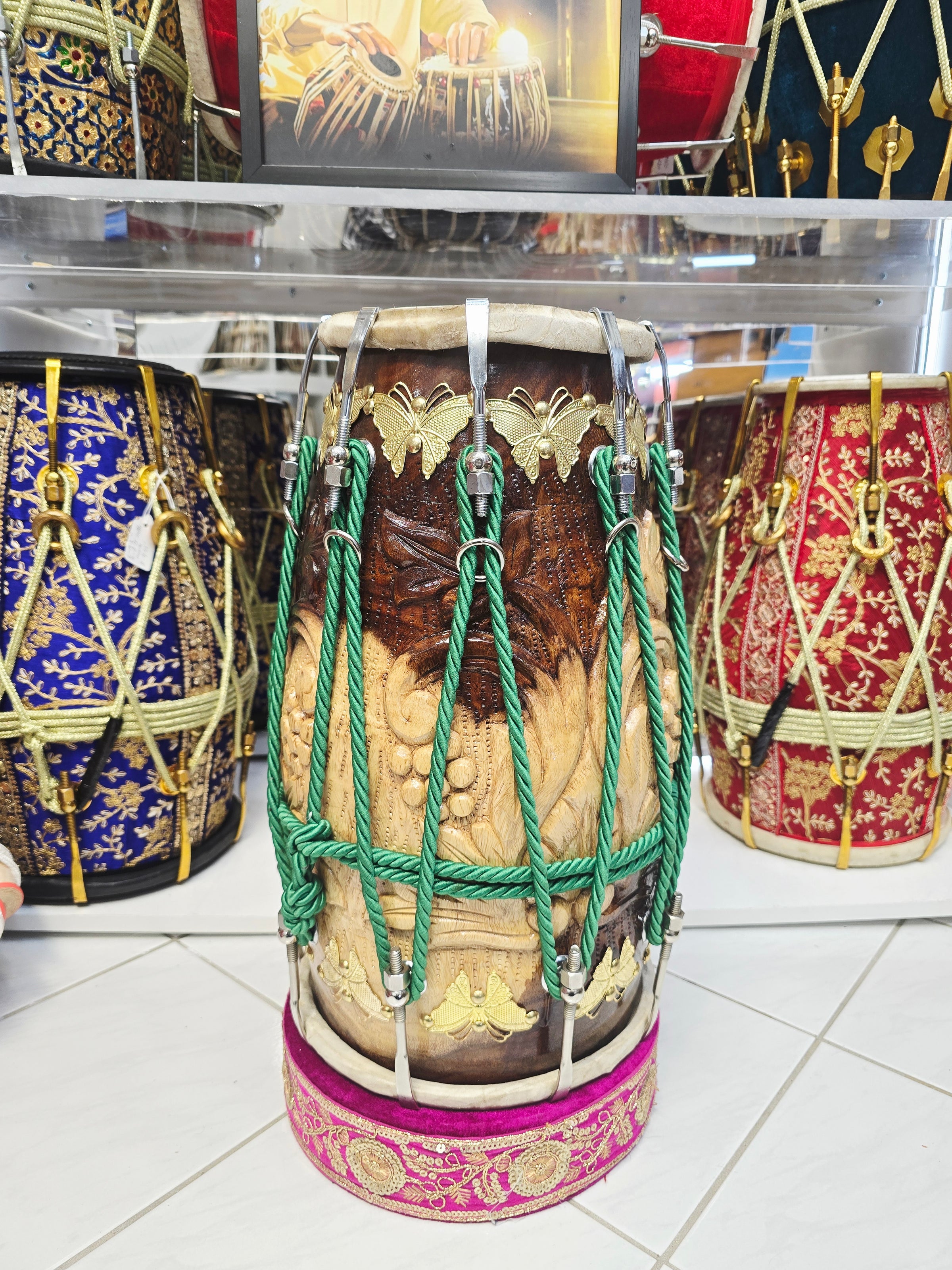 Our world renowned collection of Concert Quality Dholaks, featuring the most unique Dholak Designs and concert quality sound. The most talented Dholak Craftsmen in the world are responsible for the concert quality sound that puts the icing on the magnificent designs and themes featured on our Premium Dholaks aesthetics.