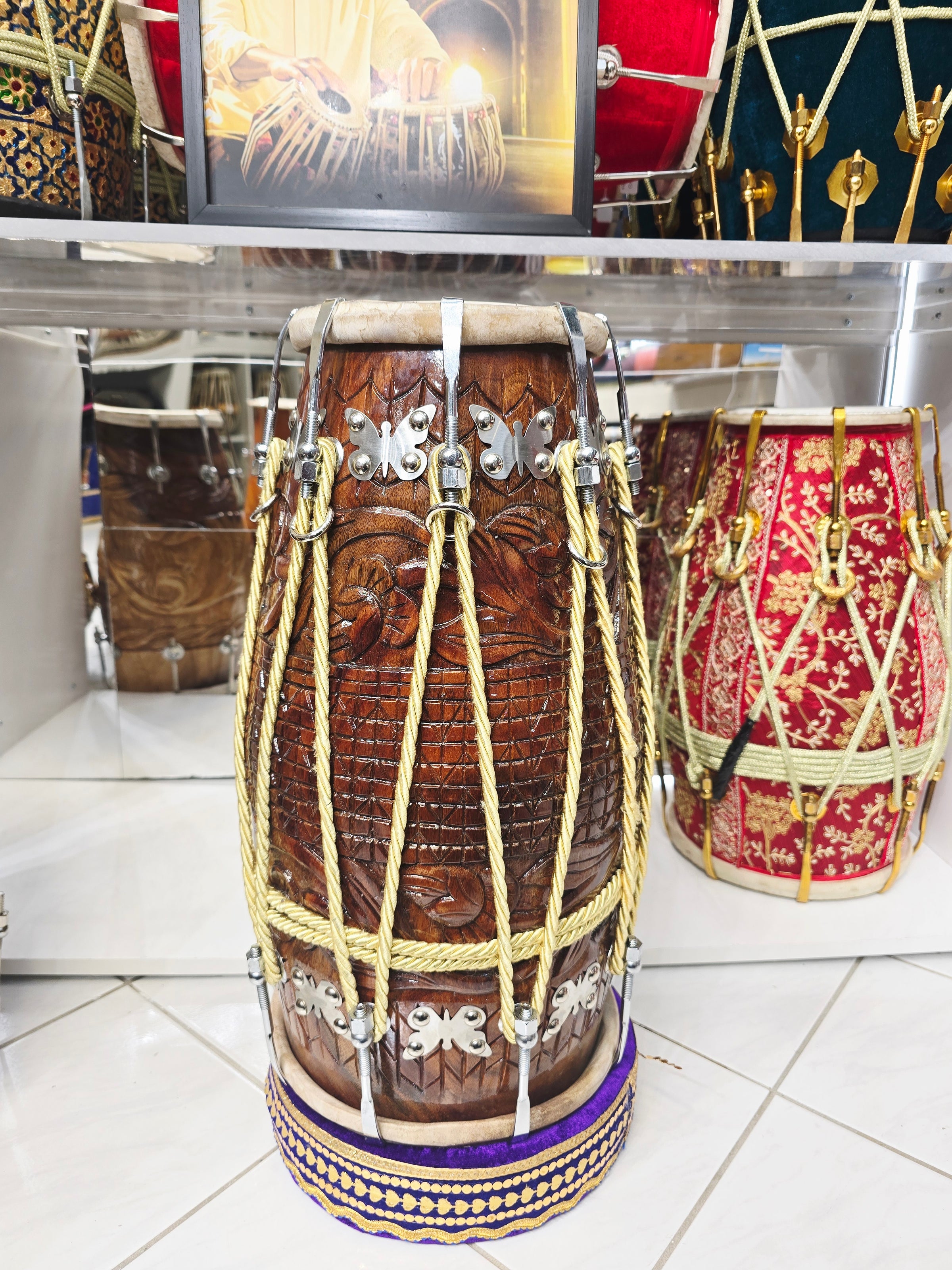 Our world renowned collection of Concert Quality Dholaks, featuring the most unique Dholak Designs and concert quality sound. The most talented Dholak Craftsmen in the world are responsible for the concert quality sound that puts the icing on the magnificent designs and themes featured on our Premium Dholaks aesthetics.
