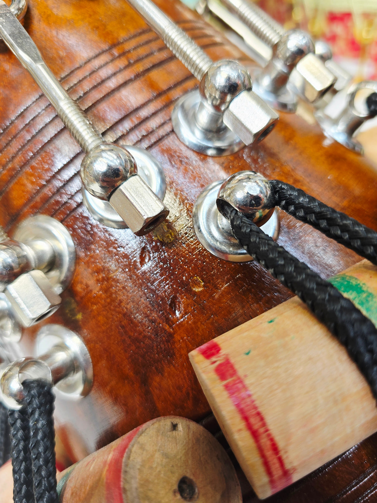 Immerse yourself in the melodic hues of the Vermillion Vibration Bolted Dayan. Crafted from premium red sheesham wood, this 5.25" F/F# dayan resonates with warmth and depth, offering a captivating sound that is both versatile and expressive. The bolted construction ensures stability and durability, providing reliable performance for musicians of all levels. Whether you're exploring classical compositions or creating your own rhythms, the Vermillion Vibration Dayan is the perfect instrument to accompany your tabla journey. Elevate your music and let your creativity flourish with this exquisite piece of craftsmanship.