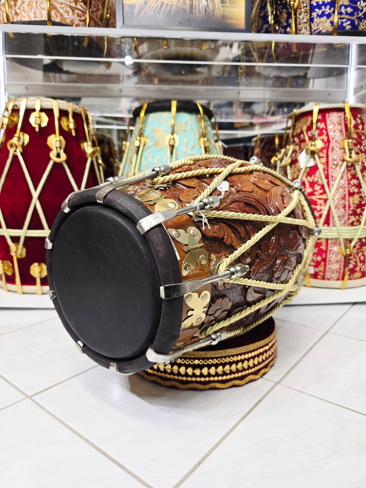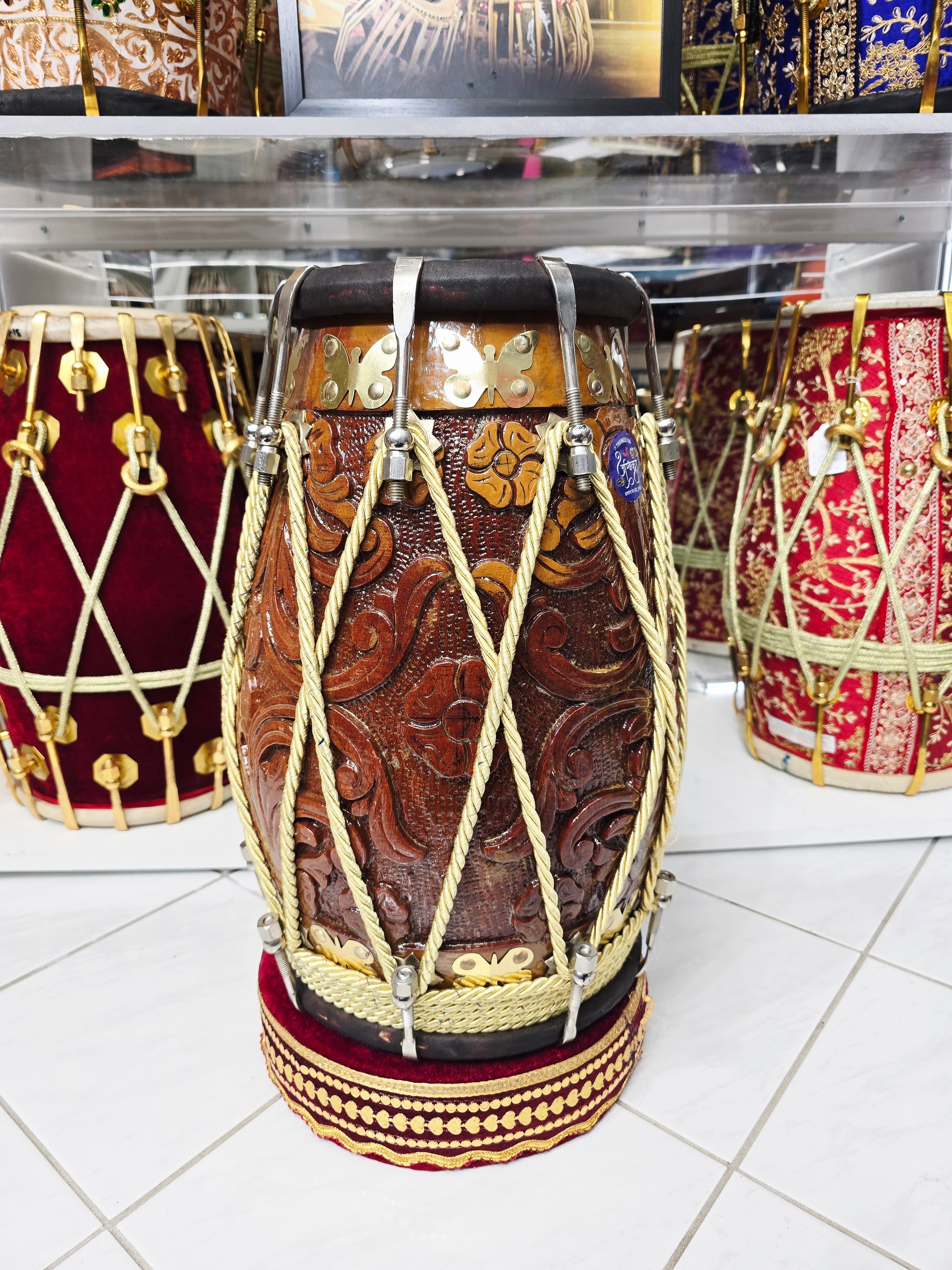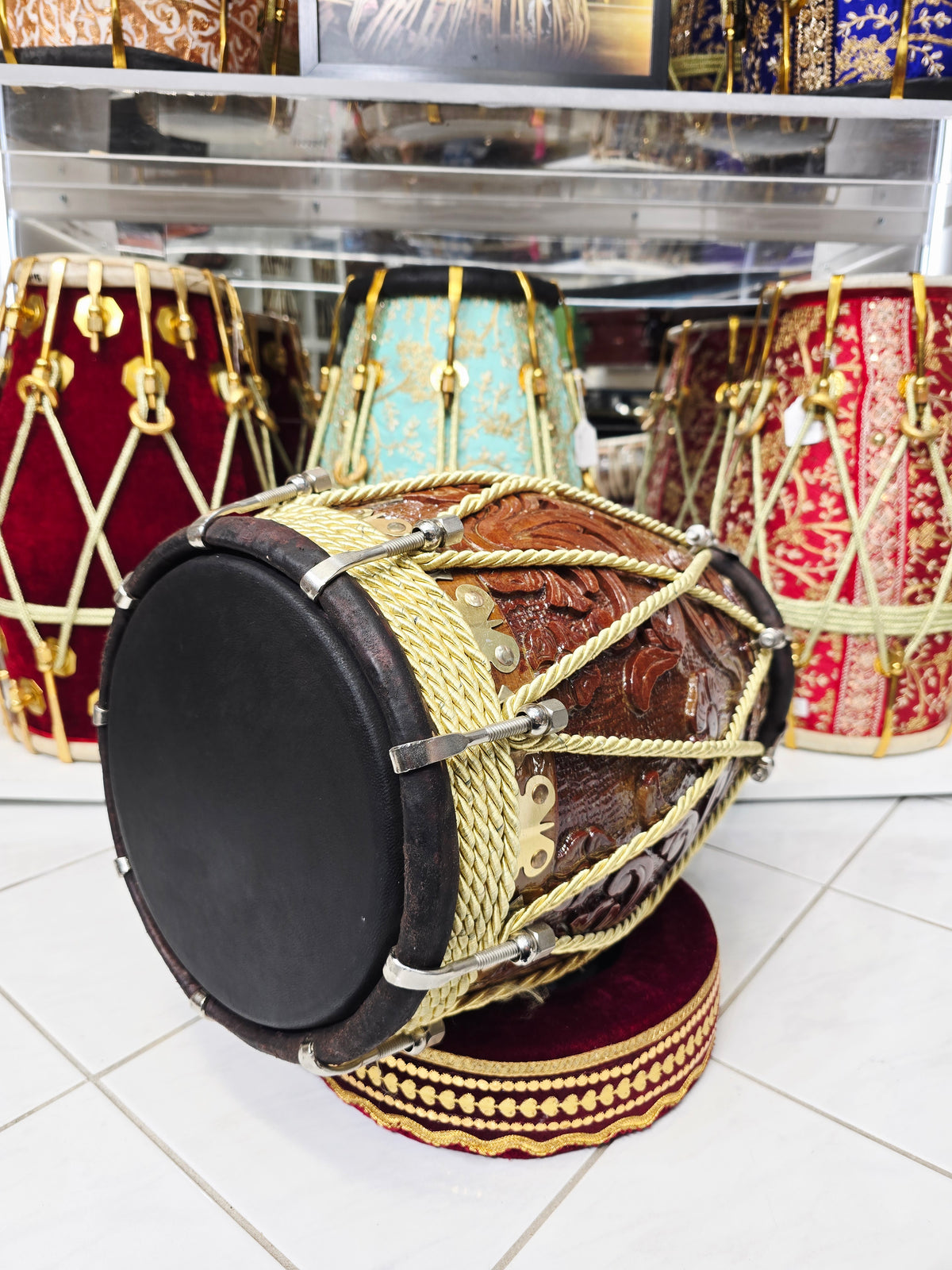 Maa Ambika VeenaFlame Dholak | 18.4 lbs Bijessar Wood, Encarved *Very Minor Cosmetic Blemishes
