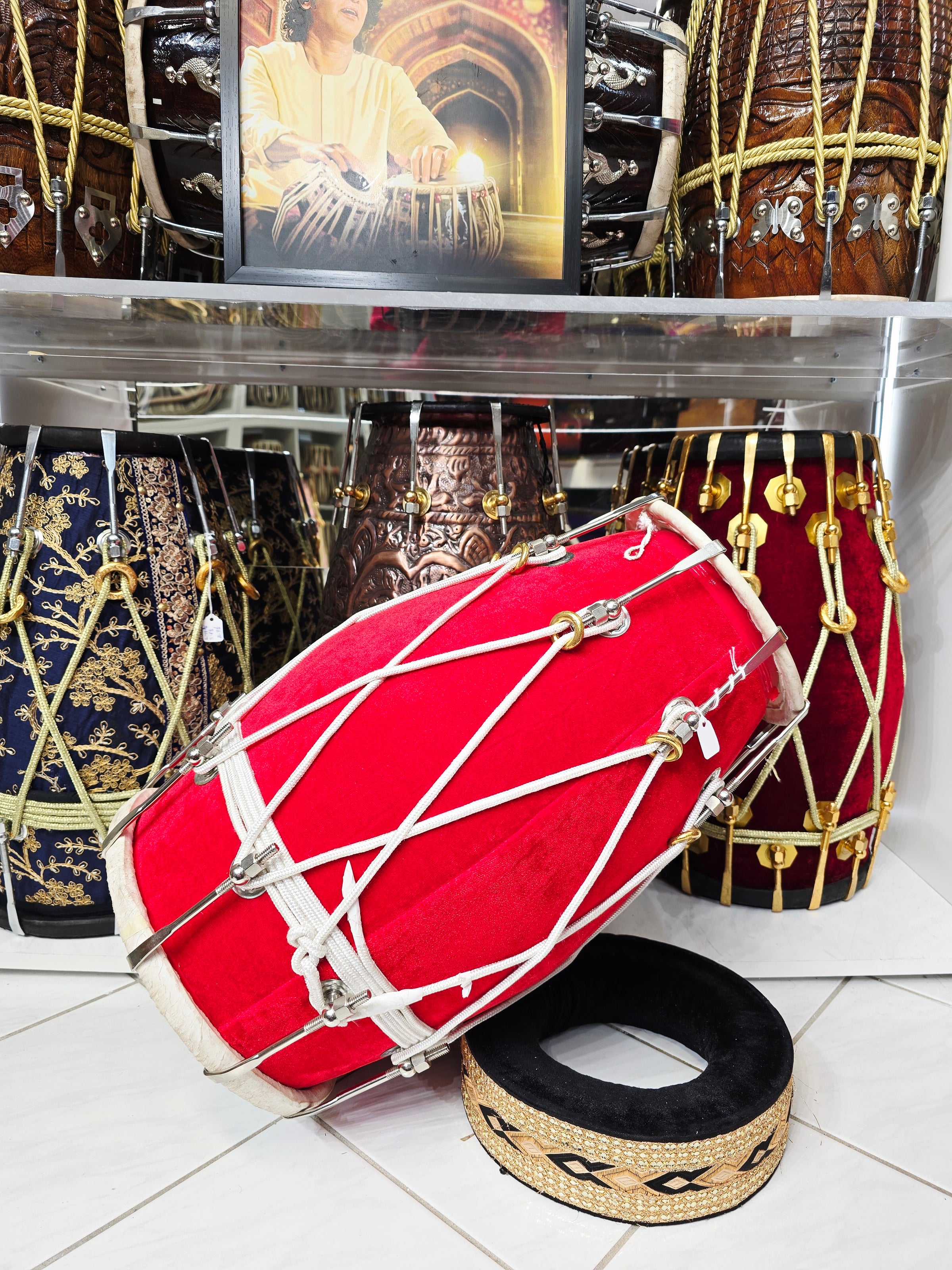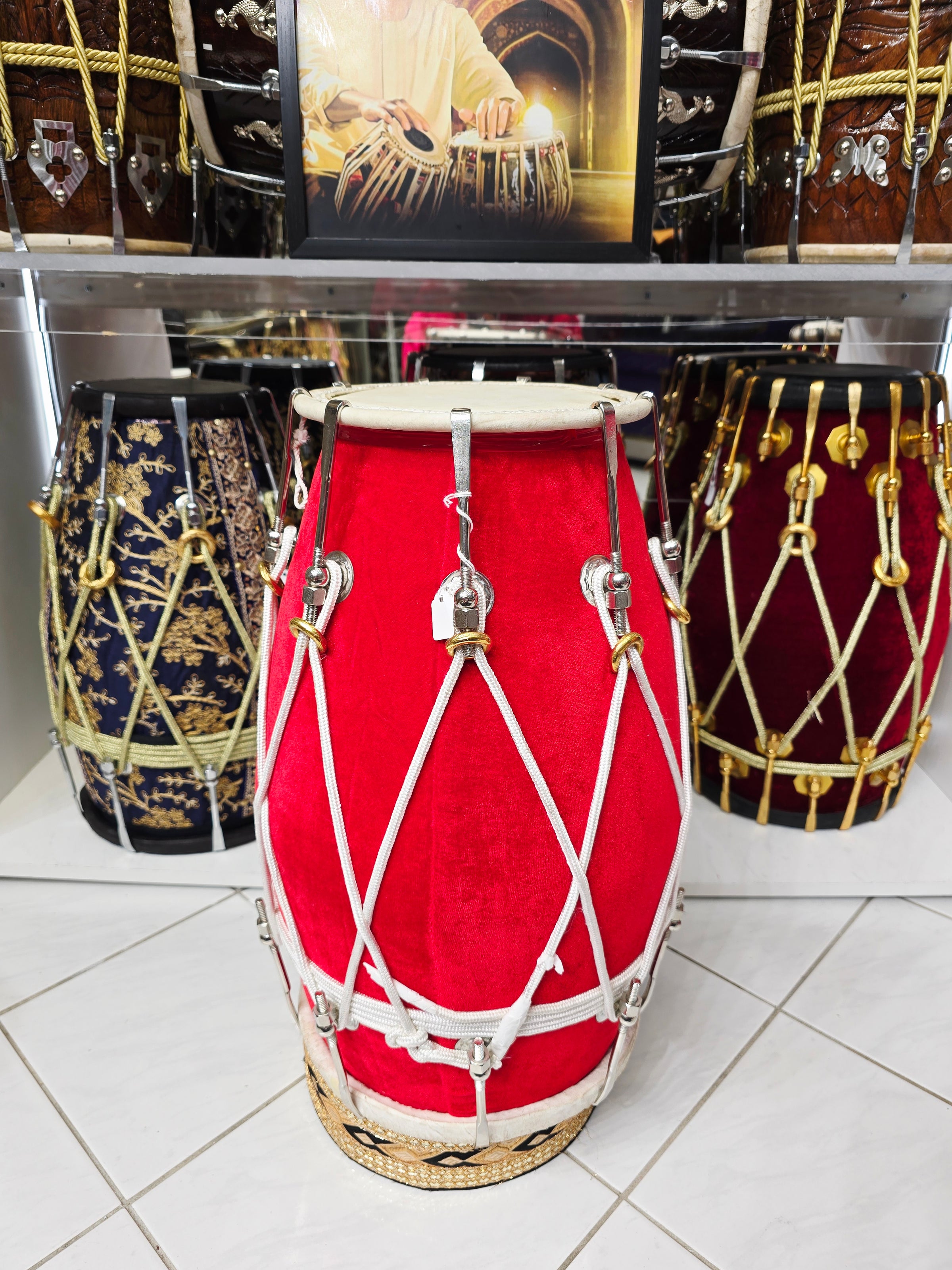 Scarlet Axis — 19.25" Mango Wood Red Velvet Dholak