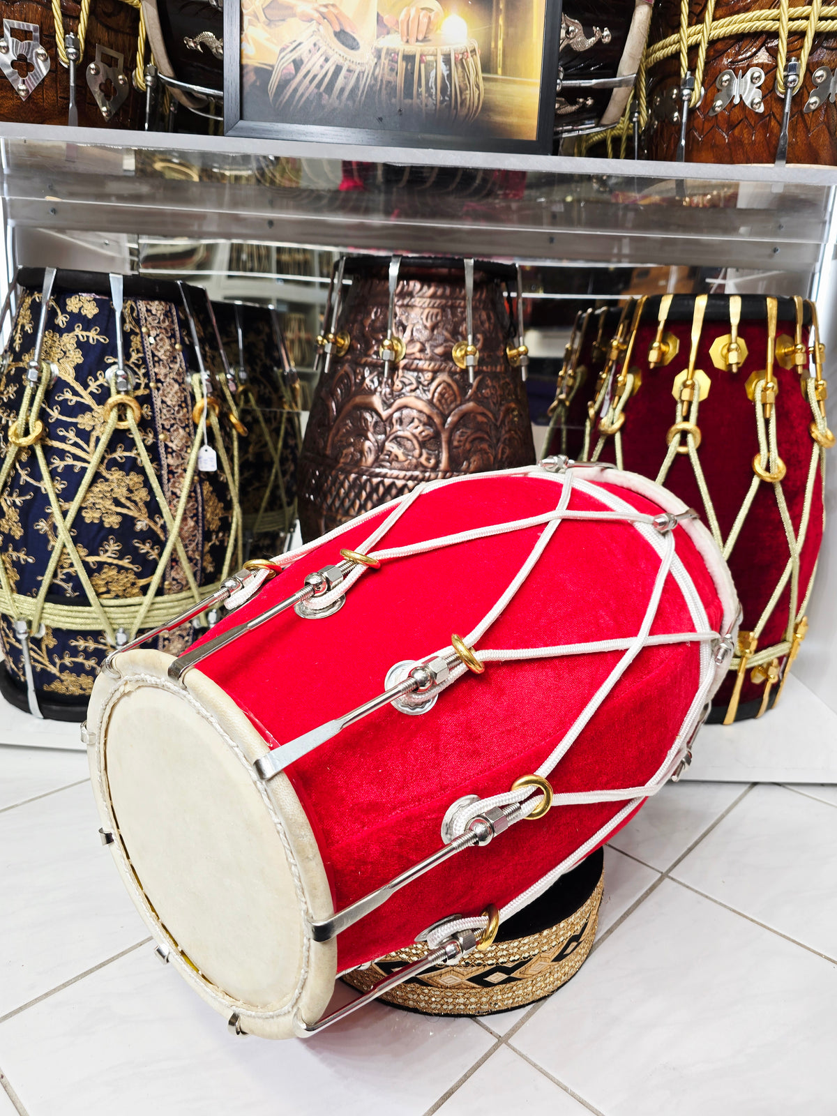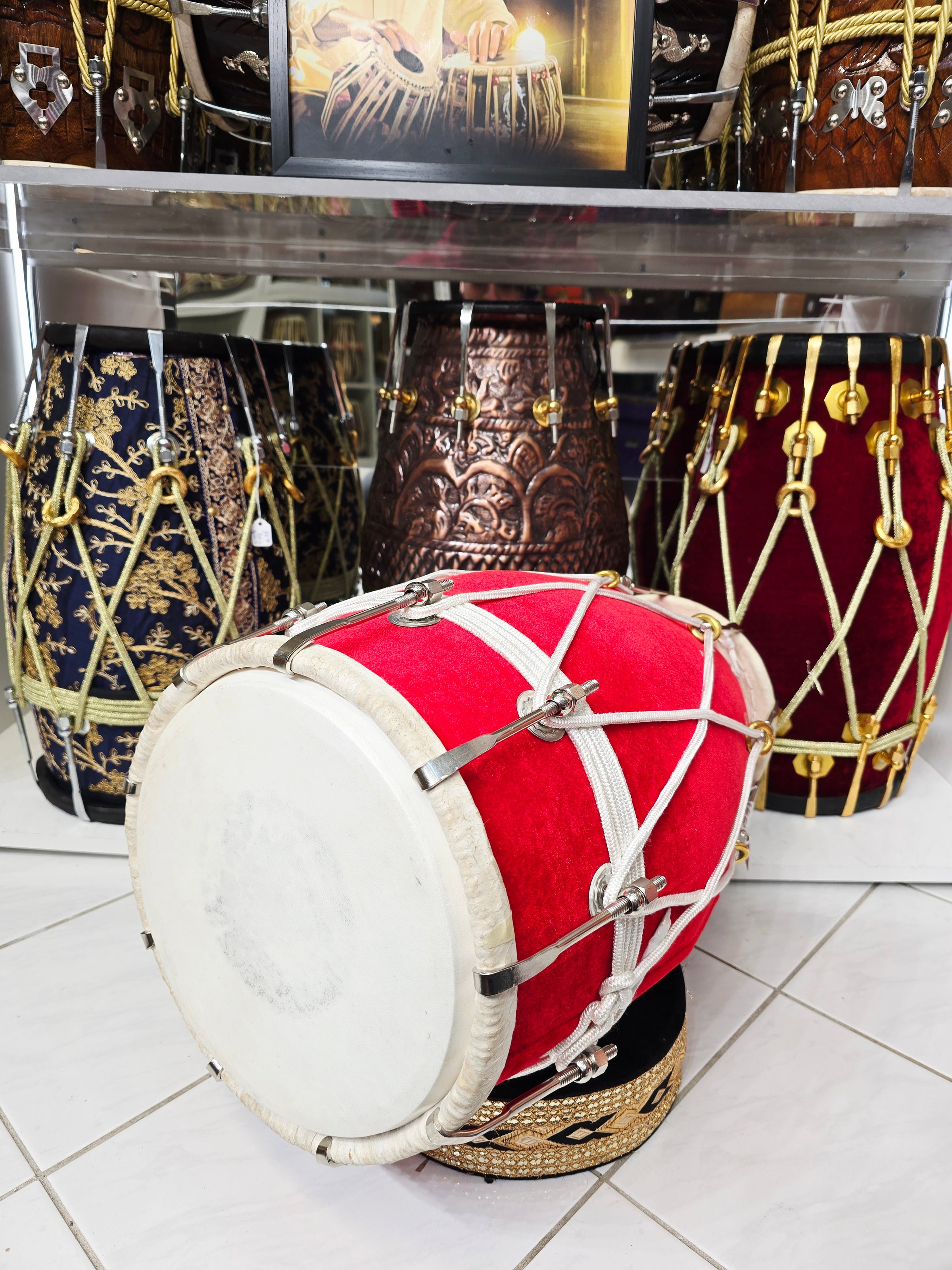 Mango wood gives this dholak a naturally open, responsive character—quick attack, smooth decay, and an easy-playing feel that works well for long sessions. The velvet wrap adds a refined presence while keeping the instrument grounded and stage-ready, not fragile or overstyled.