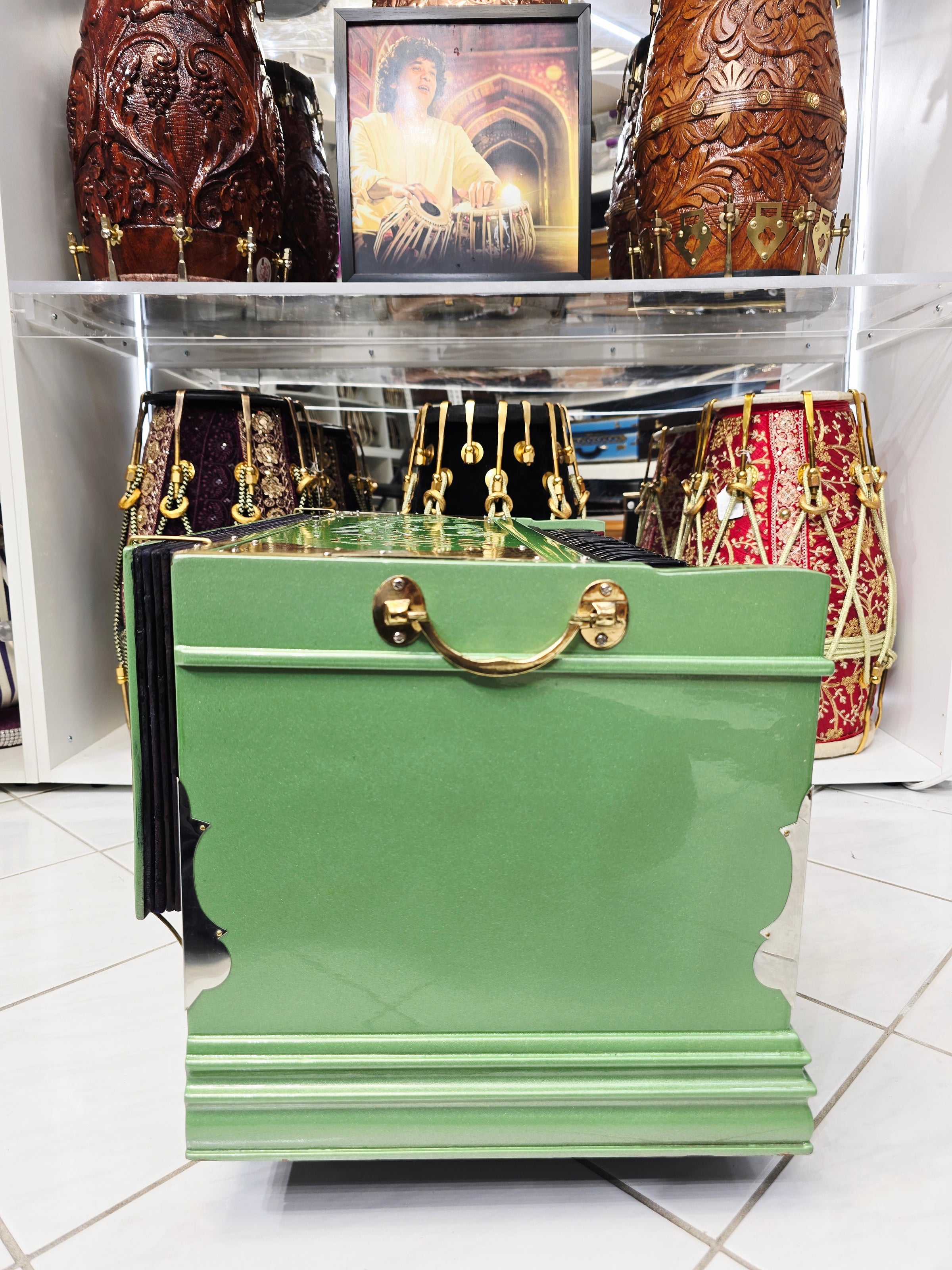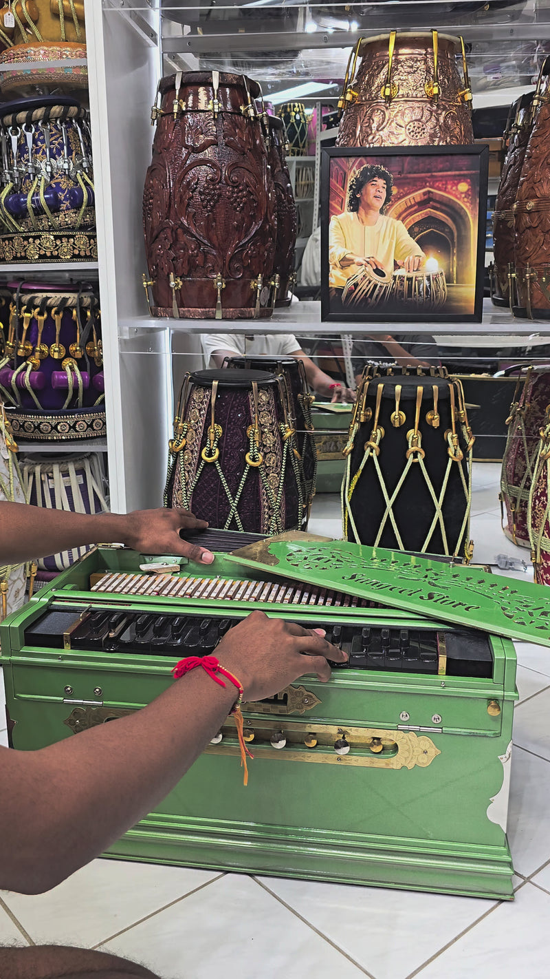 Emerald Raag | Sparkly Green 3-Reed BMF 9-Scale Changer Harmonium with Black Keys – Sangeet Store