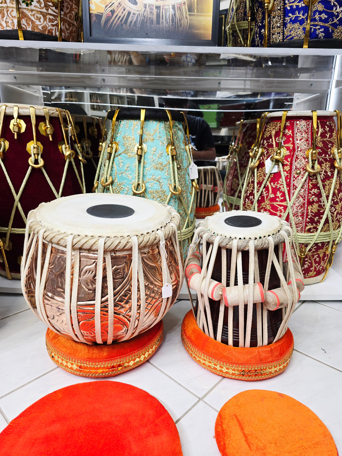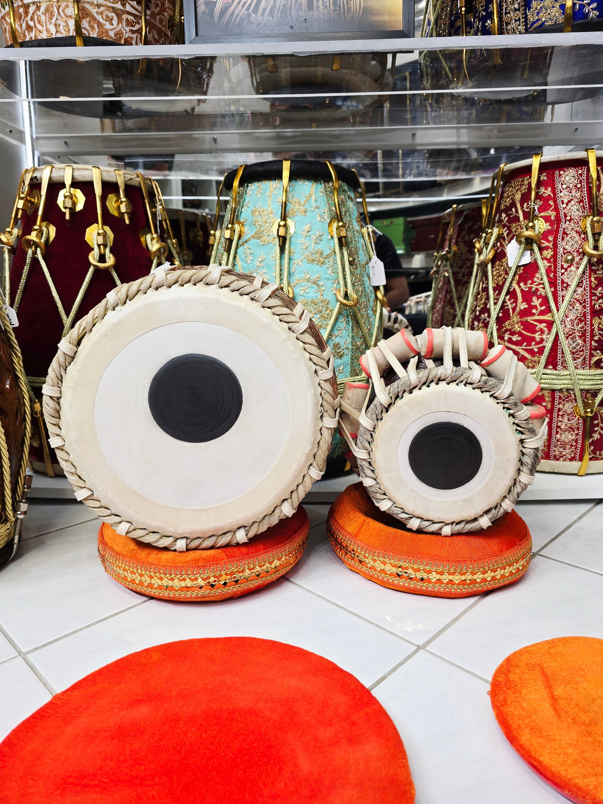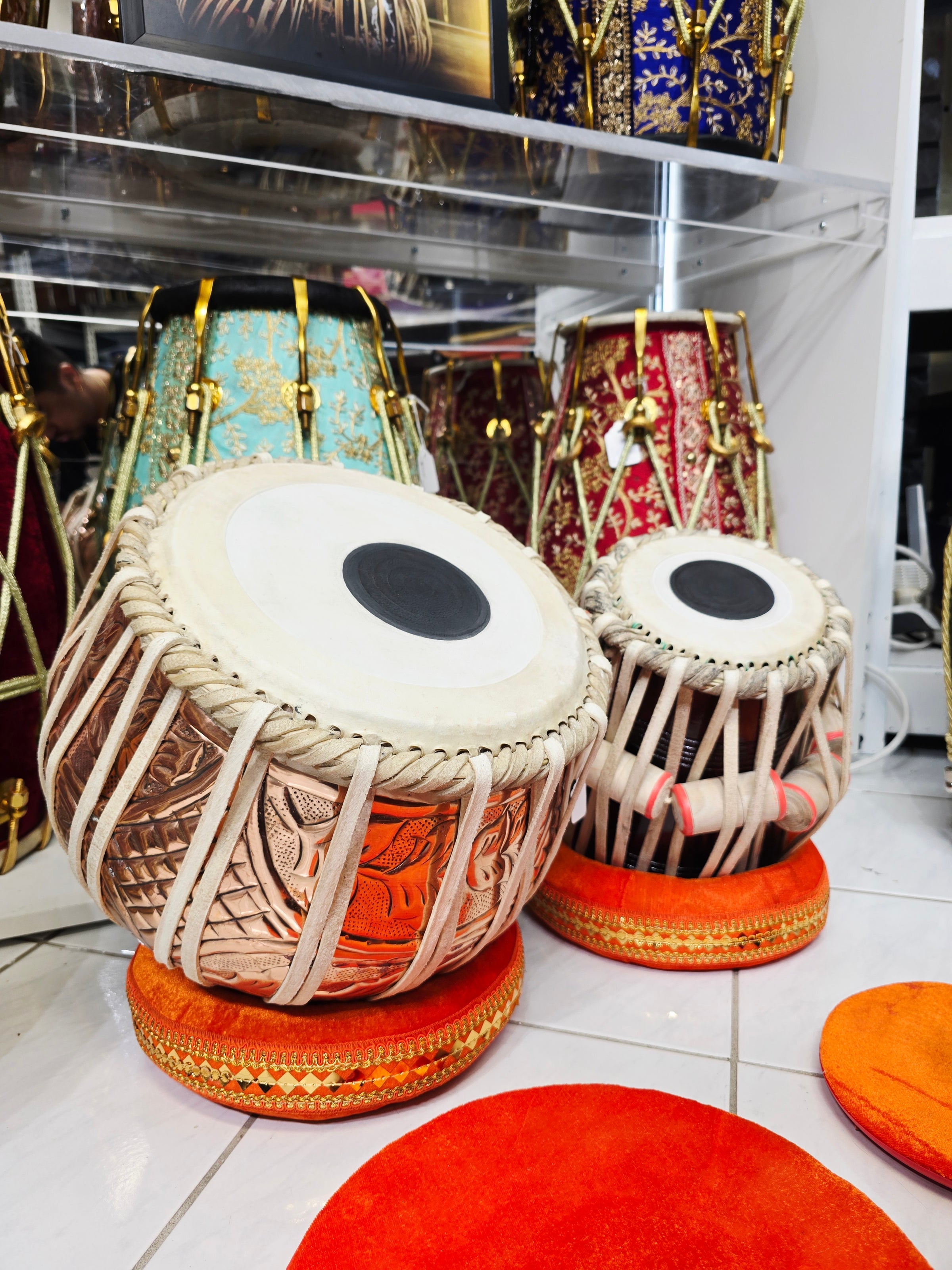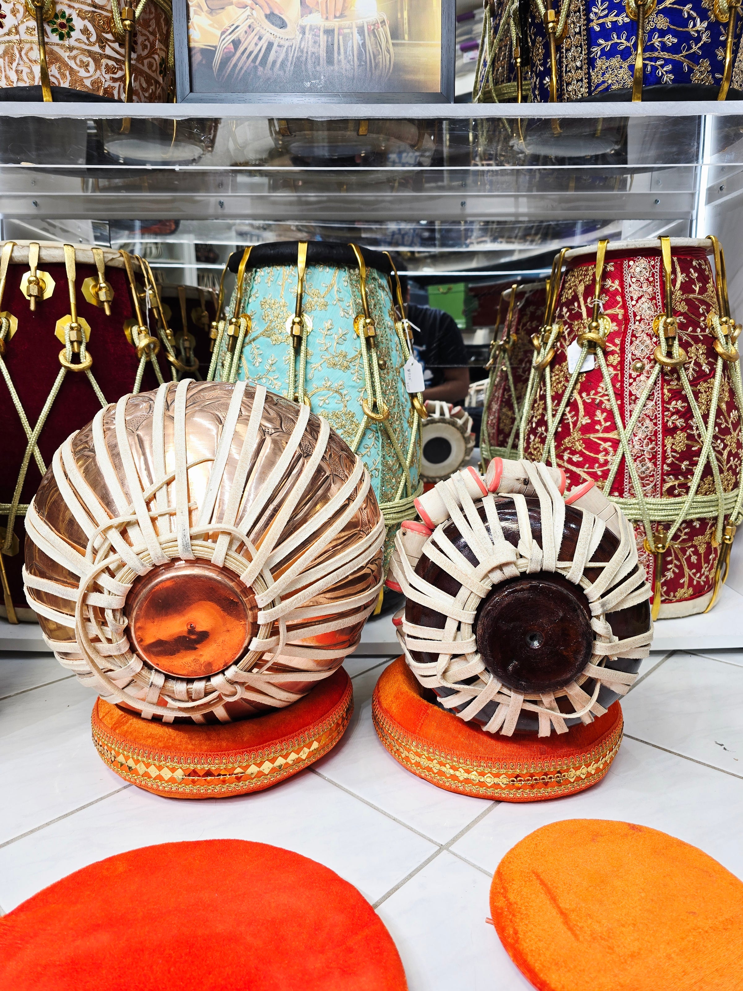 The Economy Tabla Sets Collection is designed to offer a high-quality tabla experience at an affordable price point. Crafted from a slightly lower grade of materials as our premium models, these tabla sets are produced in one of the factories that we partner with in India by talented, lesser-known tabla makers. The collection is perfect for students, tabla enthusiasts, or even advanced players willing to compromise slightly on perfection for greater affordability. While these sets may not offer the same consistency or flawless craftsmanship as our higher-end models, their solid materials and respectable craftsmanship place them in the C+ to B grade range of their respective categories. Each set is transparently displayed with its unique features, providing a great entry-level option for tabla players of all levels.