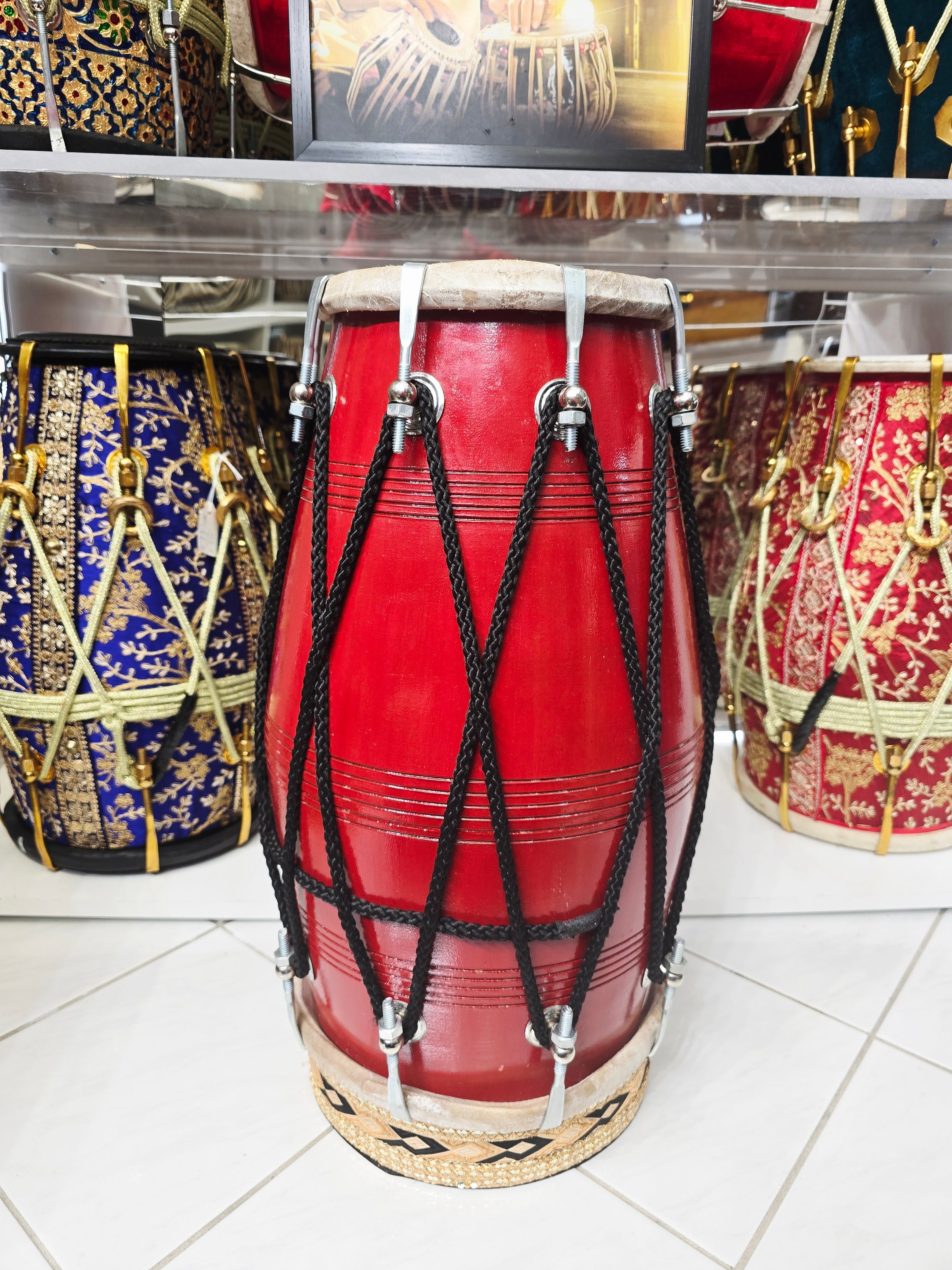 The most beautiful Dholaks in the World, carefully sourced by the Sangeet Store. Each of these Premium Dholaks are specially crafted to represent the most elegant designs & superior sound quality available anywhere in the World.