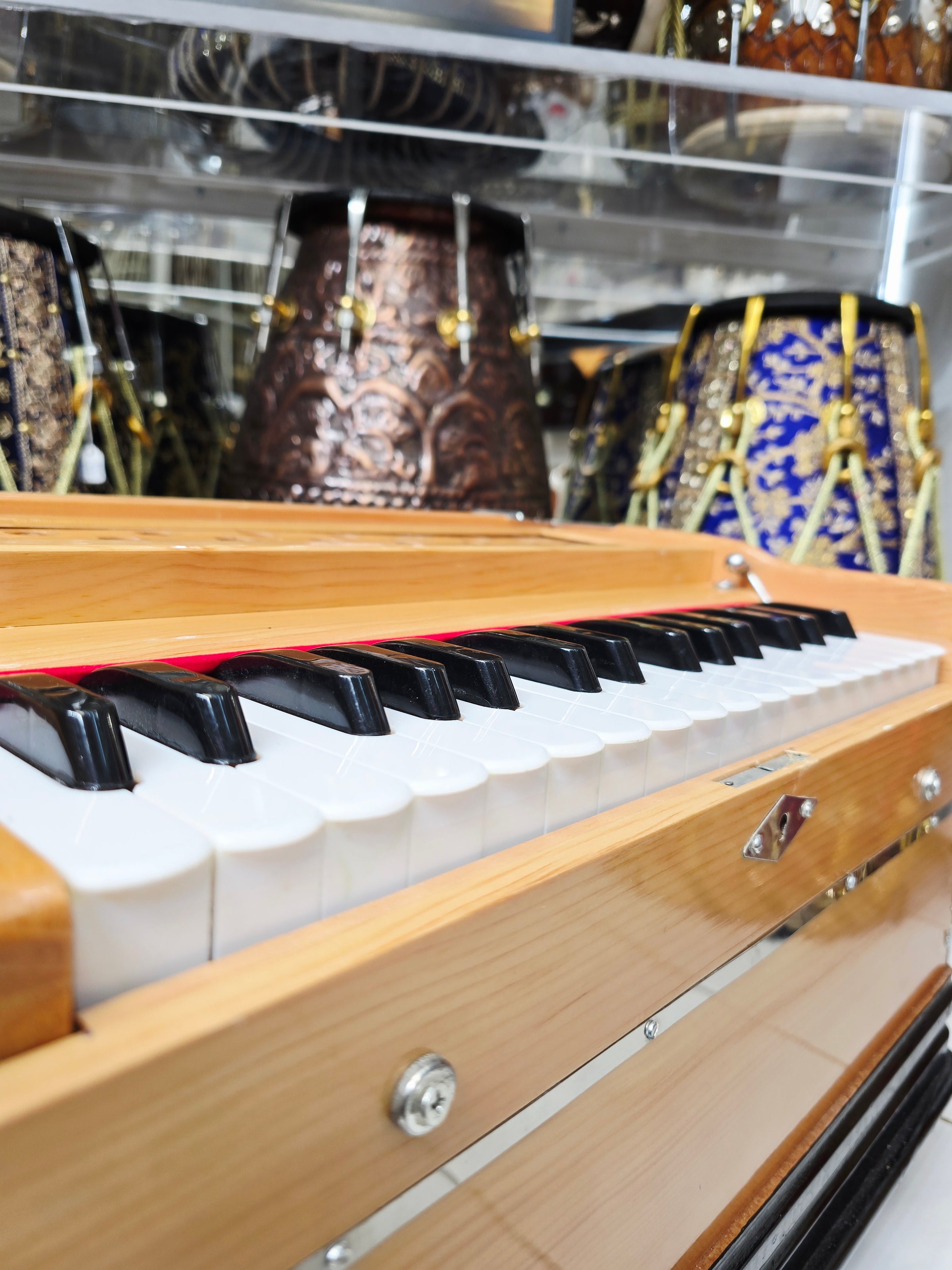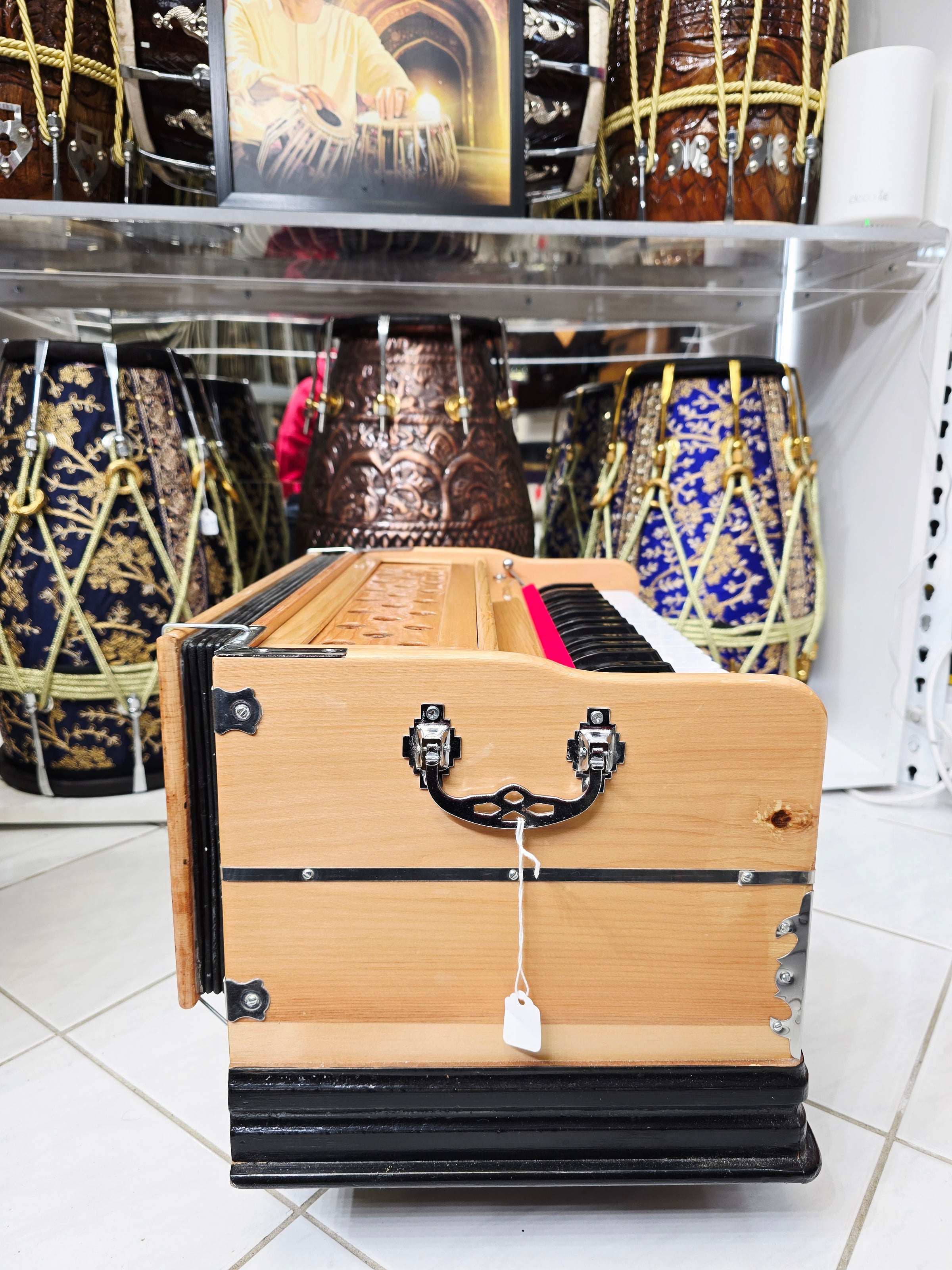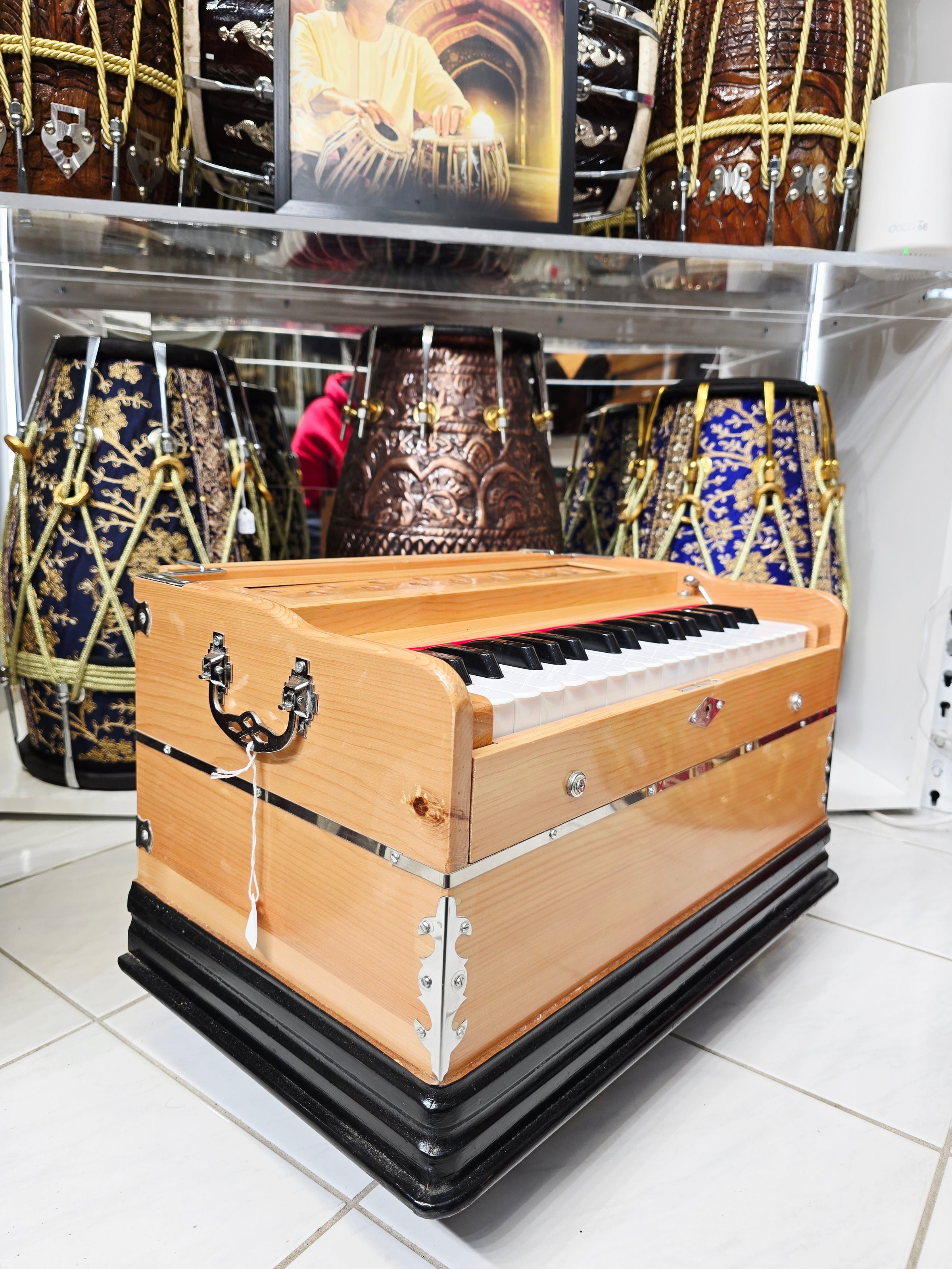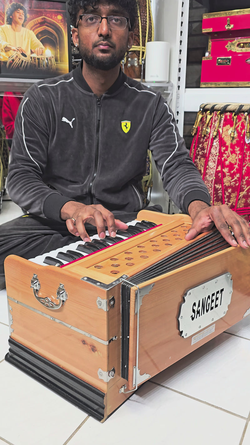 The finest crafted harmoniums available in the world. We have worked tirelessly to narrow down the most skilled, creative, responsible, and trustworthy makers to source our Premium Harmoniums. Each Harmonium is quality checked, tuned, maintained and tested to guarantee optimal performance, response & durability. We are proud to present to you, Sangeet Store's collection of World Class Premium Harmoniums.