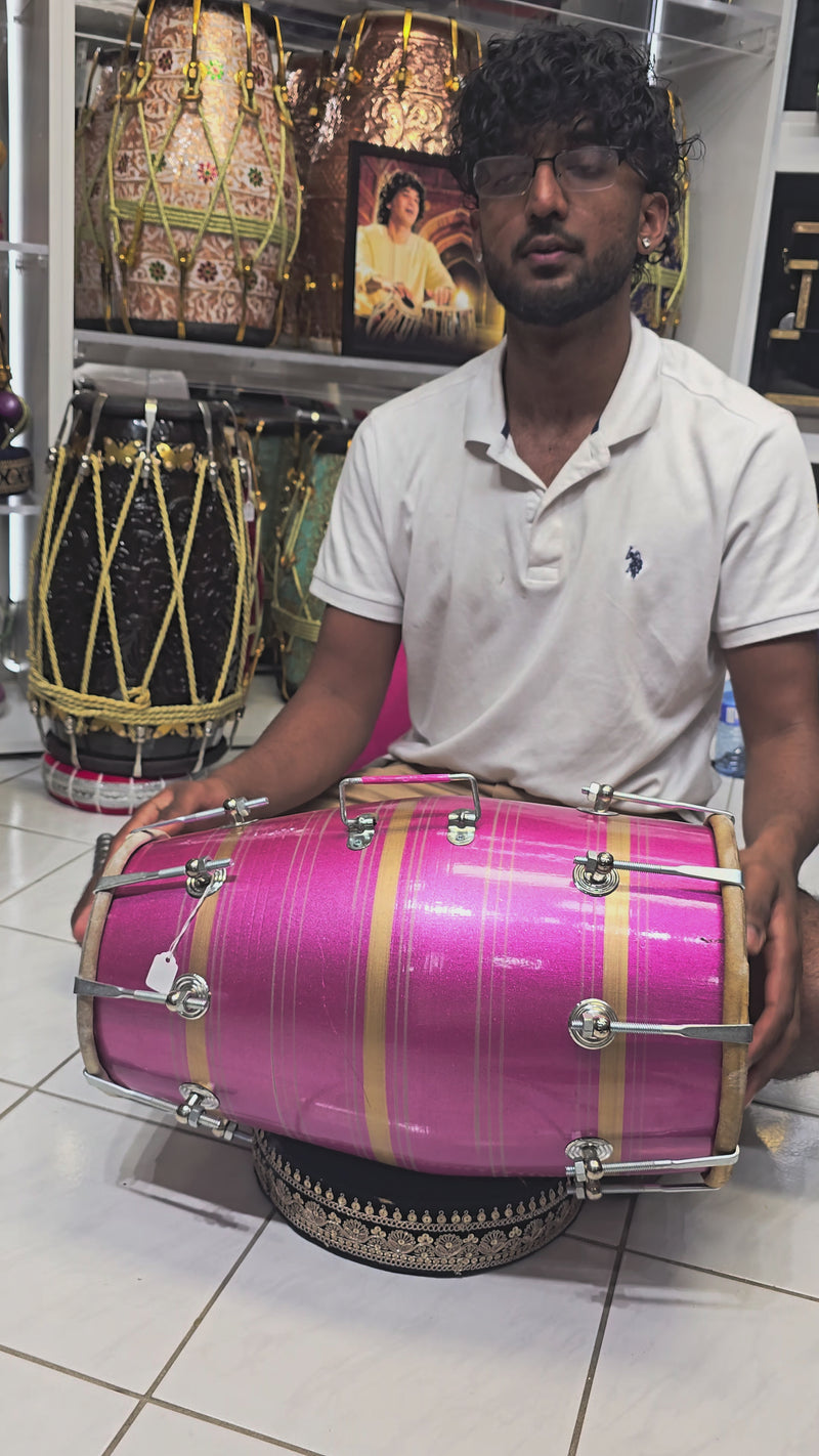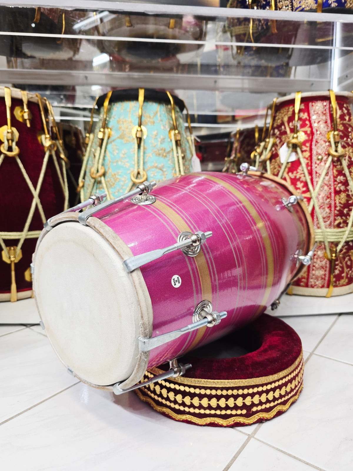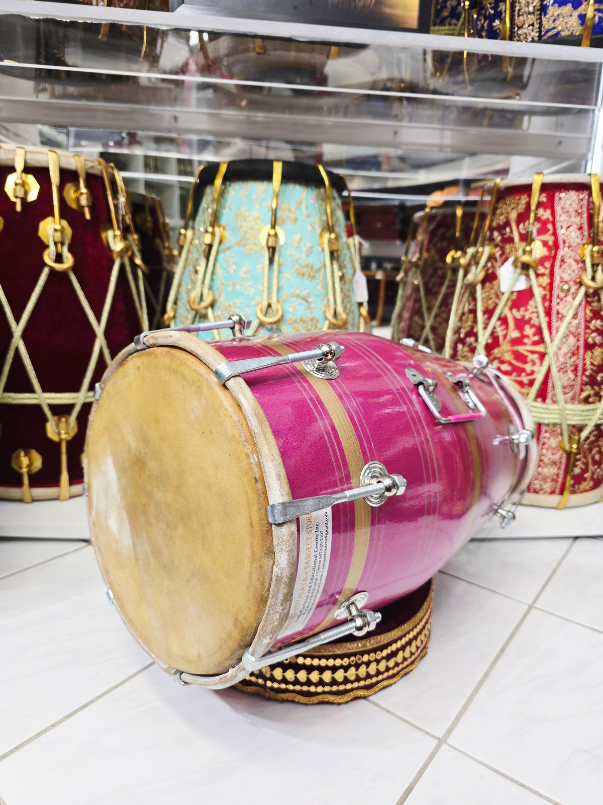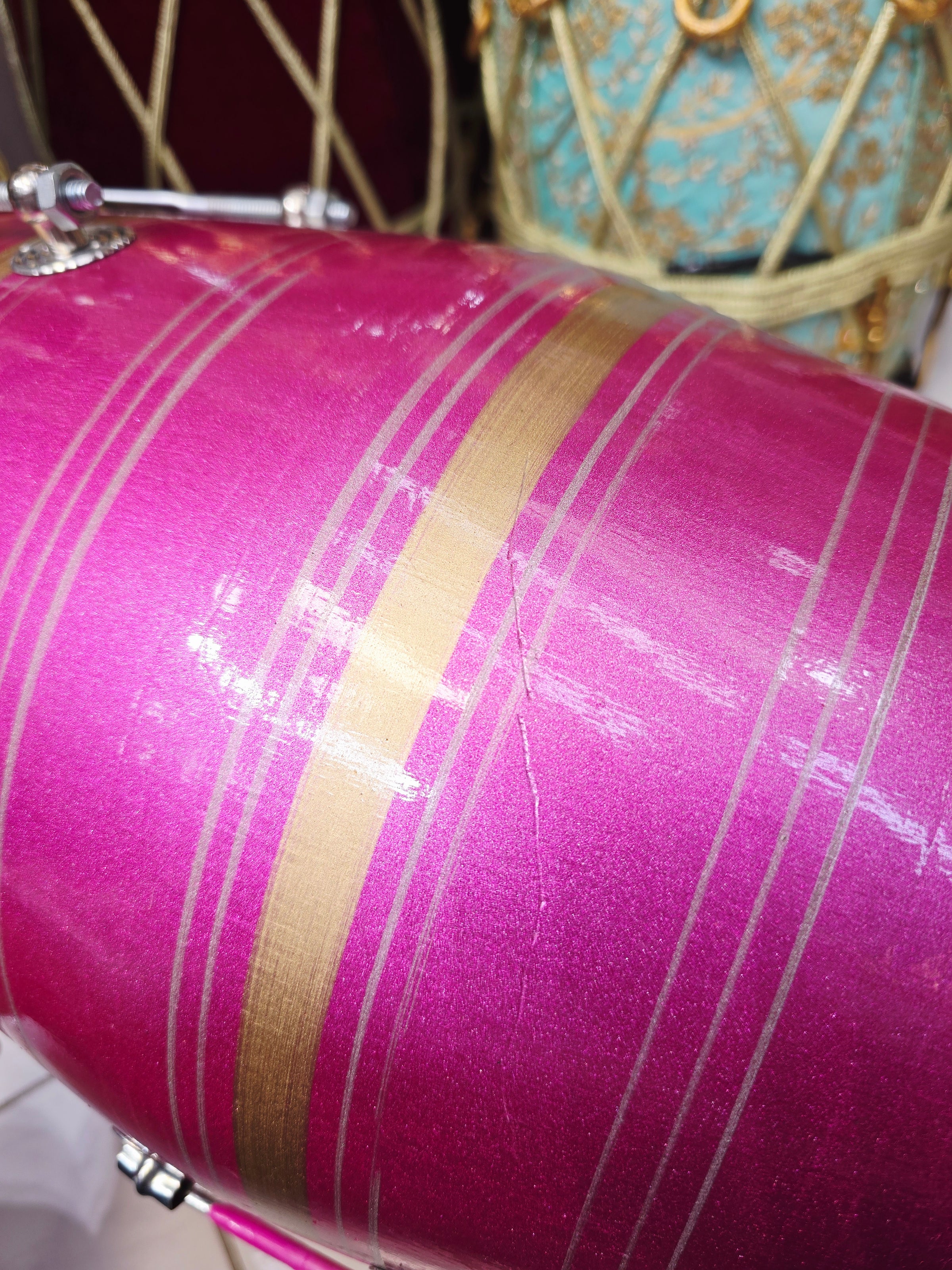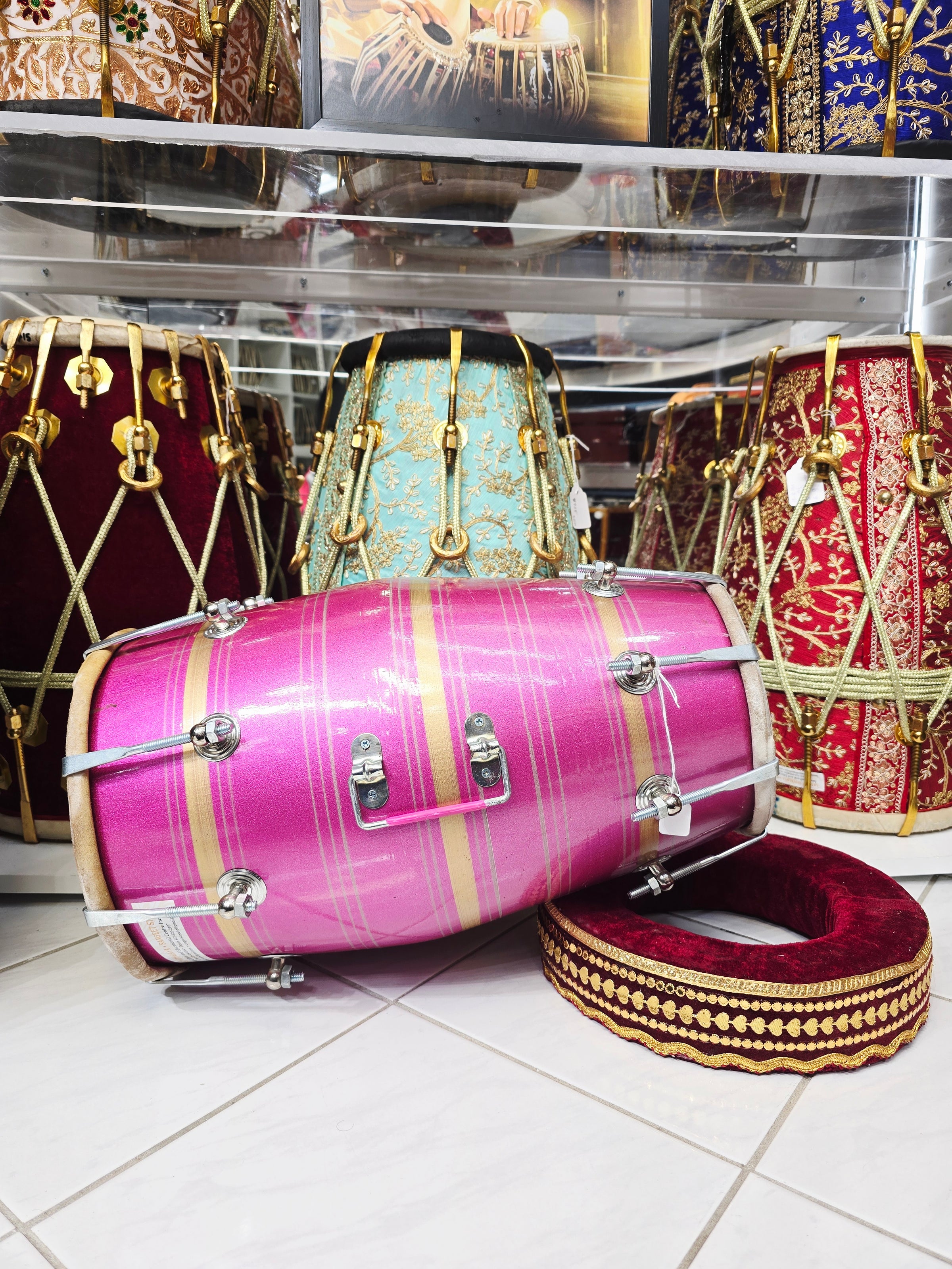 Blush Taal | Pink Painted Red Sheesham Student Dholak with Chrome Bolts & Handle – Cosmetic Defects (Minor External Crack) *Exceptional Sound