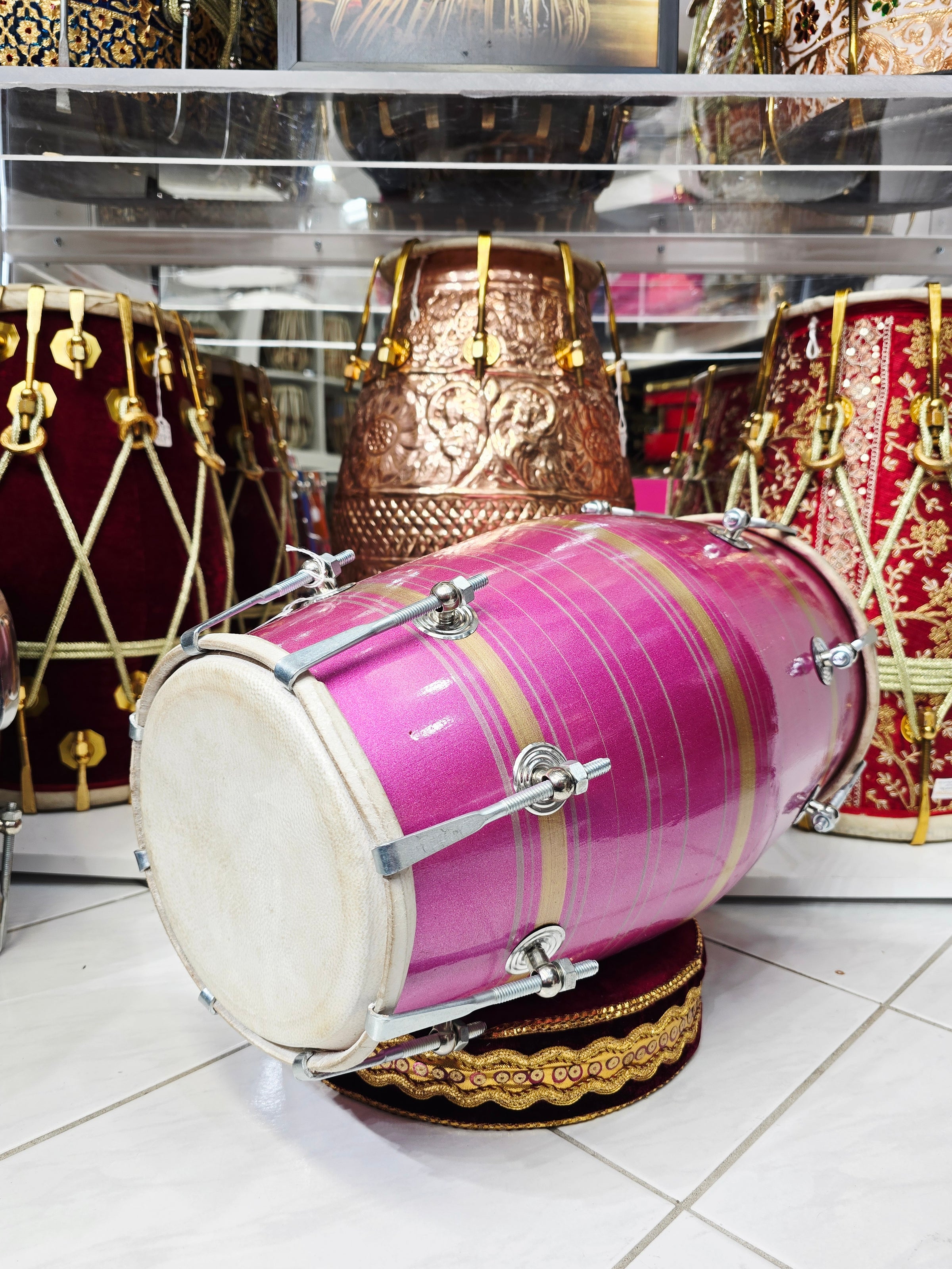 Rose Rhythm: Pink Painted Red Sheesham Student Quality Dholak with Chrome Bolts and Handle