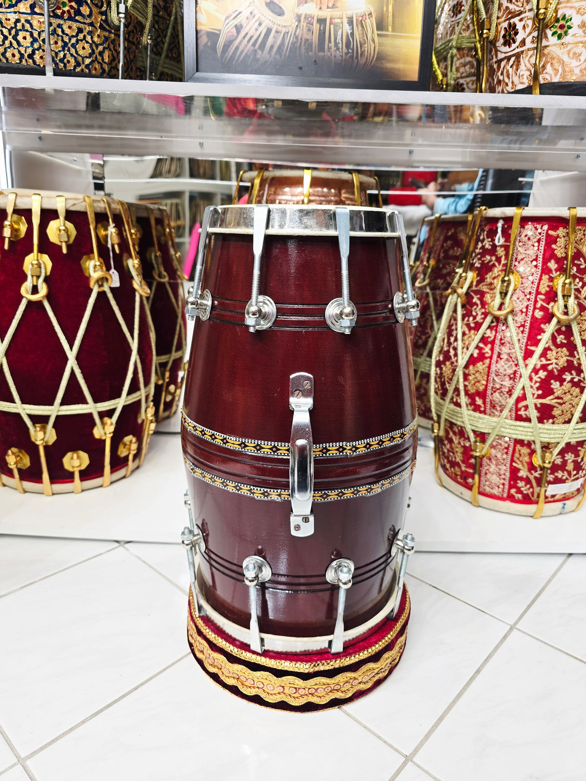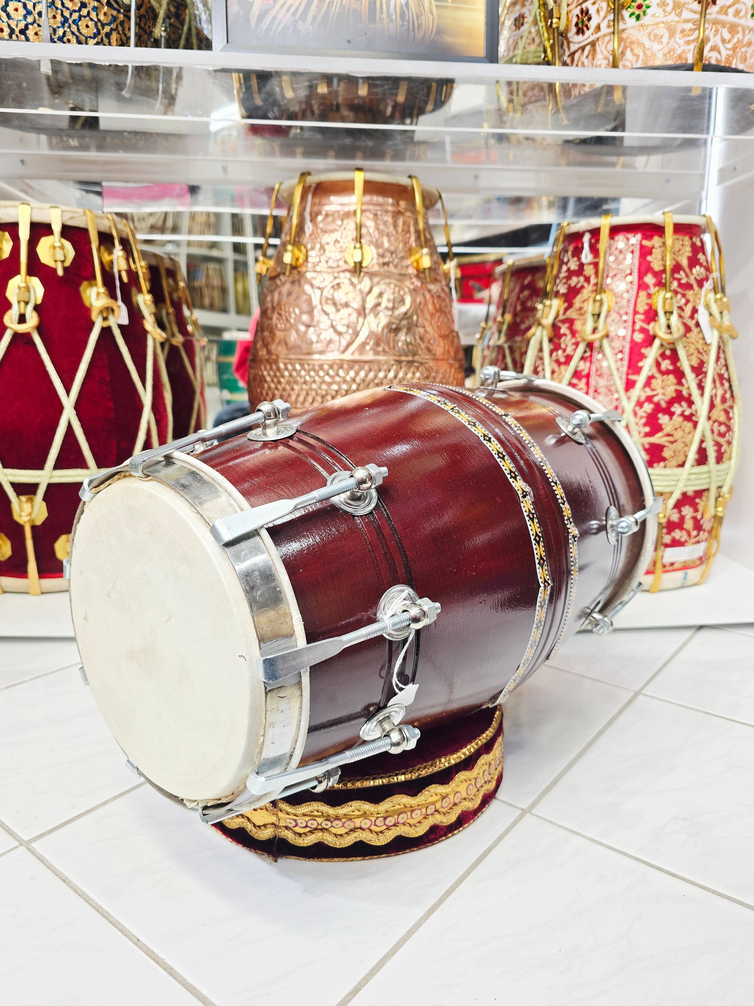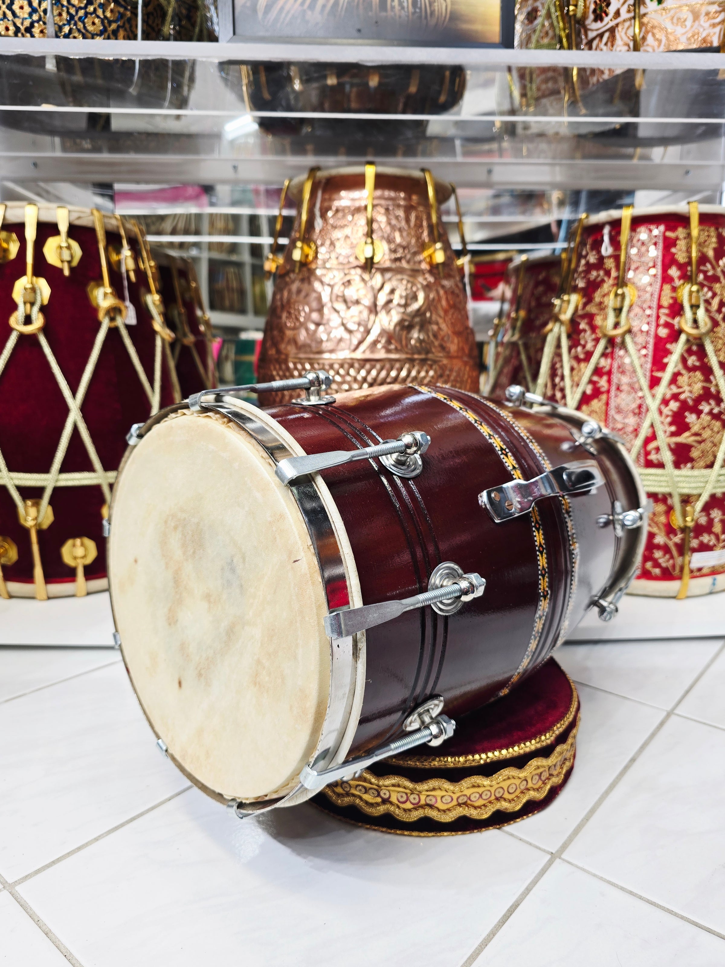Rustic Reinforced Dholak – Red Sheesham, Traditional Brown Finish with Metal Rim & Handle (Minor Defects)