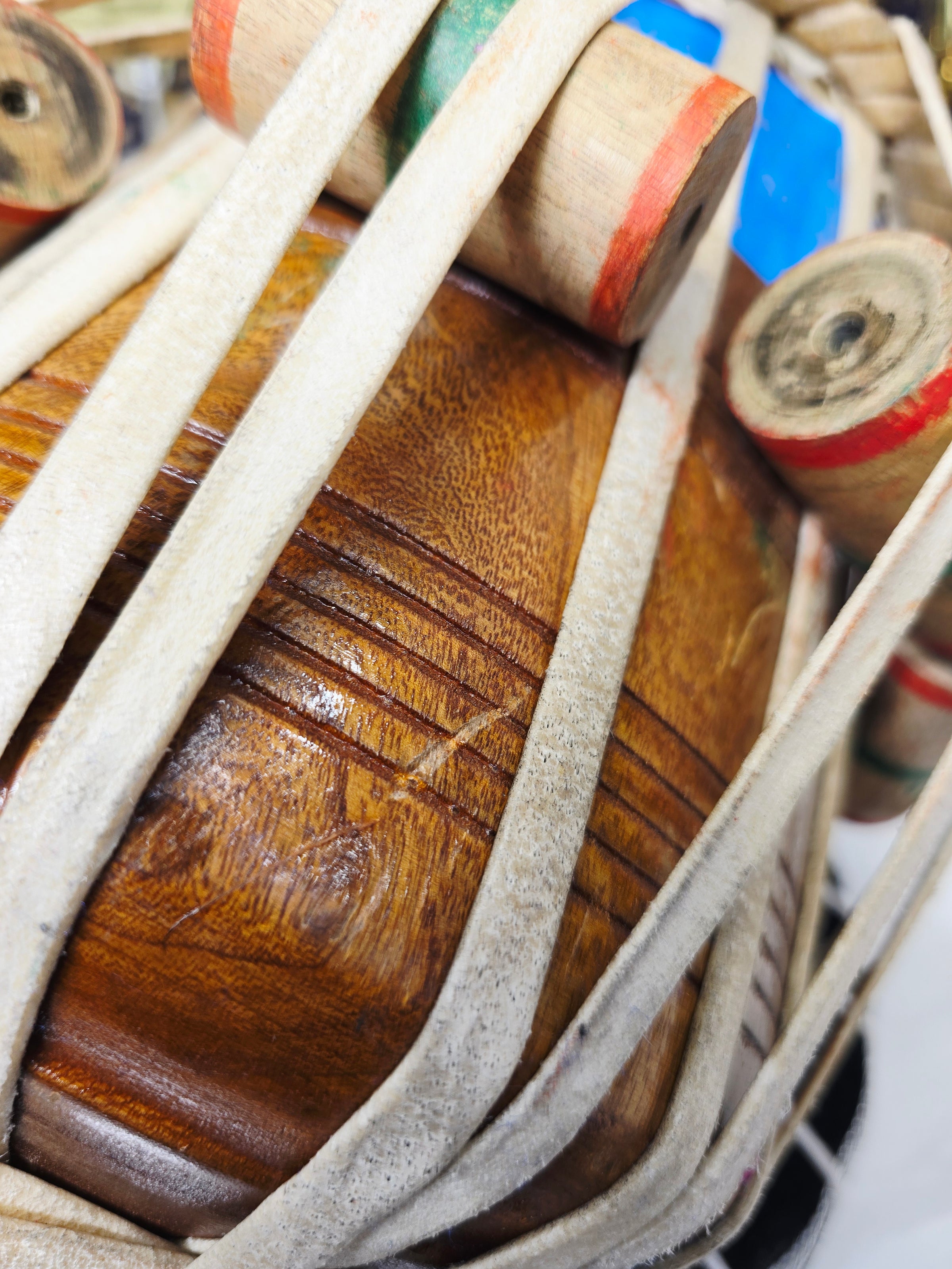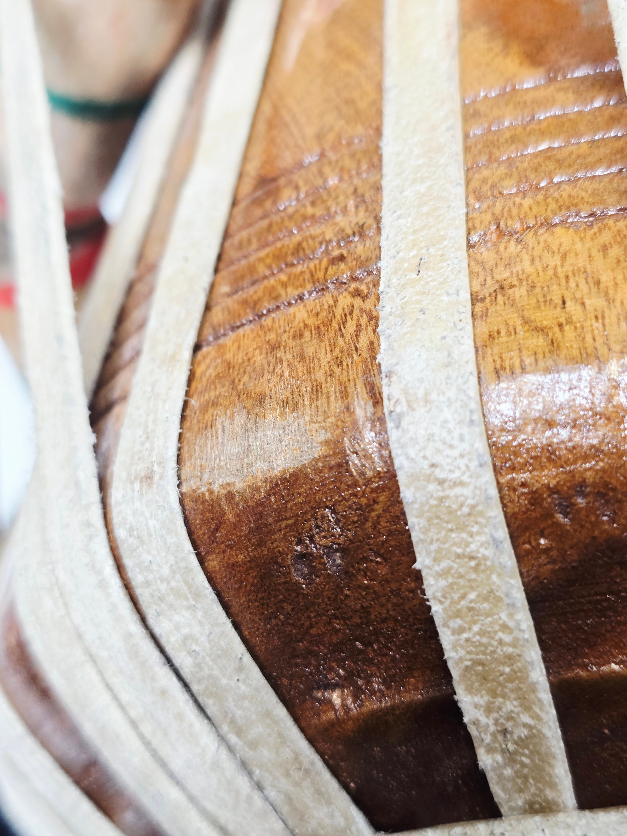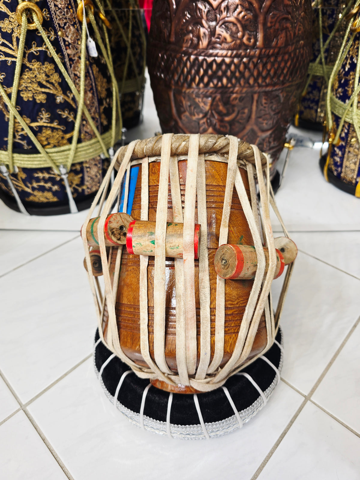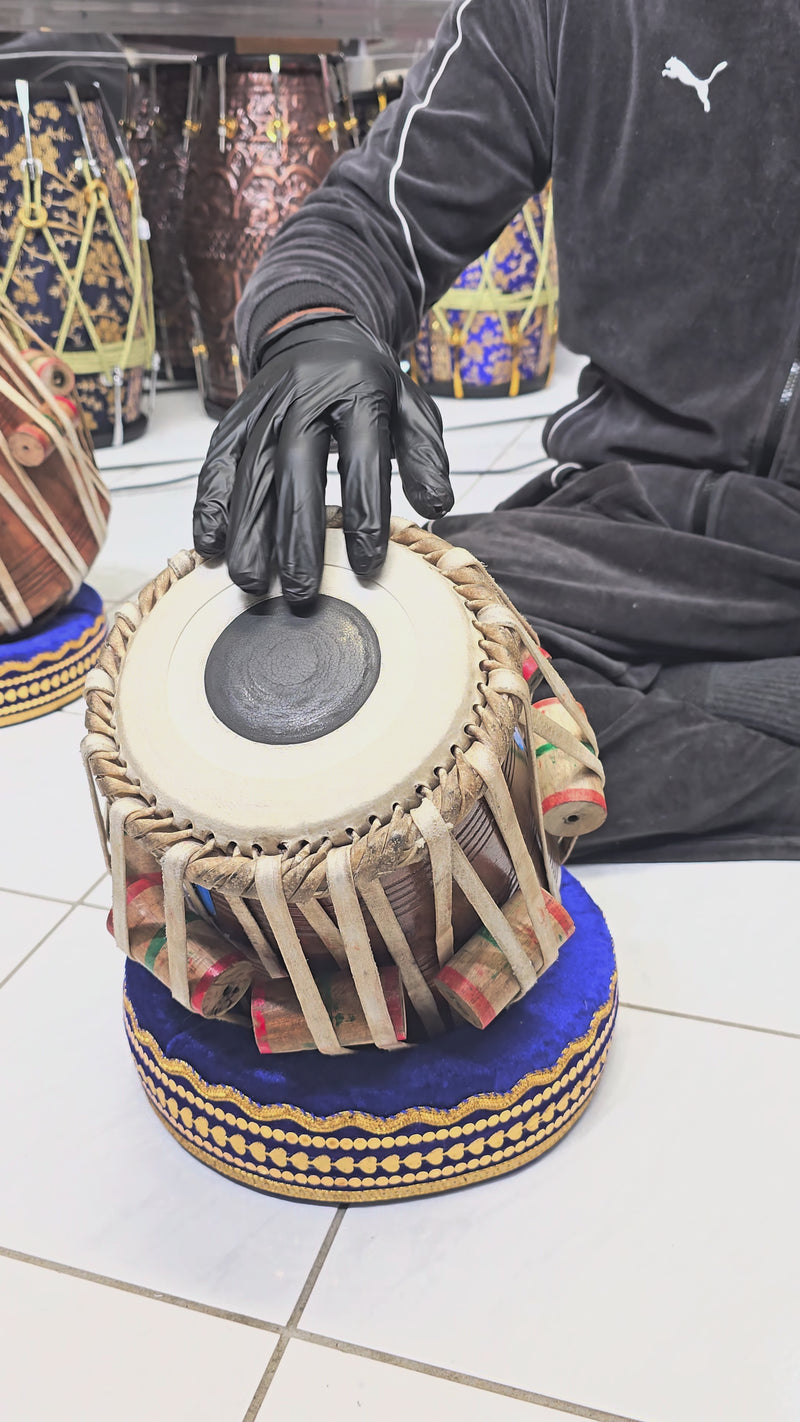 This 5.5″ D♯ dayan delivers a compact, responsive feel with clear articulation and steady tuning stability. Handcrafted by Bharat Kakade, it maintains balanced weight and a controlled playing surface suited for regular practice and repertoire work. A minor buzzing is present under certain strokes, but it does not dominate the overall response or affect structural integrity. Offered accordingly, this dayan remains a solid, usable piece with characteristic handmade tone and reliable build quality.