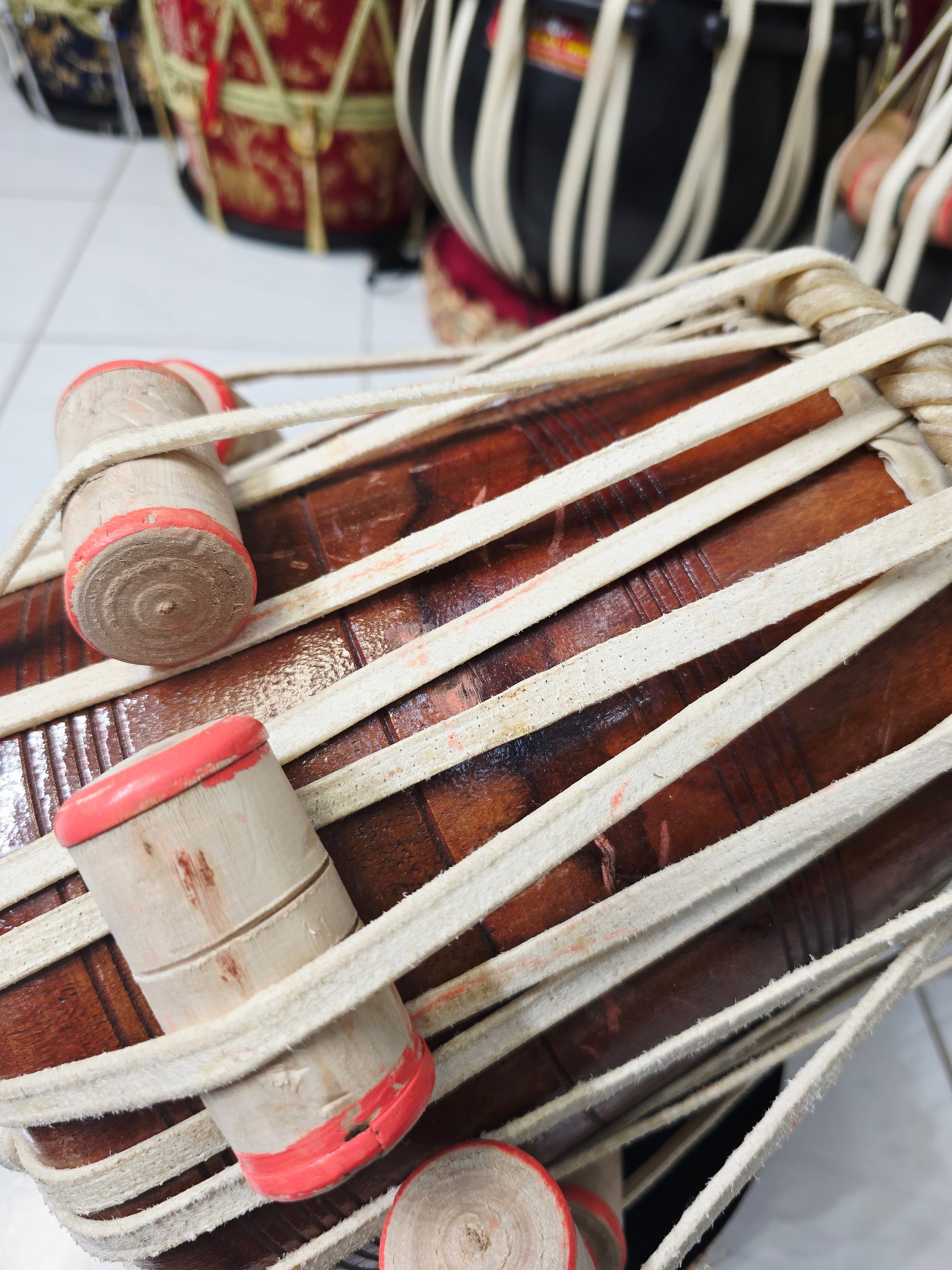 The NaadSutra™ Mohd. Sharif 6″ B / C dayan is crafted from solid red sheesham, offering a tight, controlled response with clear articulation in the higher pitch range. Built to professional standards, it delivers focused bol separation, stable tuning, and a responsive feel suitable for classical accompaniment and advanced riyaaz. A slight buzzing overtone may be present on certain strokes but does not affect overall playability, tuning stability, or structural integrity. Musically sound and performance-capable, this dayan is ideal for players who value transparency while still seeking a reliable Mohd. Sharif pro build.