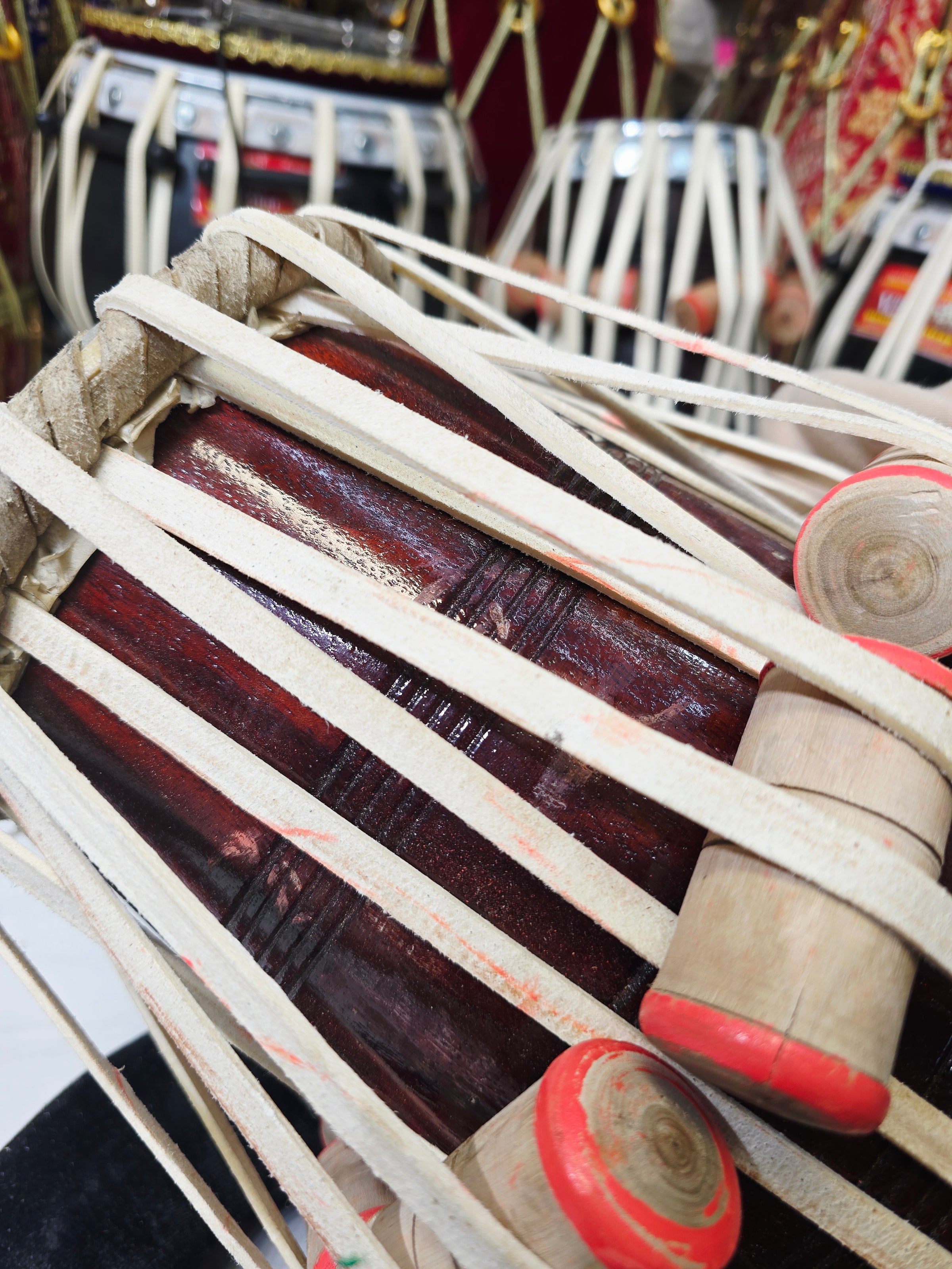 The Saavar Naad™ Iqbal Pro Dayan is a 5.75″ C / C♯ red sheesham drum built for professional use, delivering clear articulation, focused sustain, and stable tuning suitable for performance and advanced riyaaz. The sheesham shell offers a responsive, balanced feel with clean bol separation and controlled resonance. This dayan has very minor cosmetic blemishes, purely visual, and a barely noticeable buzzing overtone that is subtle and does not interfere with overall playability or tuning stability. Musically intact and performance-capable, it is best suited for players who prioritize sound quality while valuing transparent condition disclosure.