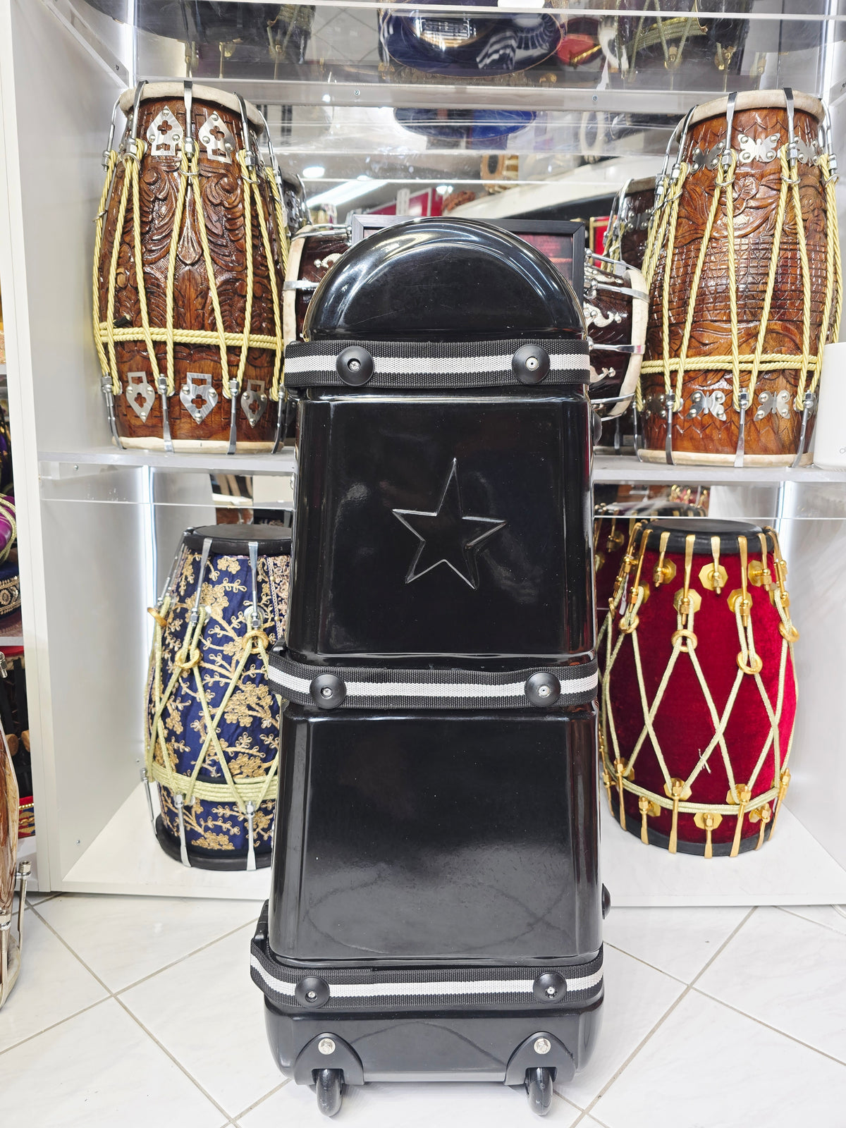 You can view & confirm your Tabla Case before shipping or purchasing virtually; https://sangeetstore.setmore.com/devinramoutar