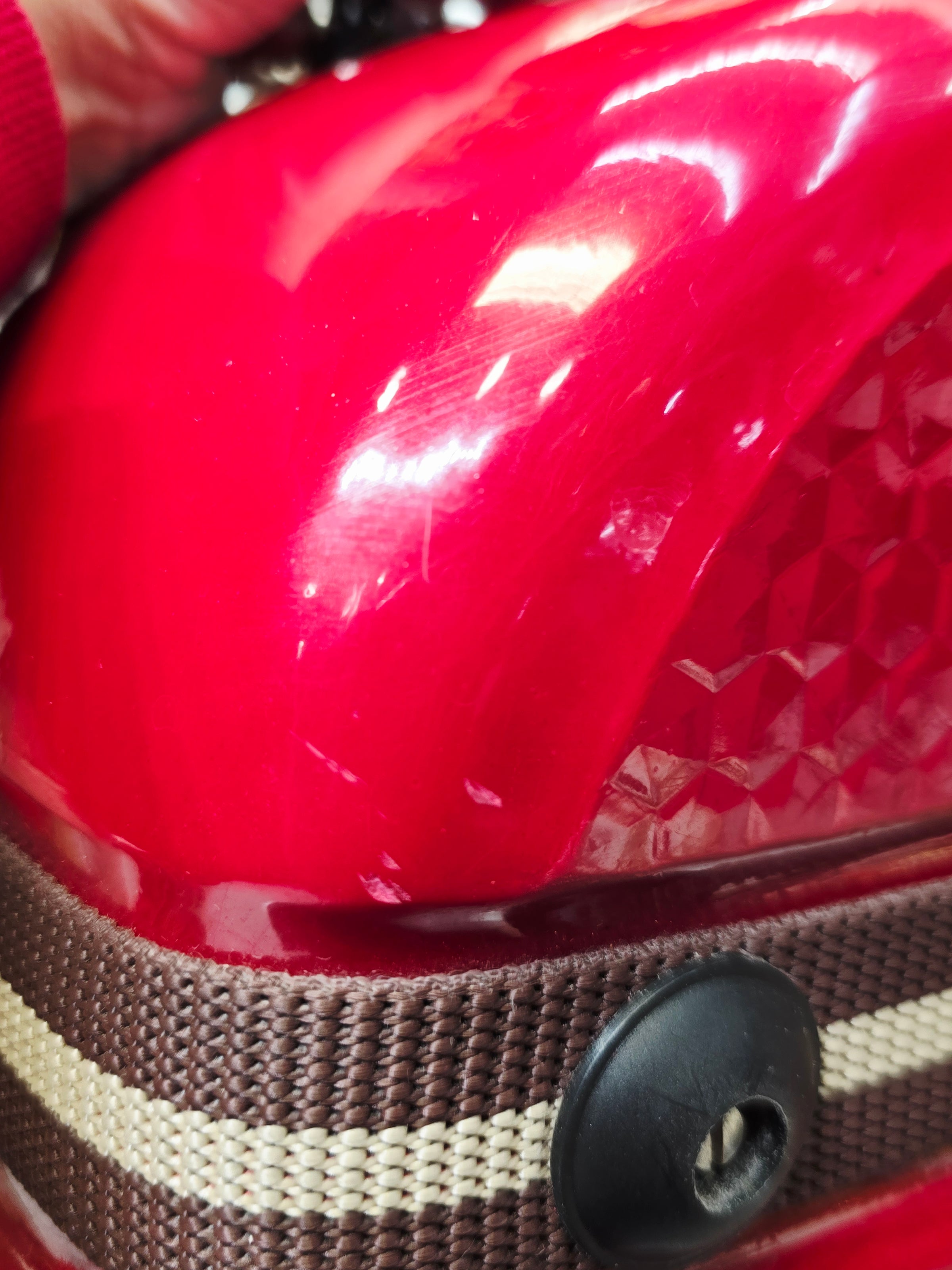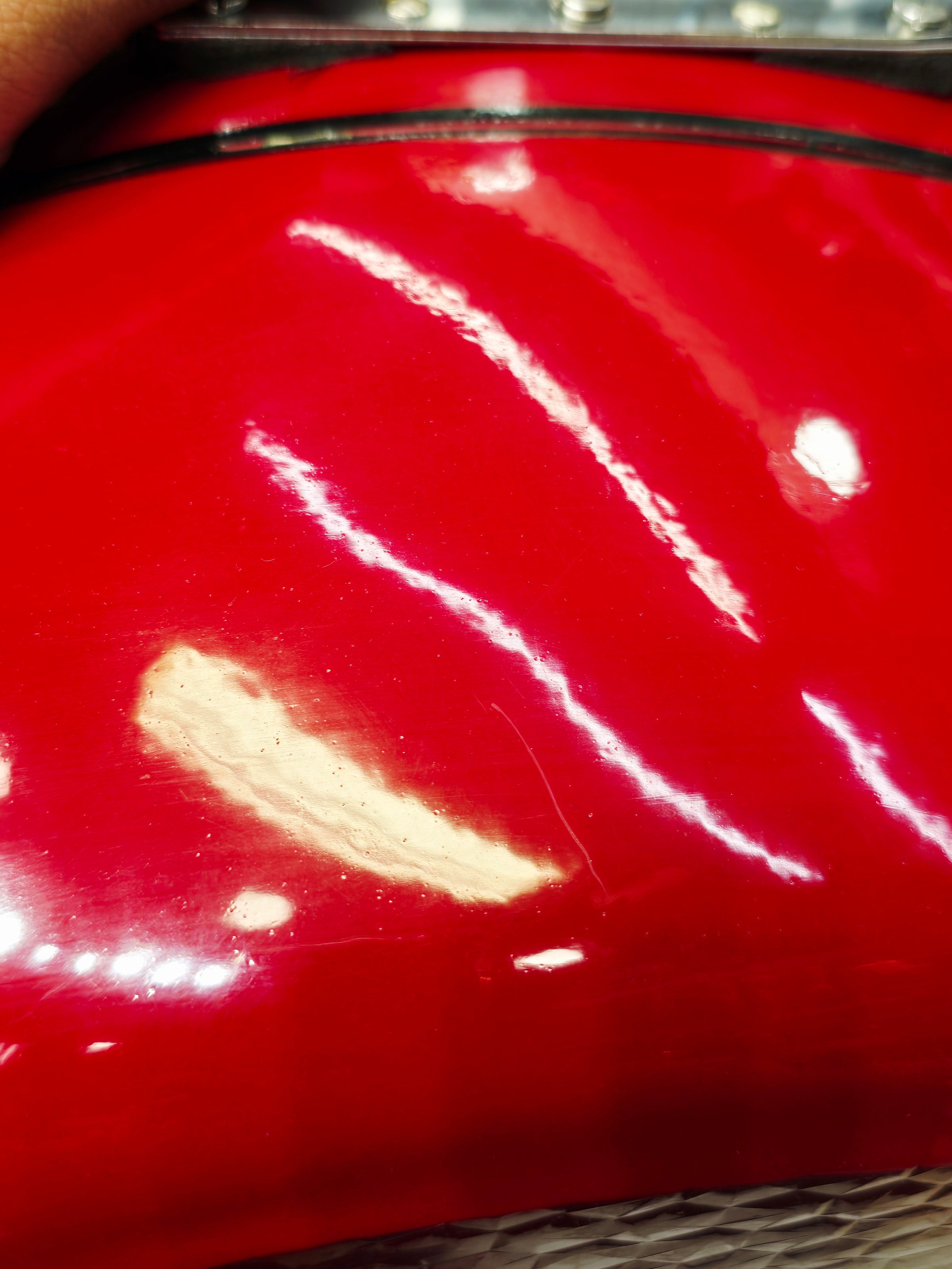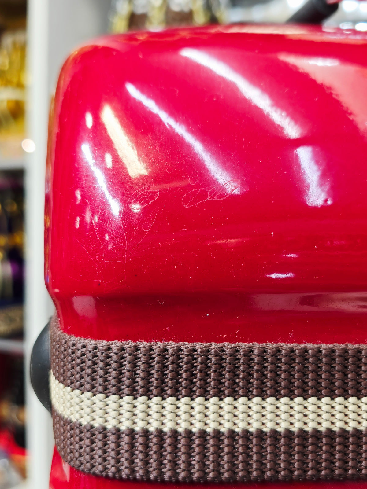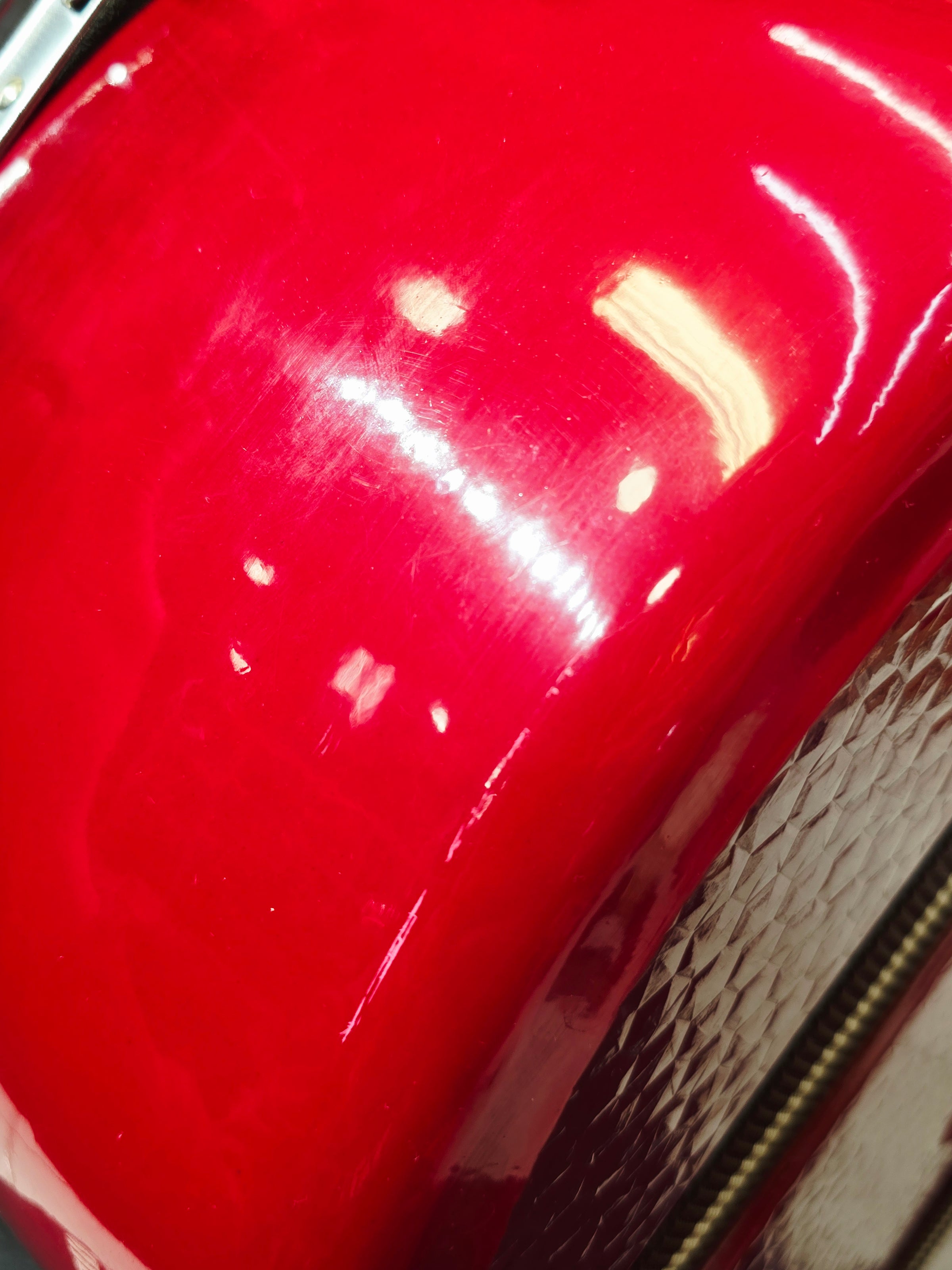 Redline Vault — Deep Red Tabla Hard Case · 360° Spinner Wheels · Dual Handles · Fixed Strap Bands · Very Minor Cosmetic Blemishes (g)