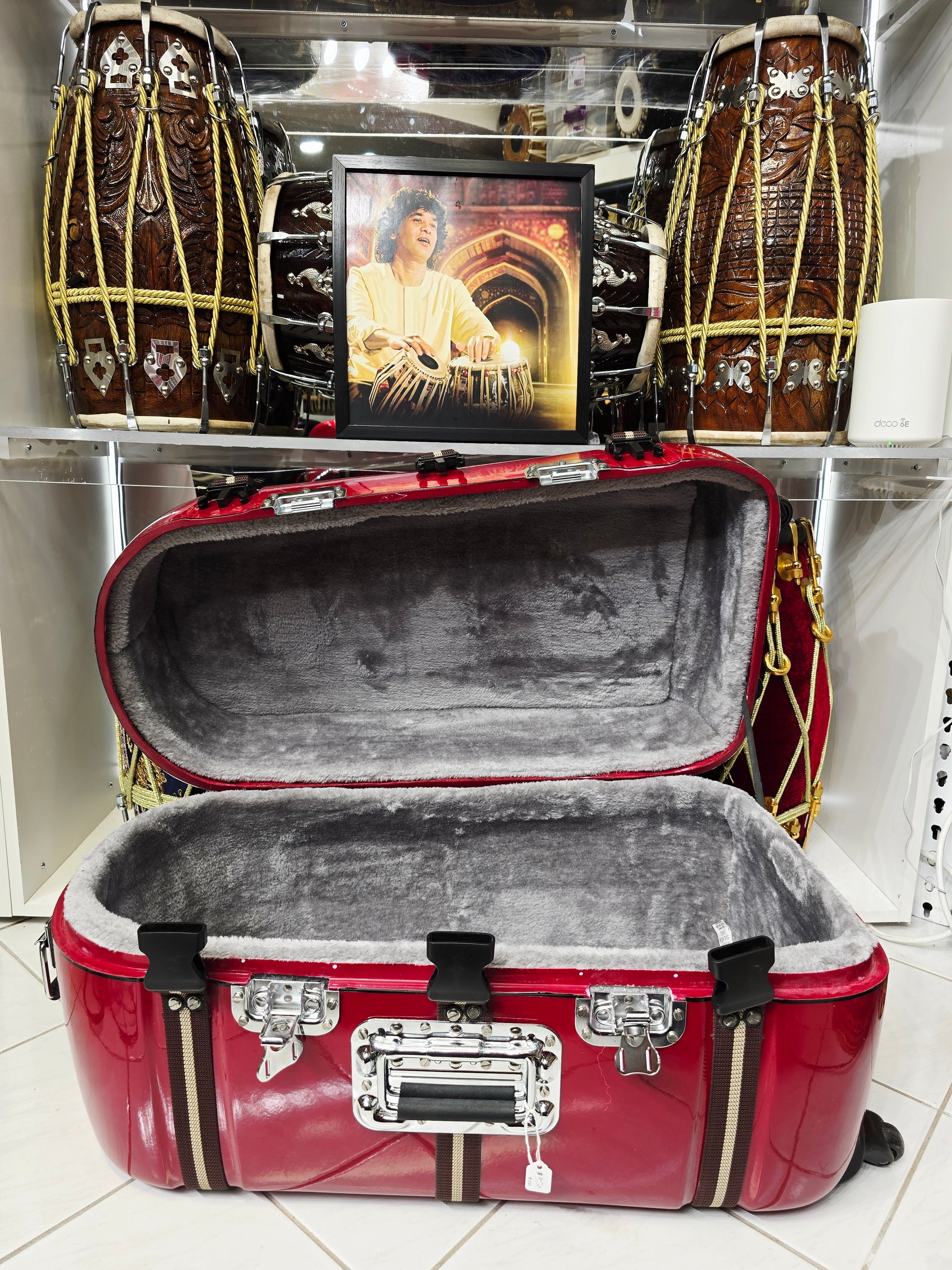 The Redline Vault is a modern deep red tabla hard case designed for secure travel and everyday use. Built with a rigid protective shell and clean, understated styling, it balances durability with a refined look.