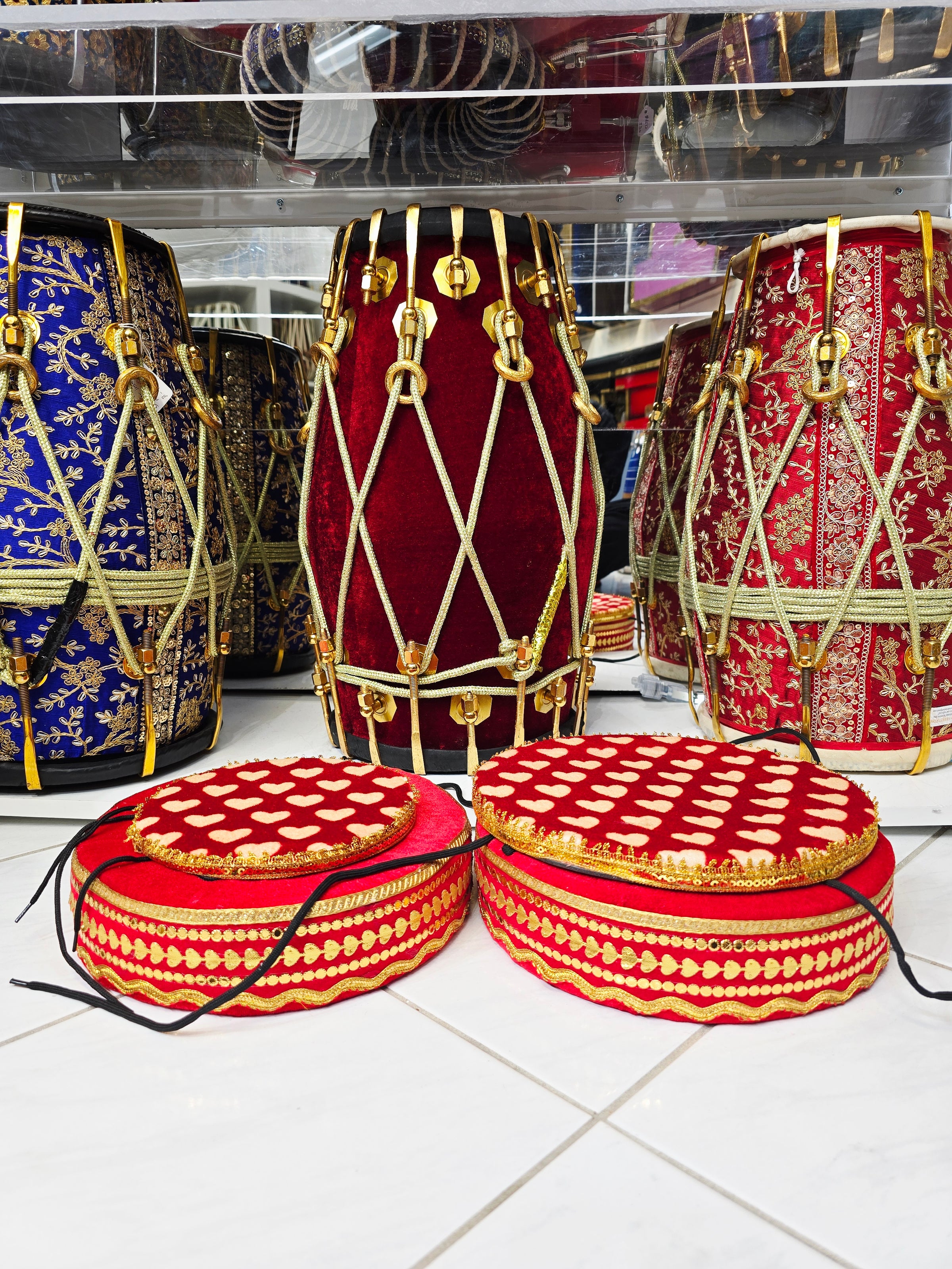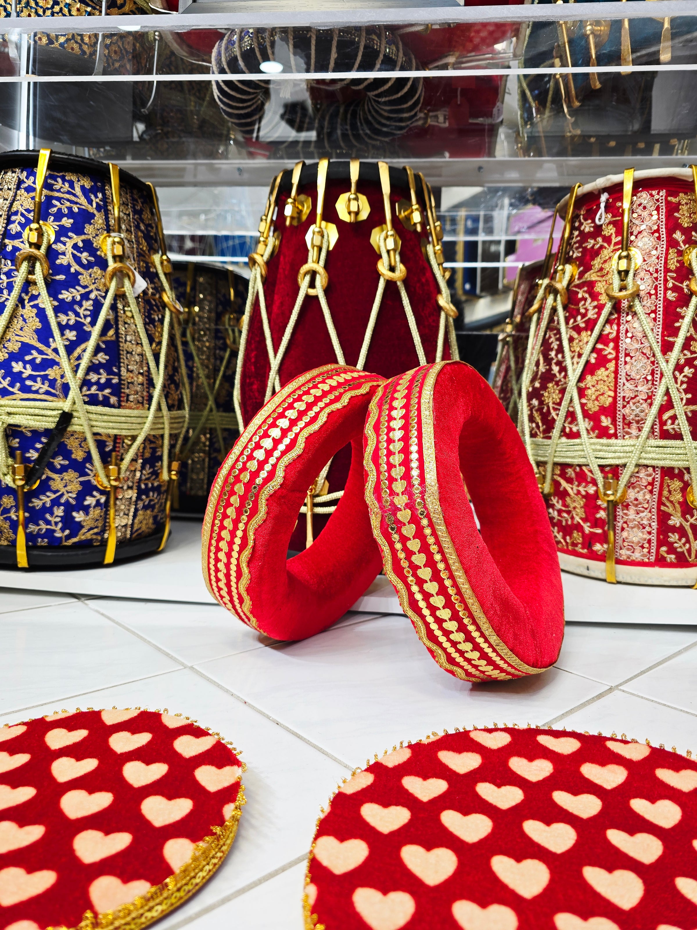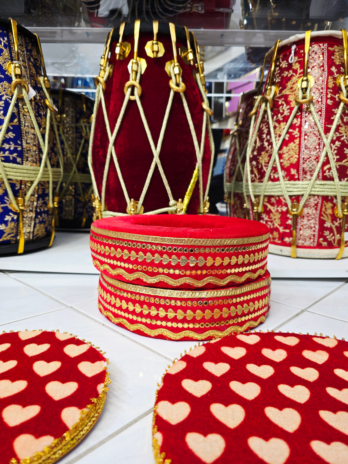 Designed for musicians who value both function and style, this red velvet tabla ring set ensures steady placement of dayan and bayan while elevating the overall stage aesthetic. A luxurious accessory suitable for students and professionals alike.