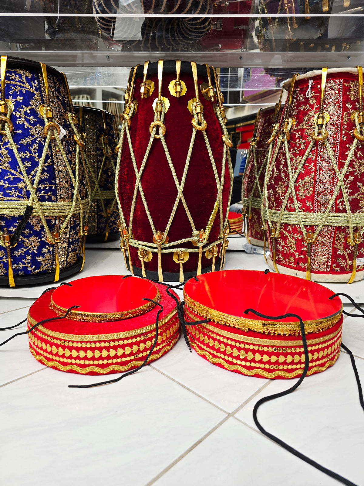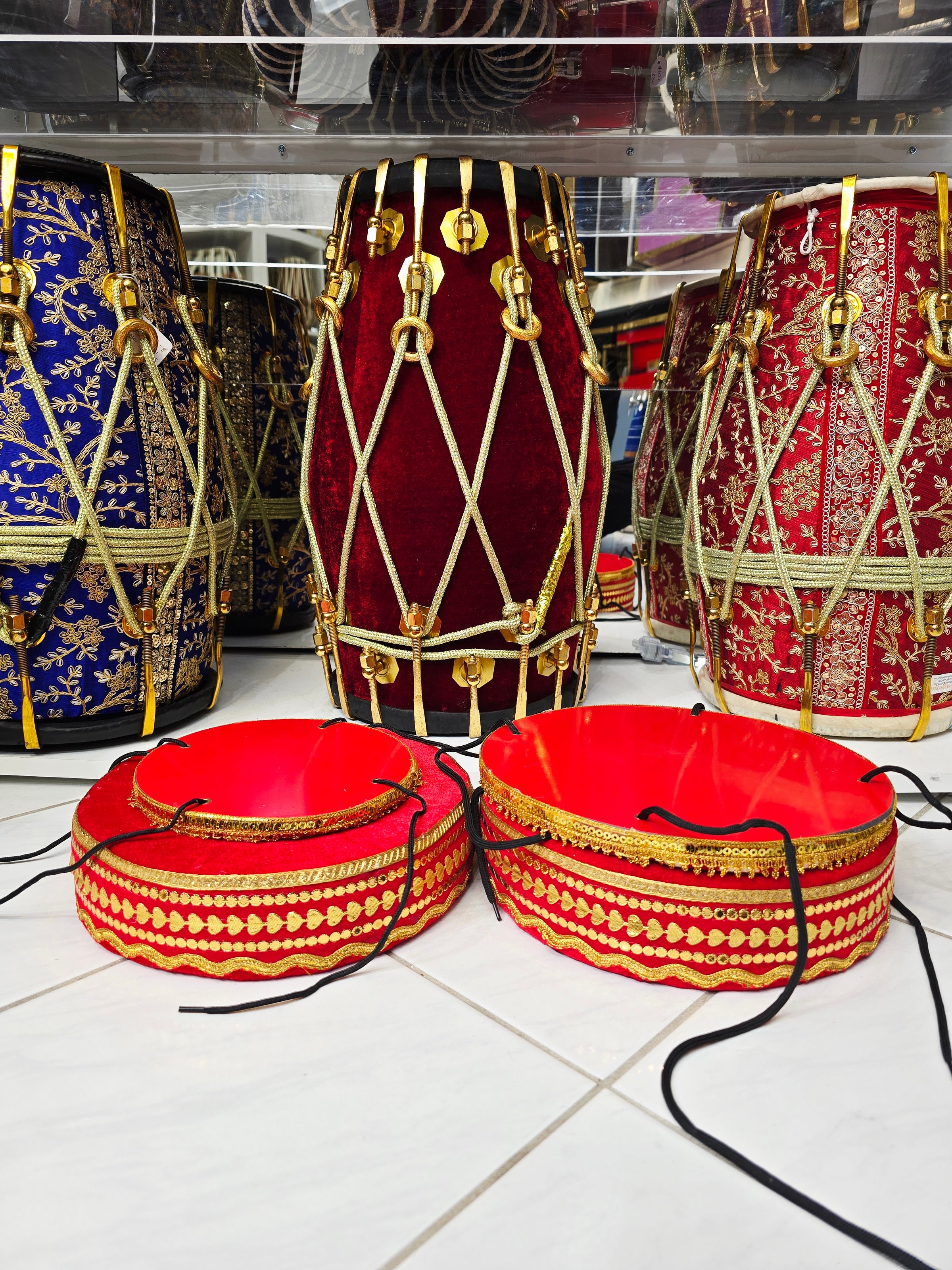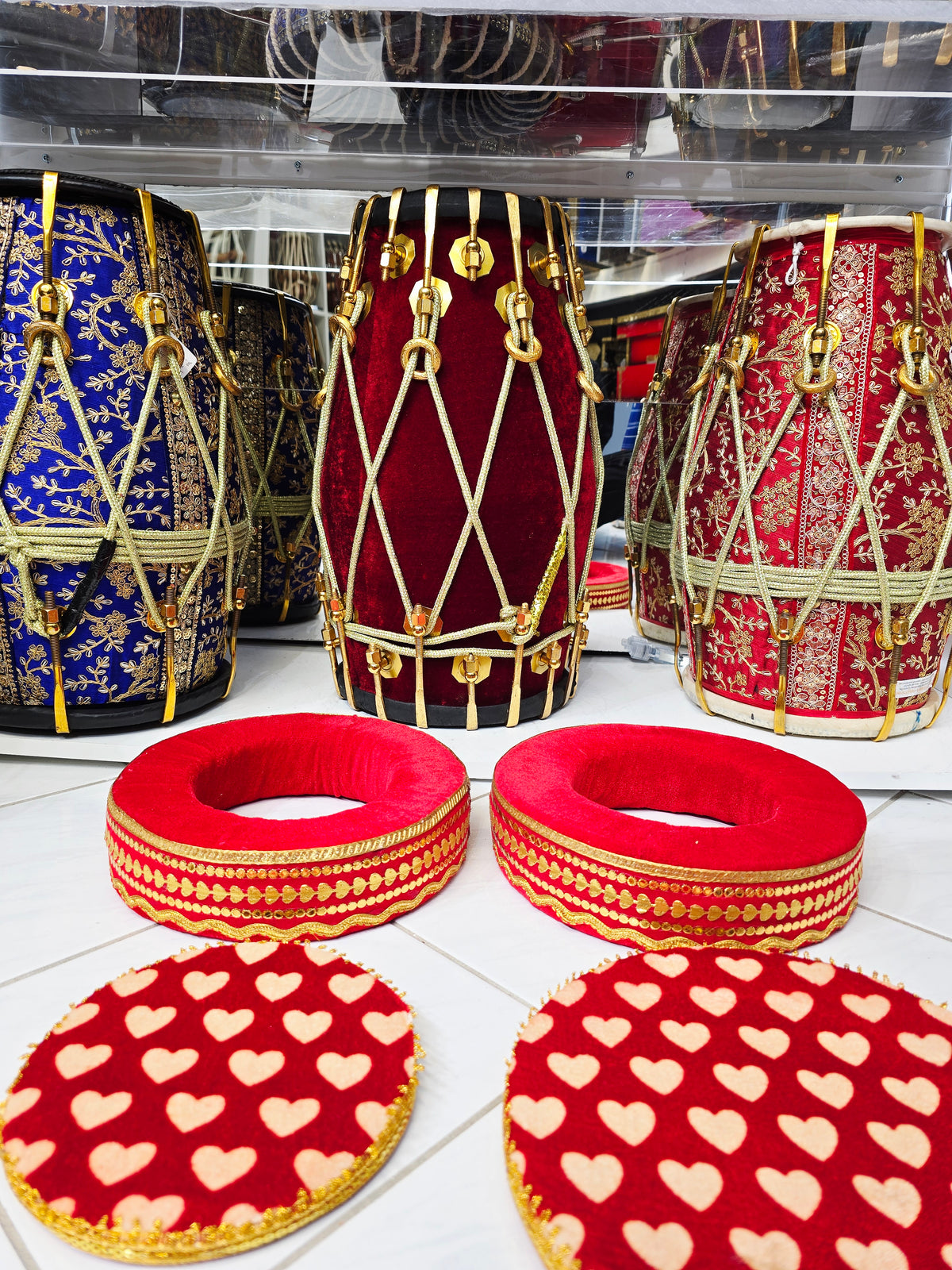 Designed for musicians who value both function and style, this red velvet tabla ring set ensures steady placement of dayan and bayan while elevating the overall stage aesthetic. A luxurious accessory suitable for students and professionals alike.