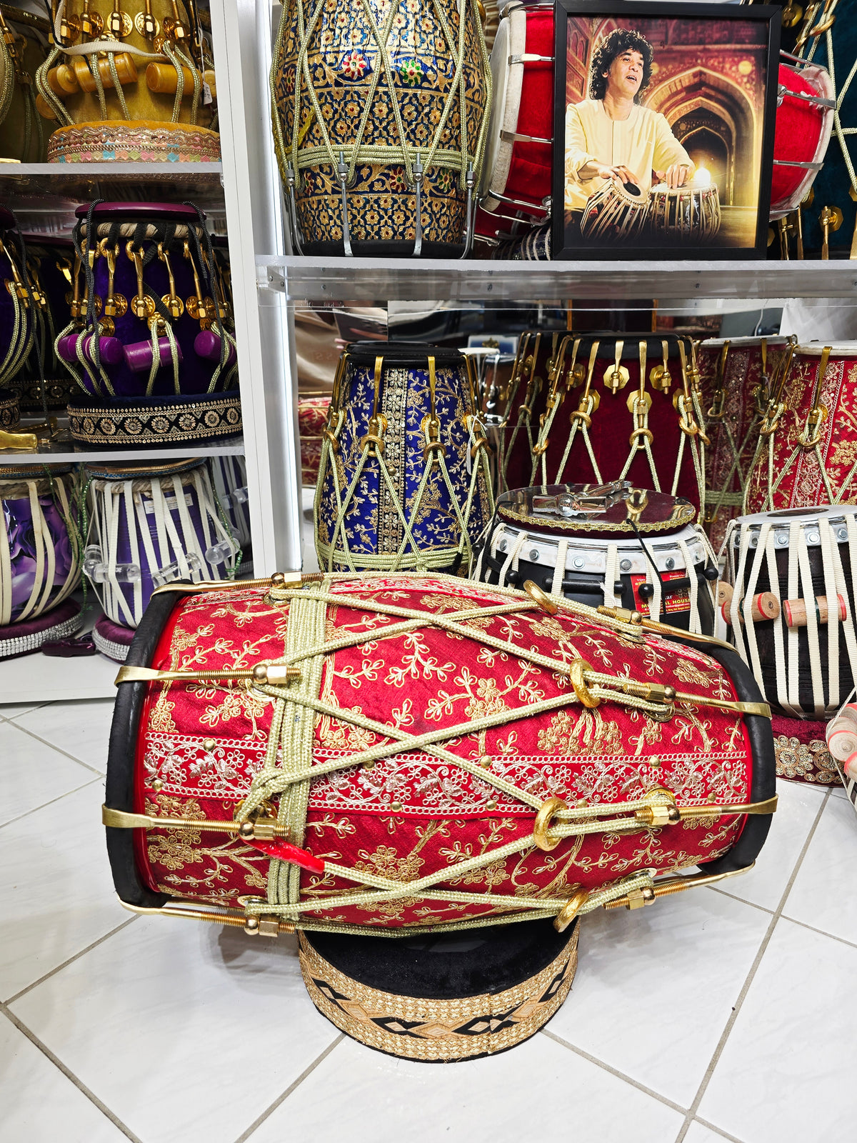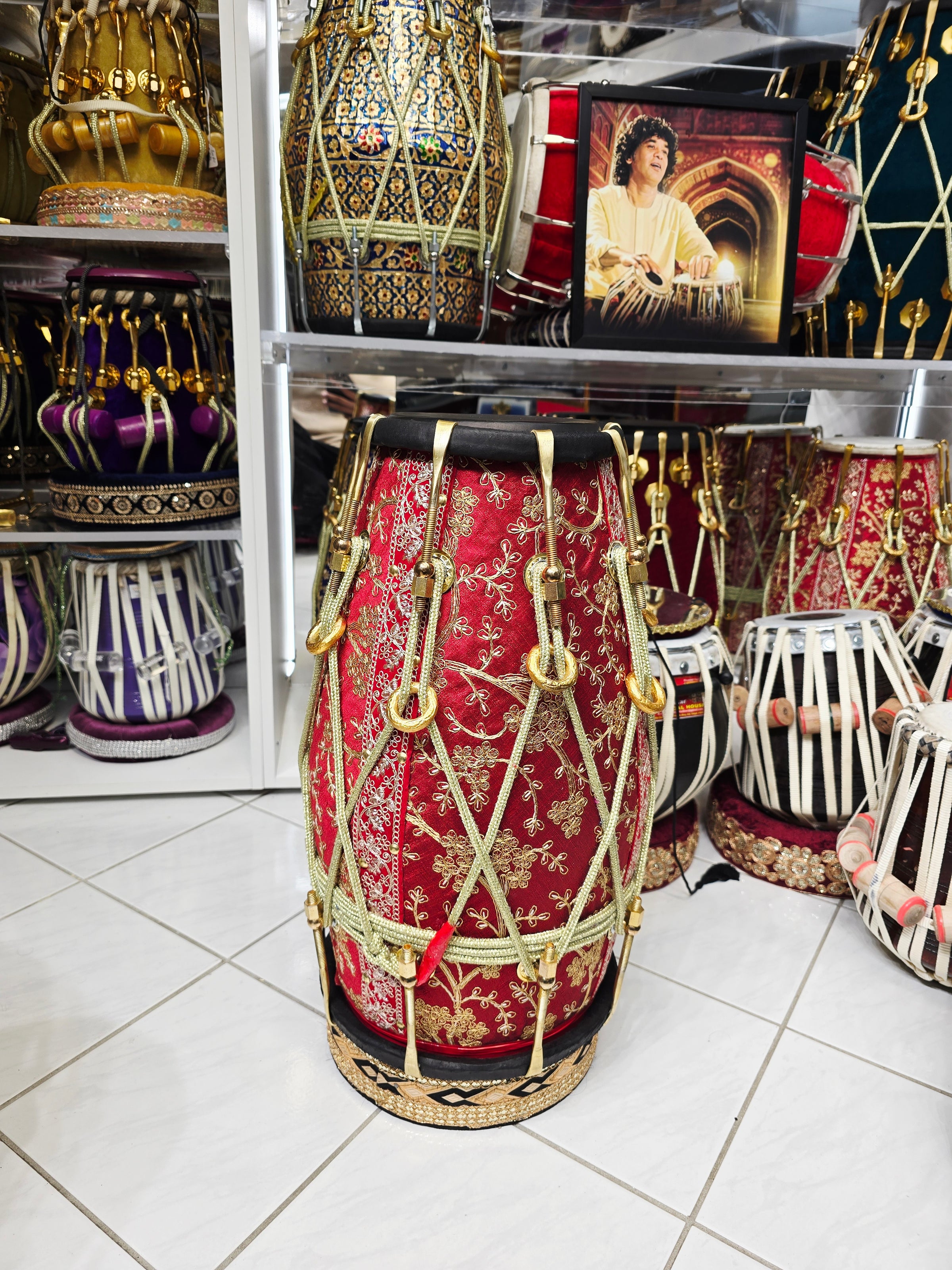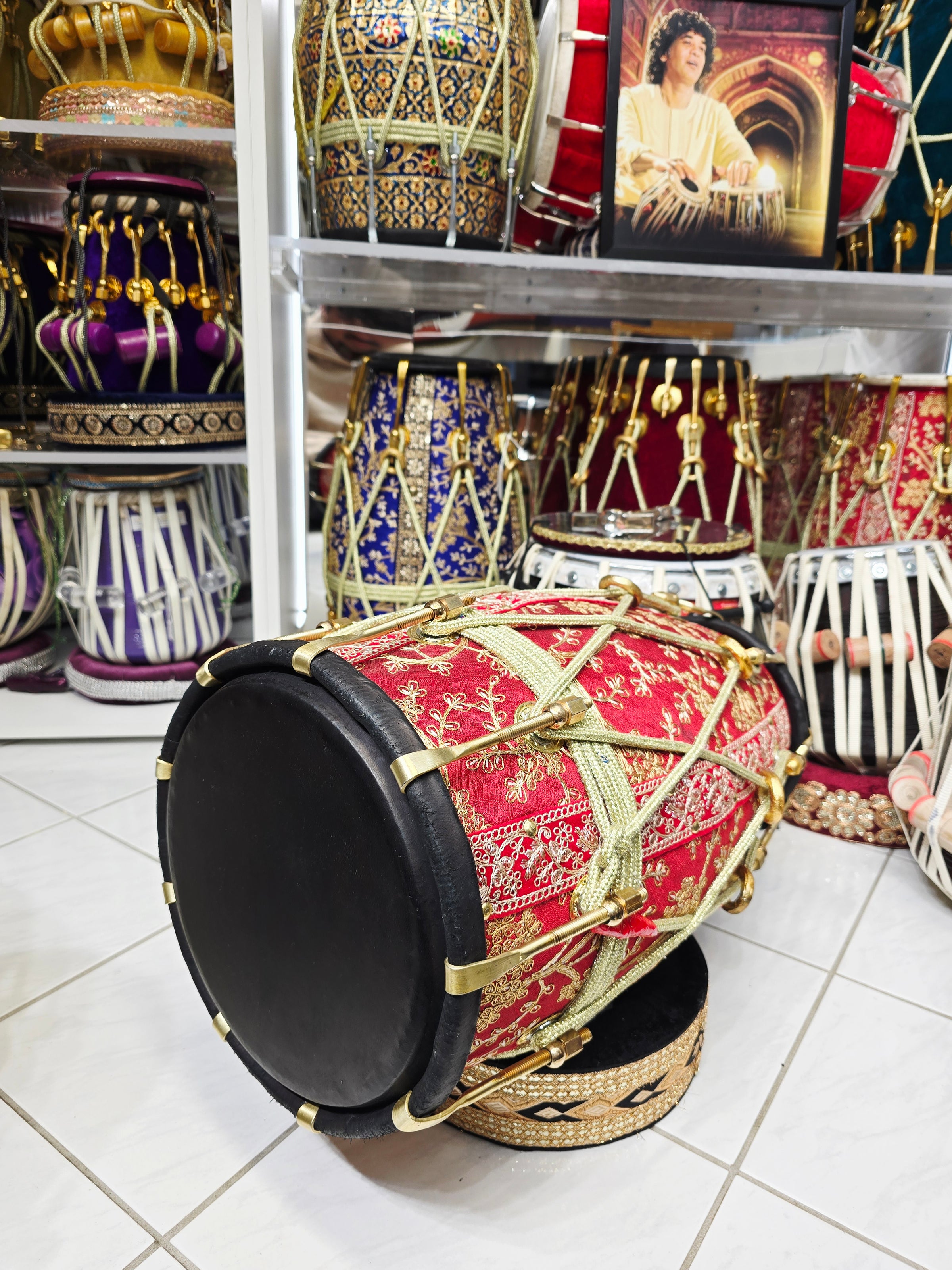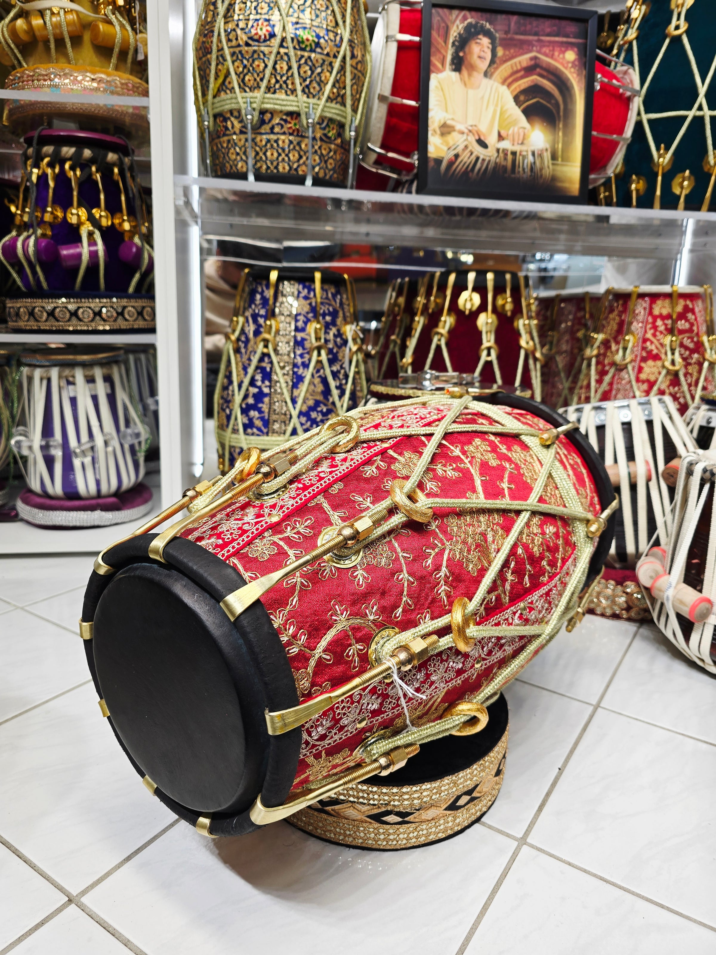 RangMahal™ Premium Sherwani-Wrapped Dholak — 19.4 lb Red Sheesham | Black Skins