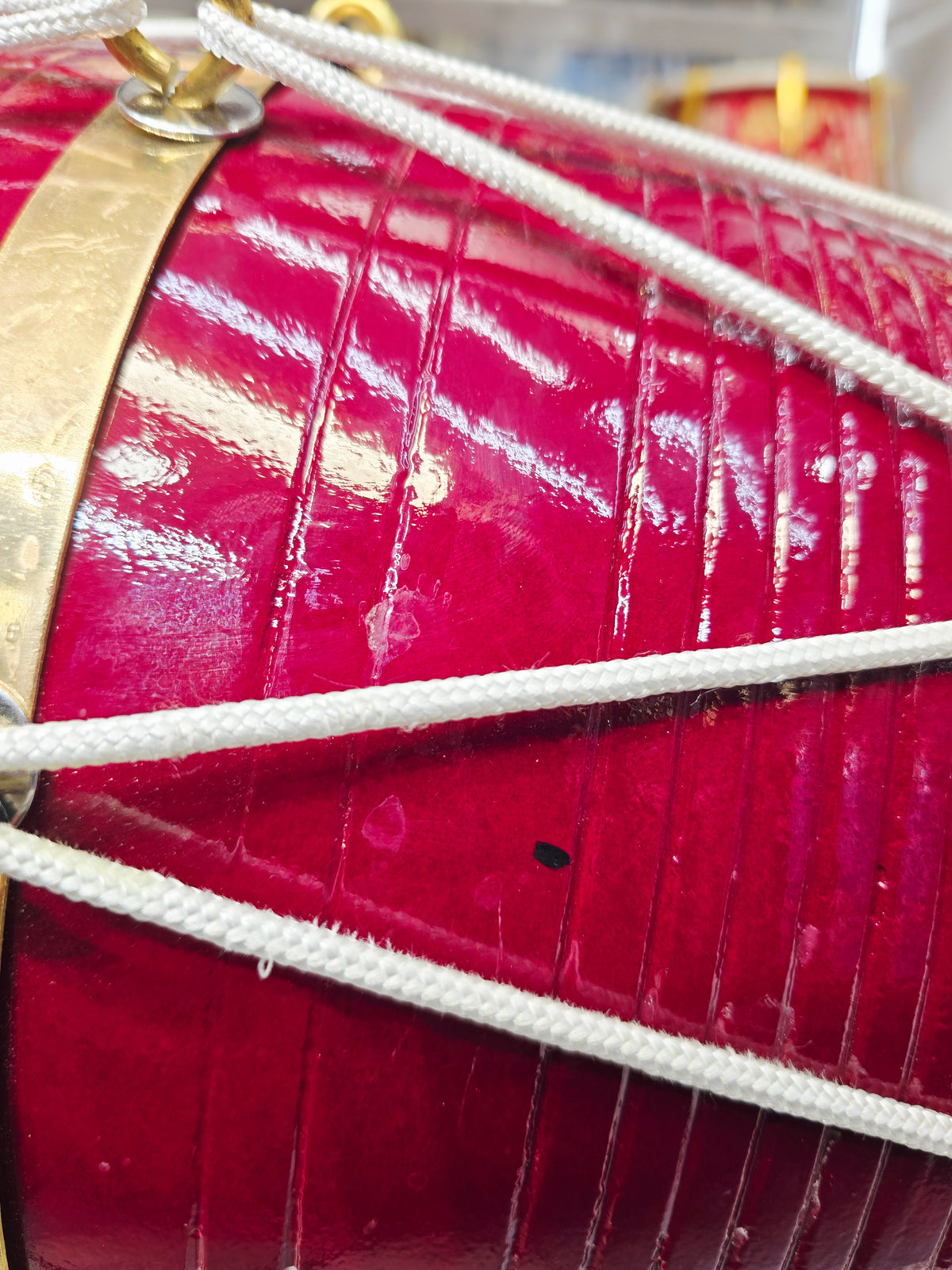 The Crimson Relay West Indian Dholak is built for flow, control, and projection in live West Indian settings. Crafted from solid red sheesham and measuring 23.25 inches in length, this instrument weighs 17.2 lbs, striking an ideal balance between power and responsiveness.